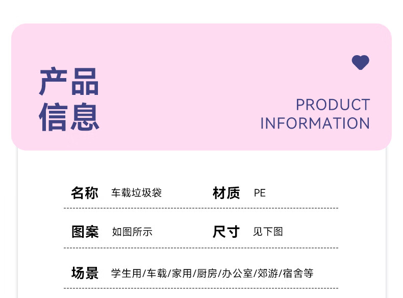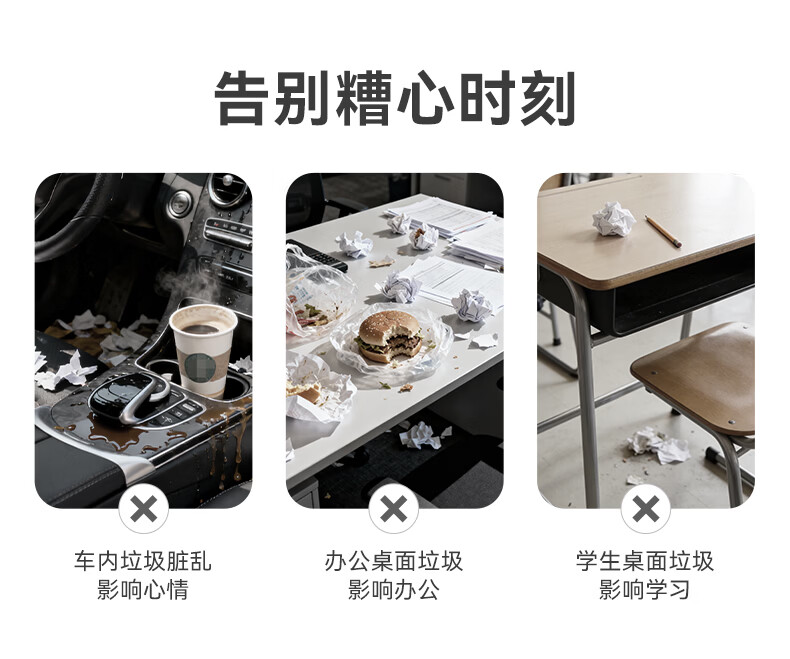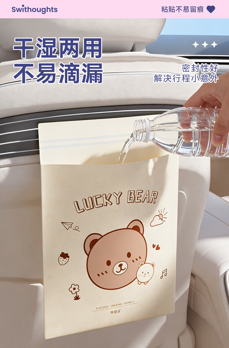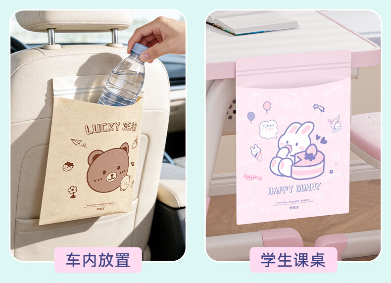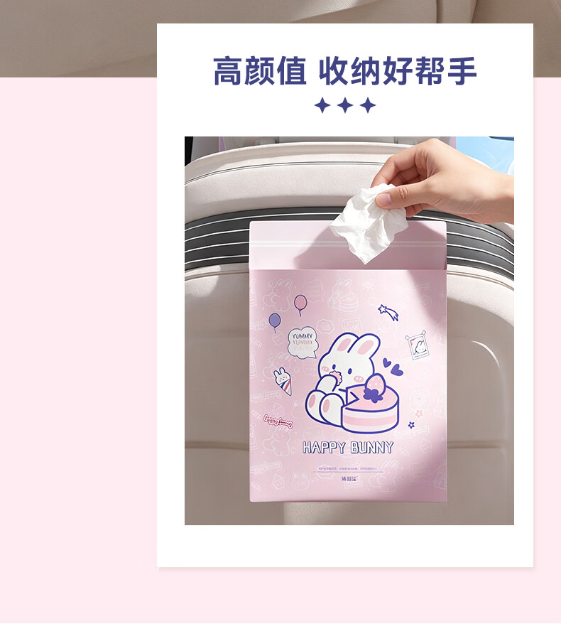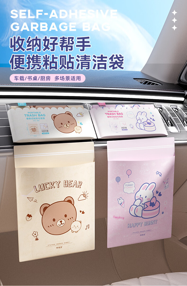 特瑞洁车载垃圾袋加厚2.5丝160只学生课桌寝室粘贴式大号车用清洁收纳袋