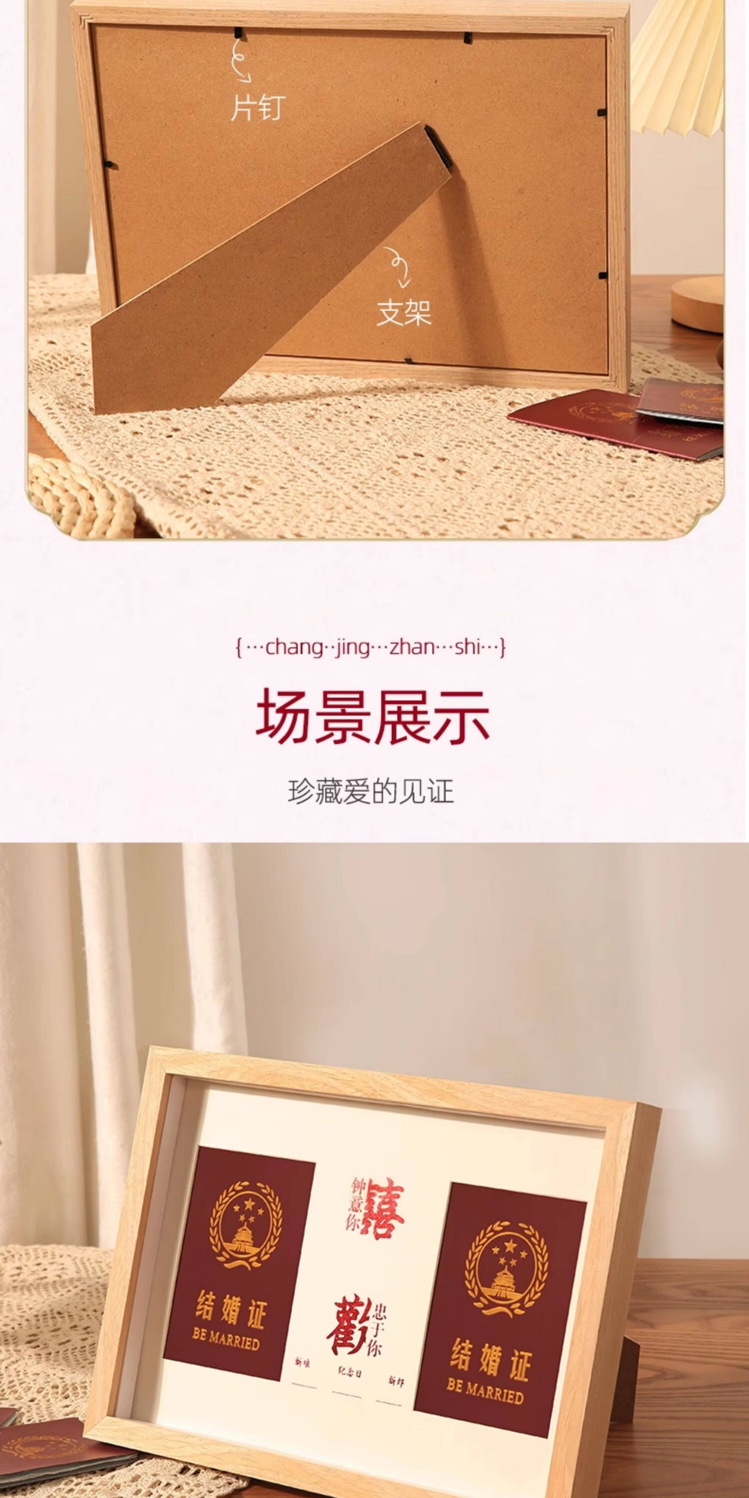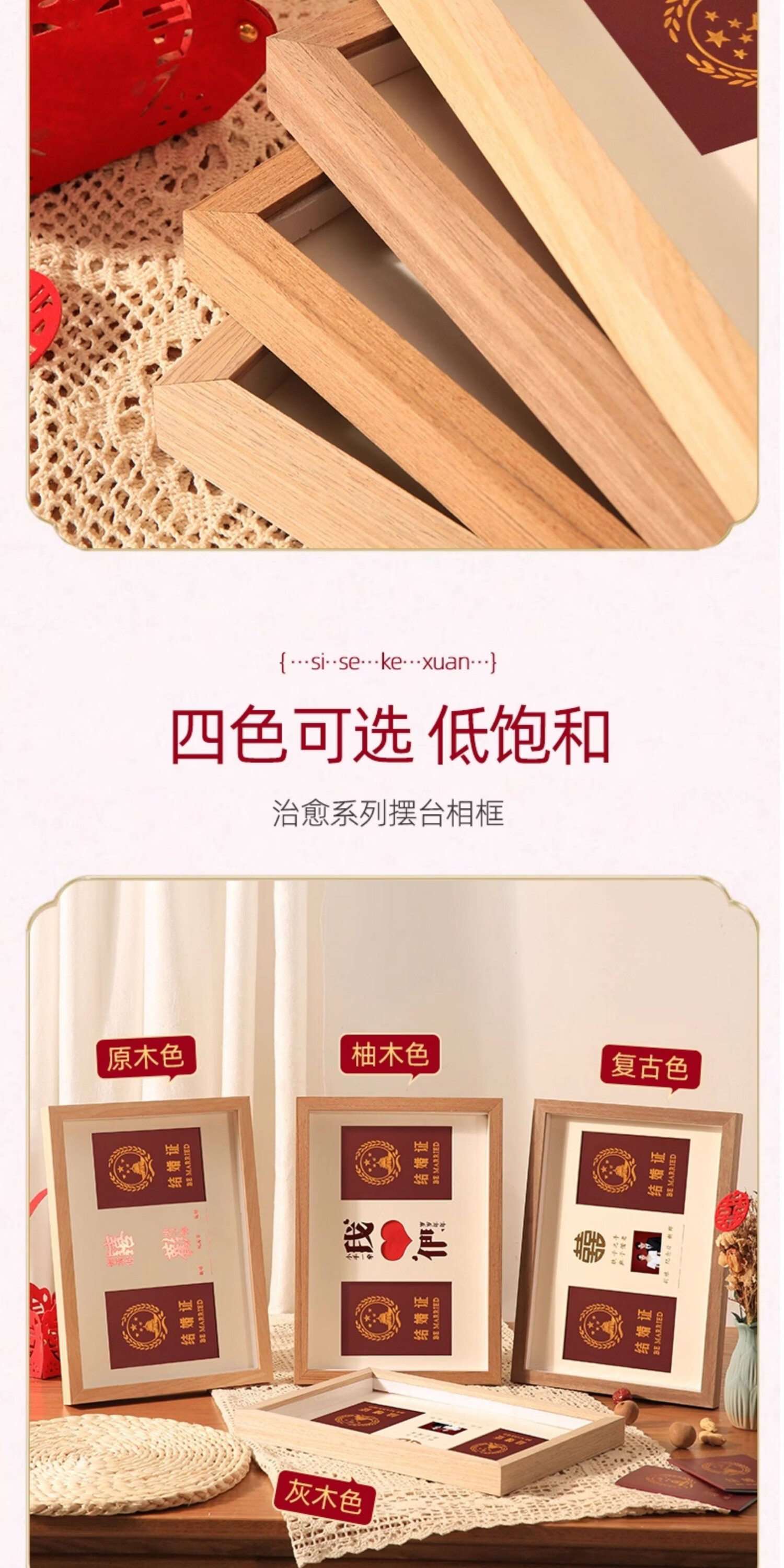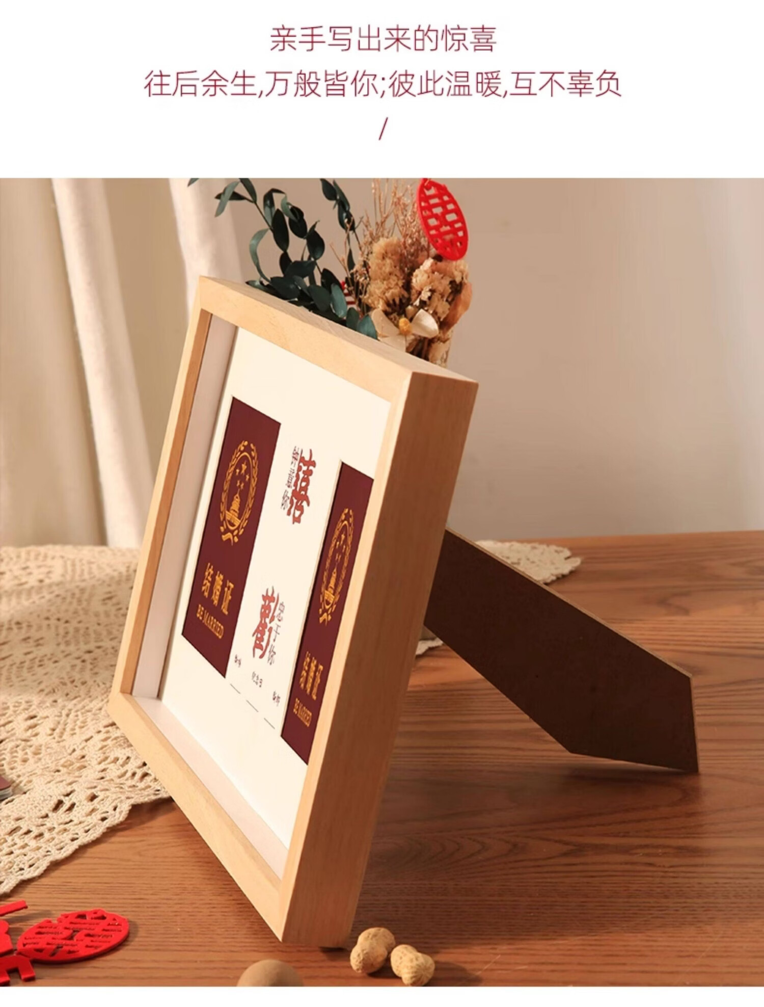 诗元结婚证相框高级创意情侣纪念册收纳保护套照片结婚证高级摆件空框 1528款-原木色【双喜】鎏金红卡纸 A4【可放21*29.7cm】