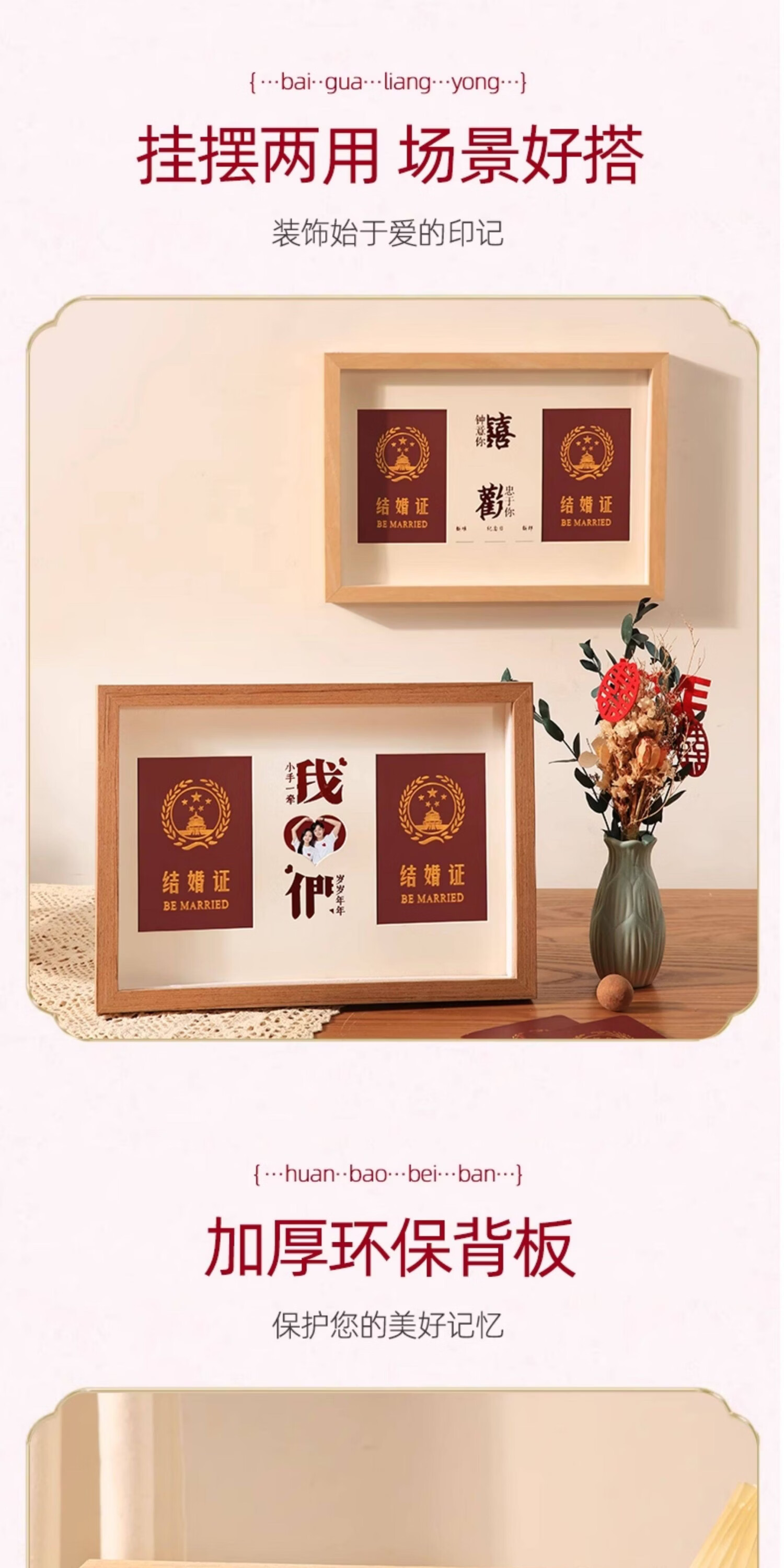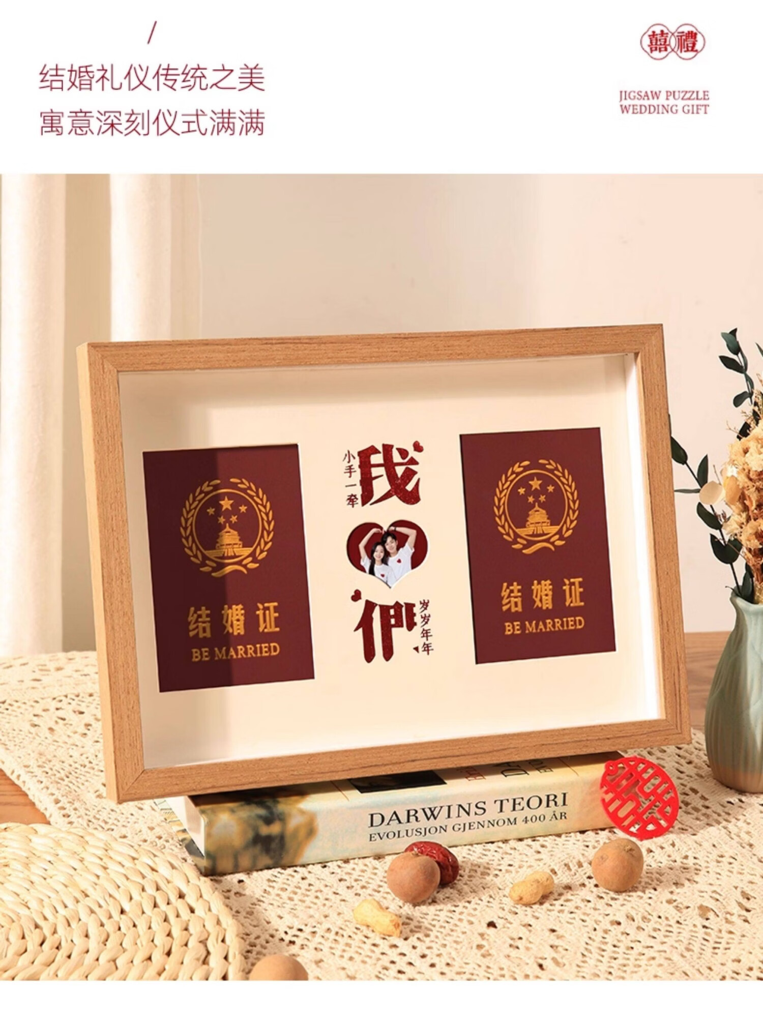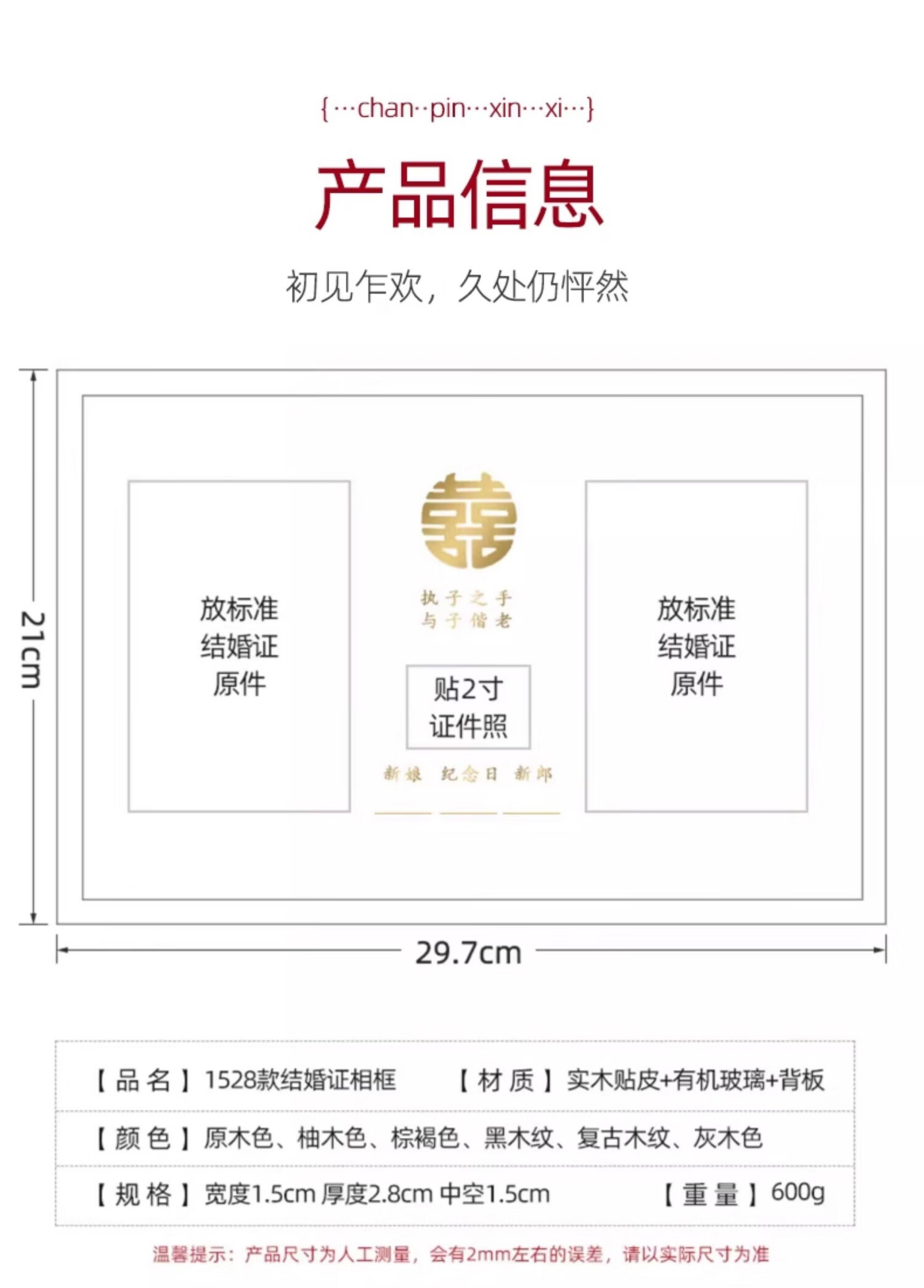 诗元结婚证相框高级创意情侣纪念册收纳保护套照片结婚证高级摆件空框 1528款-原木色【双喜】鎏金红卡纸 A4【可放21*29.7cm】