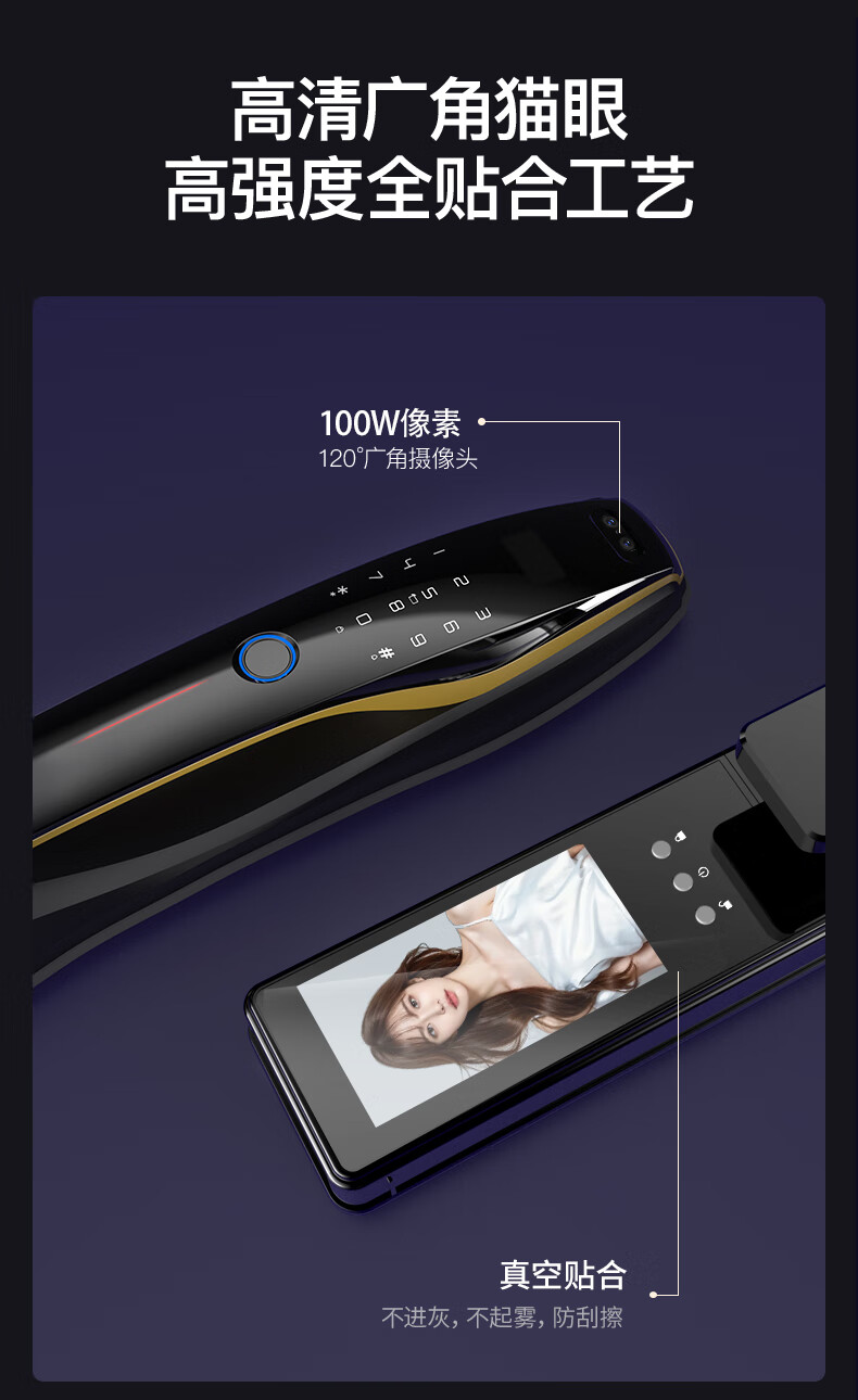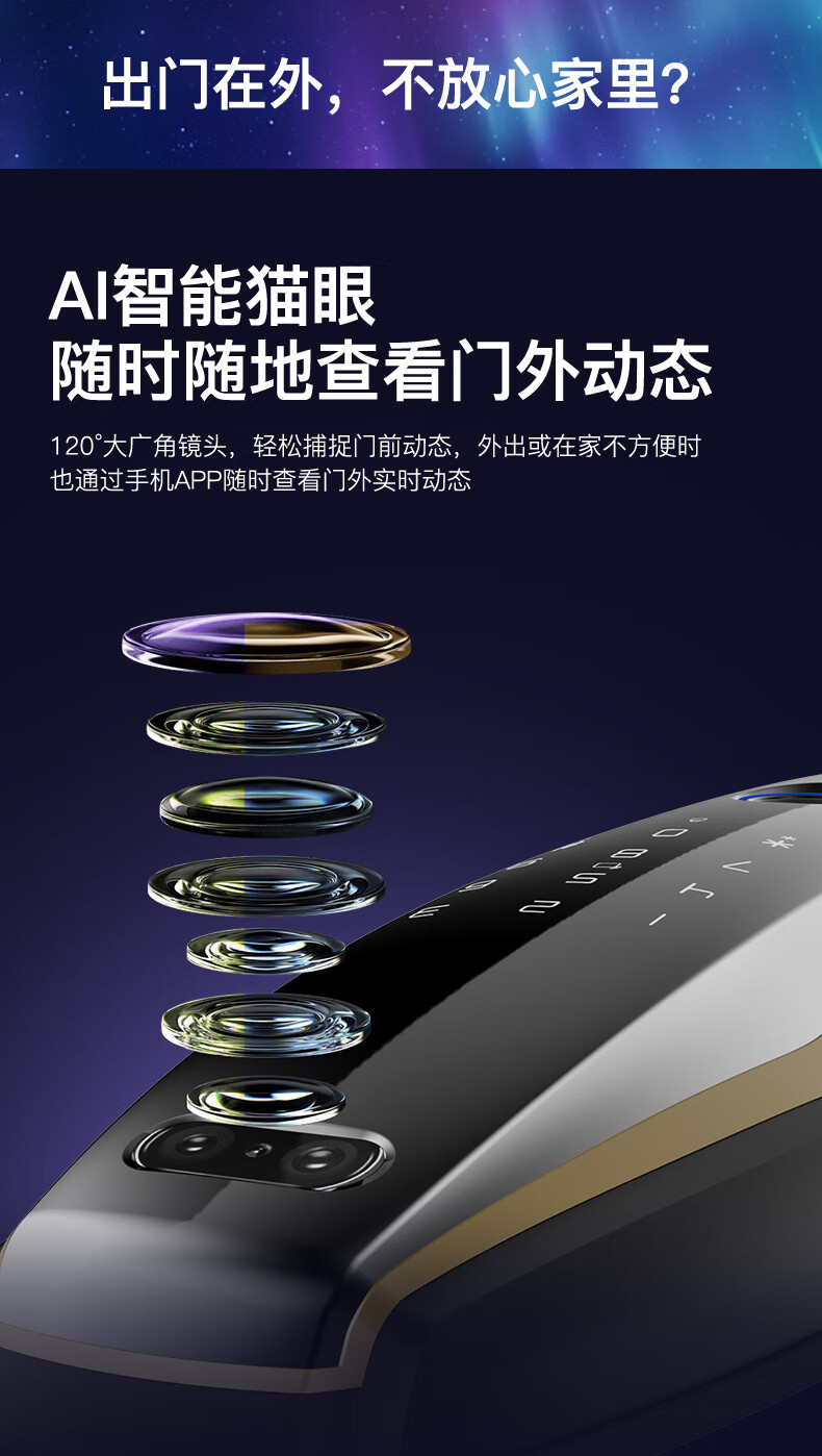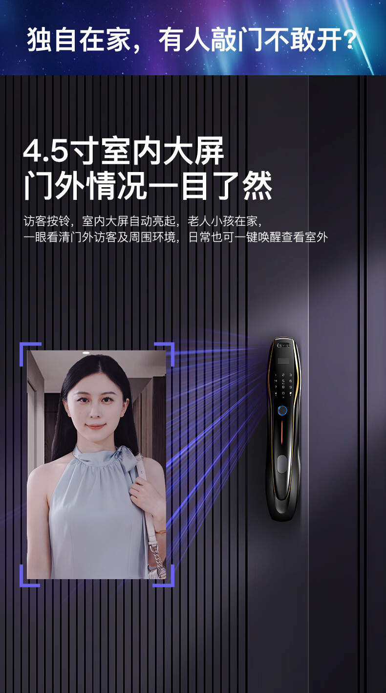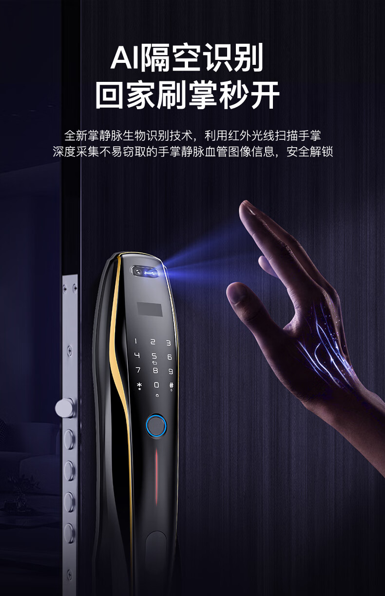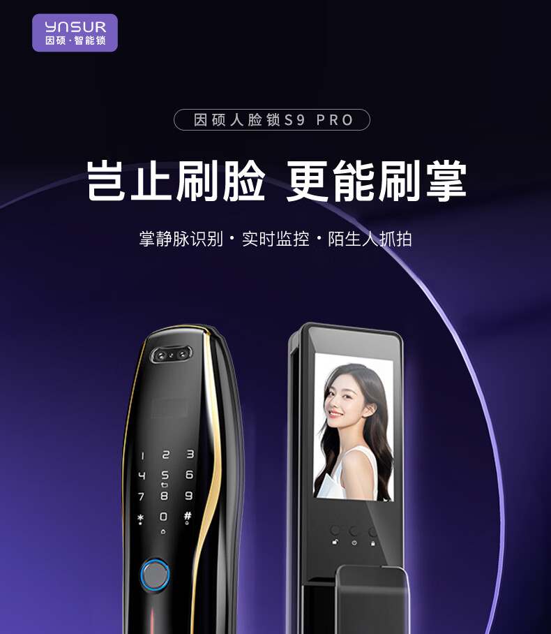 因硕S9 PRO 智能门锁掌静脉人脸识别指纹电子锁全自动猫眼带可视大屏