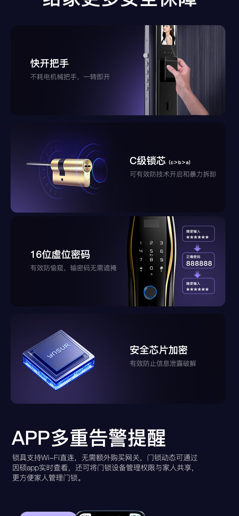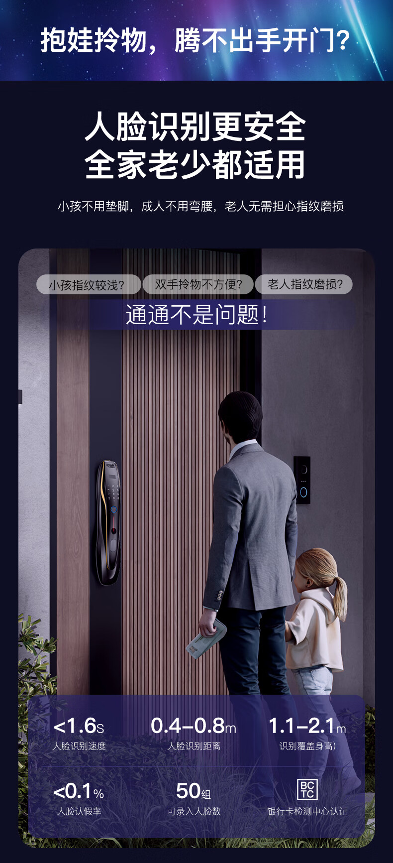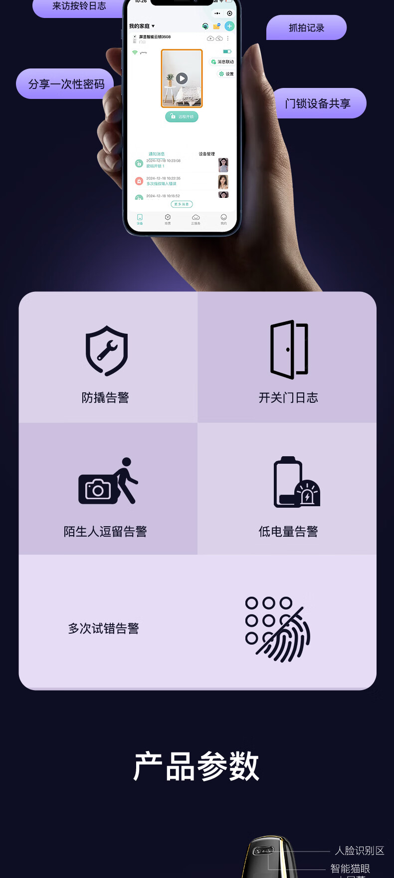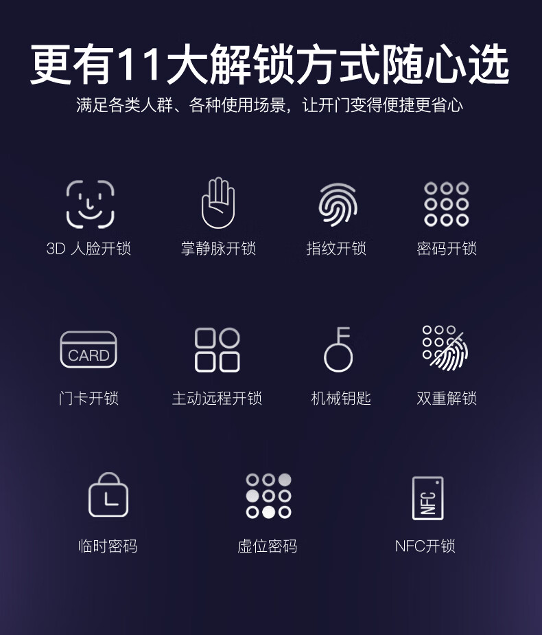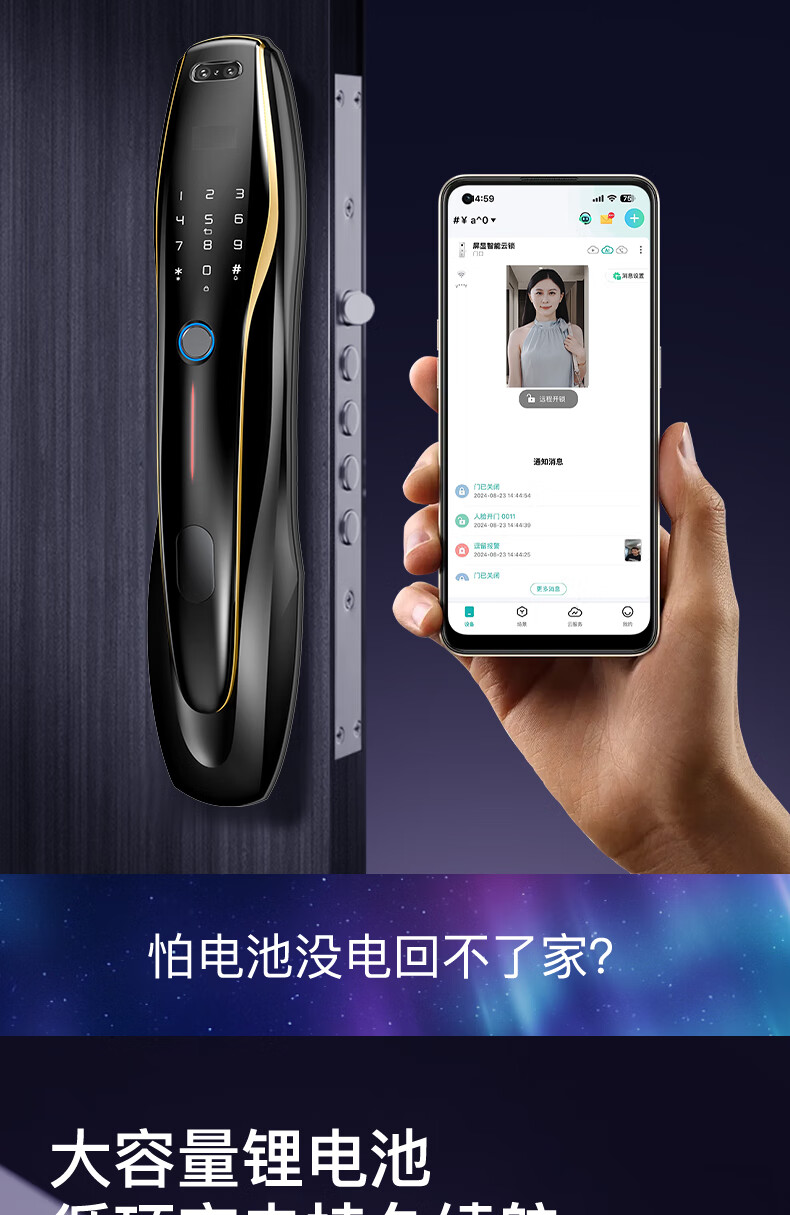 因硕S9 PRO 智能门锁掌静脉人脸识别指纹电子锁全自动猫眼带可视大屏