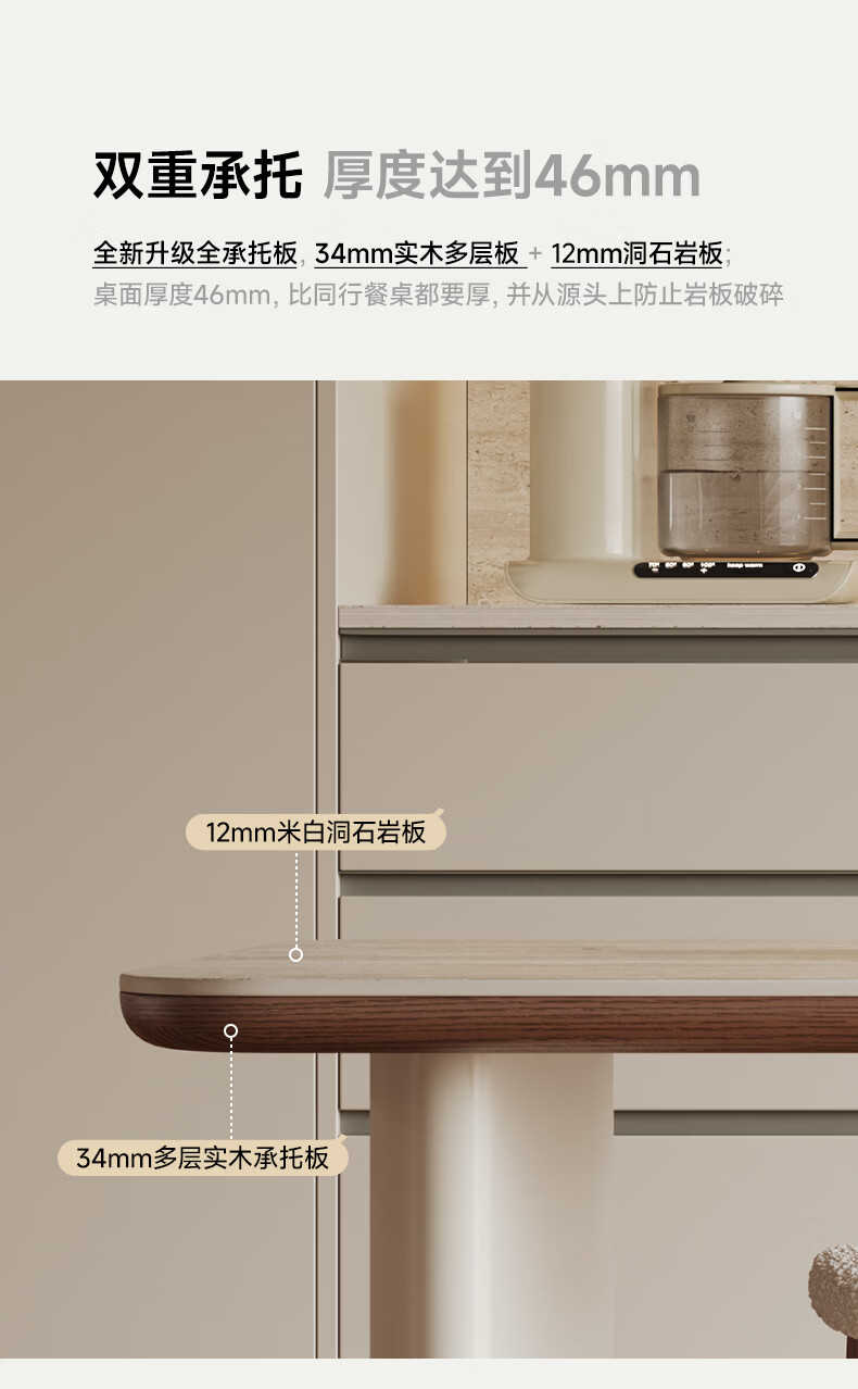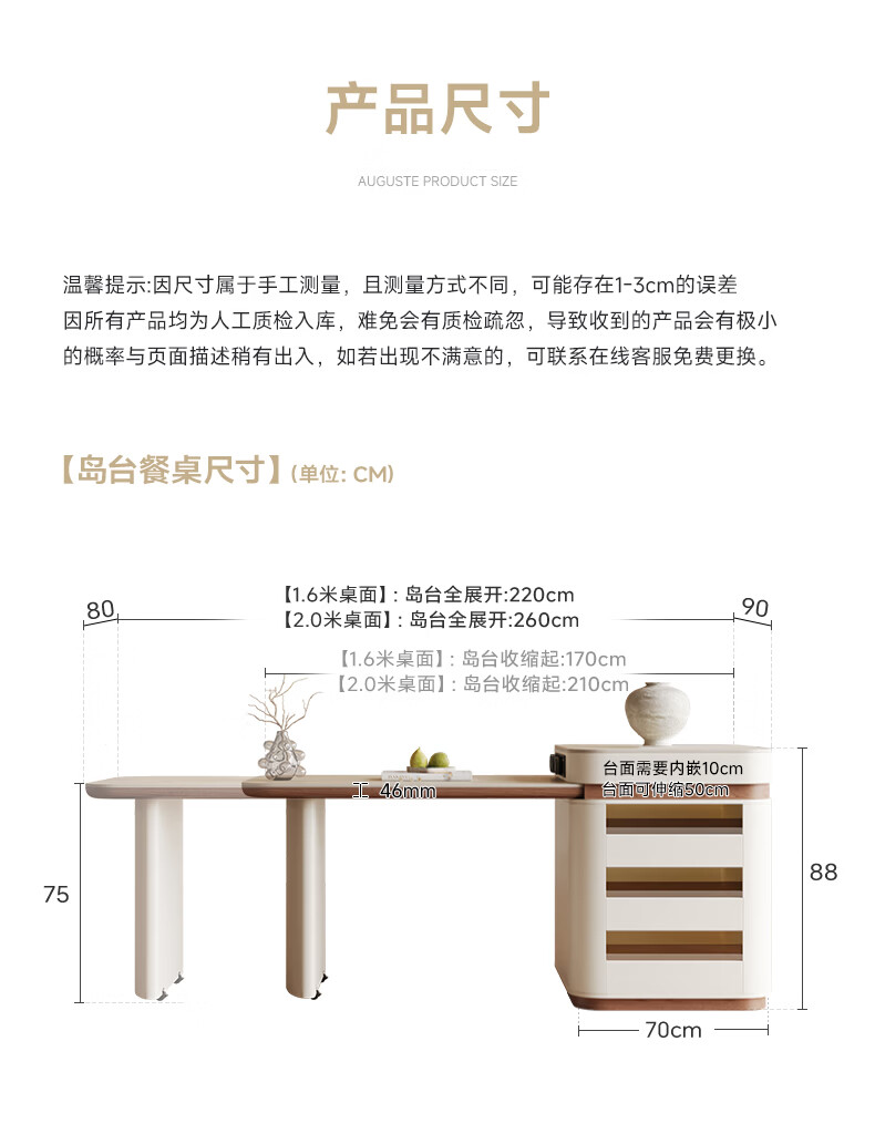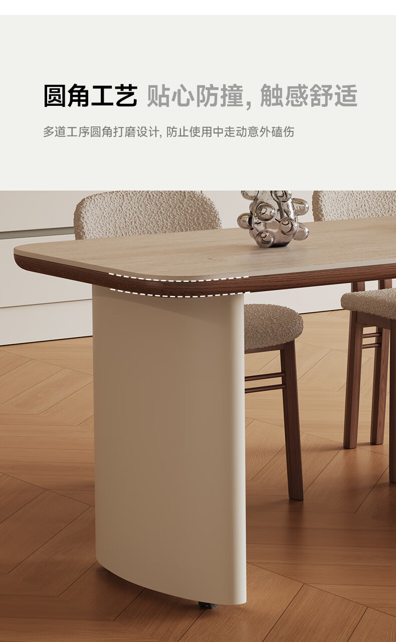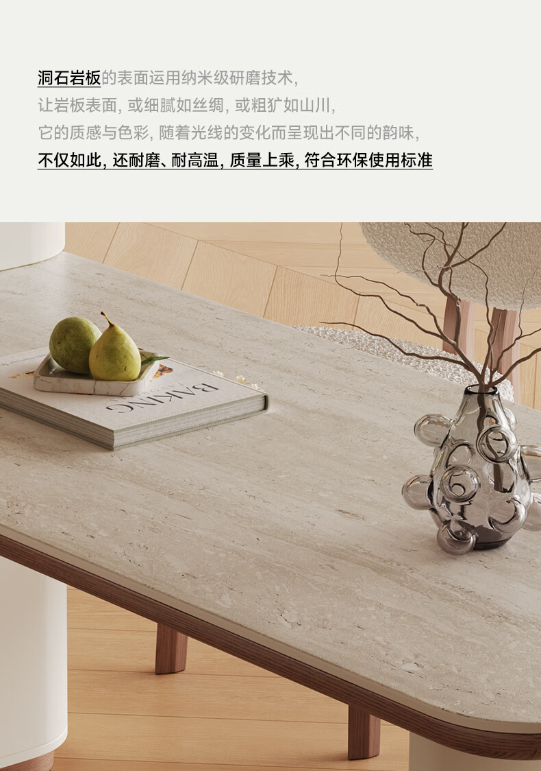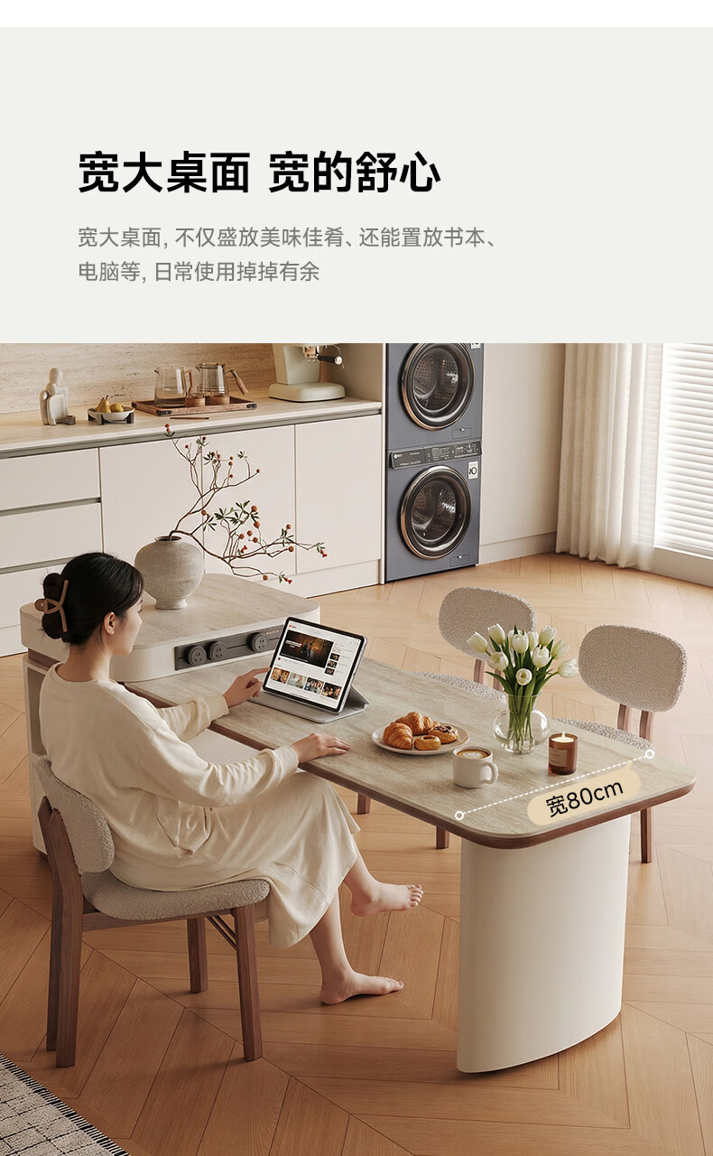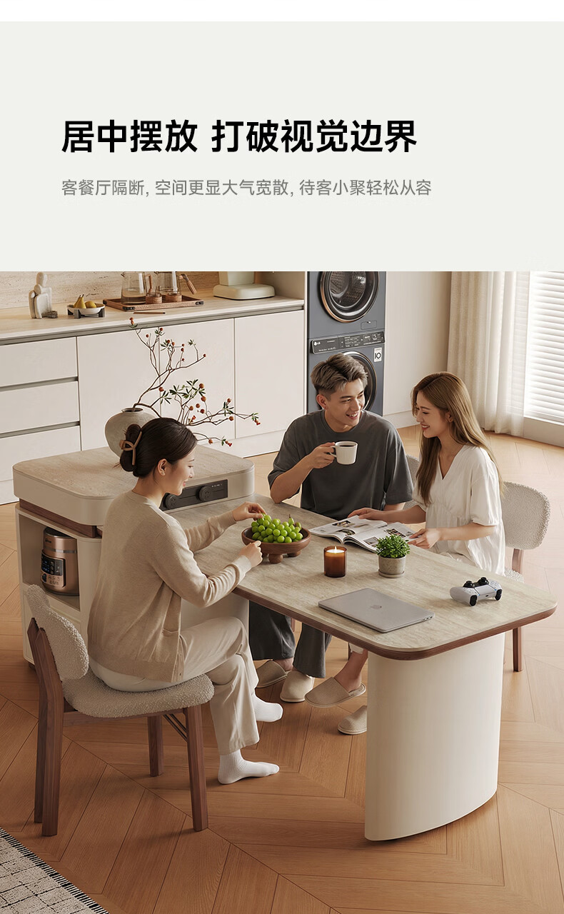 AUGUSTE奥古斯特2026新款中古奶油现代家用小户型伸缩洞石岩板岛台餐桌 设计师餐椅*2