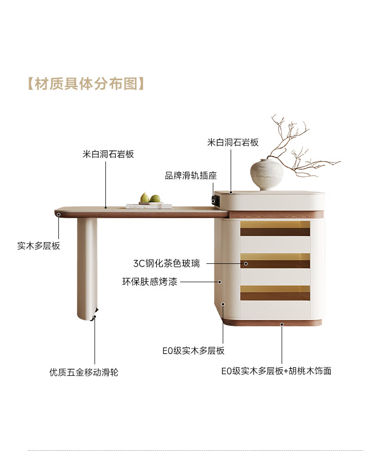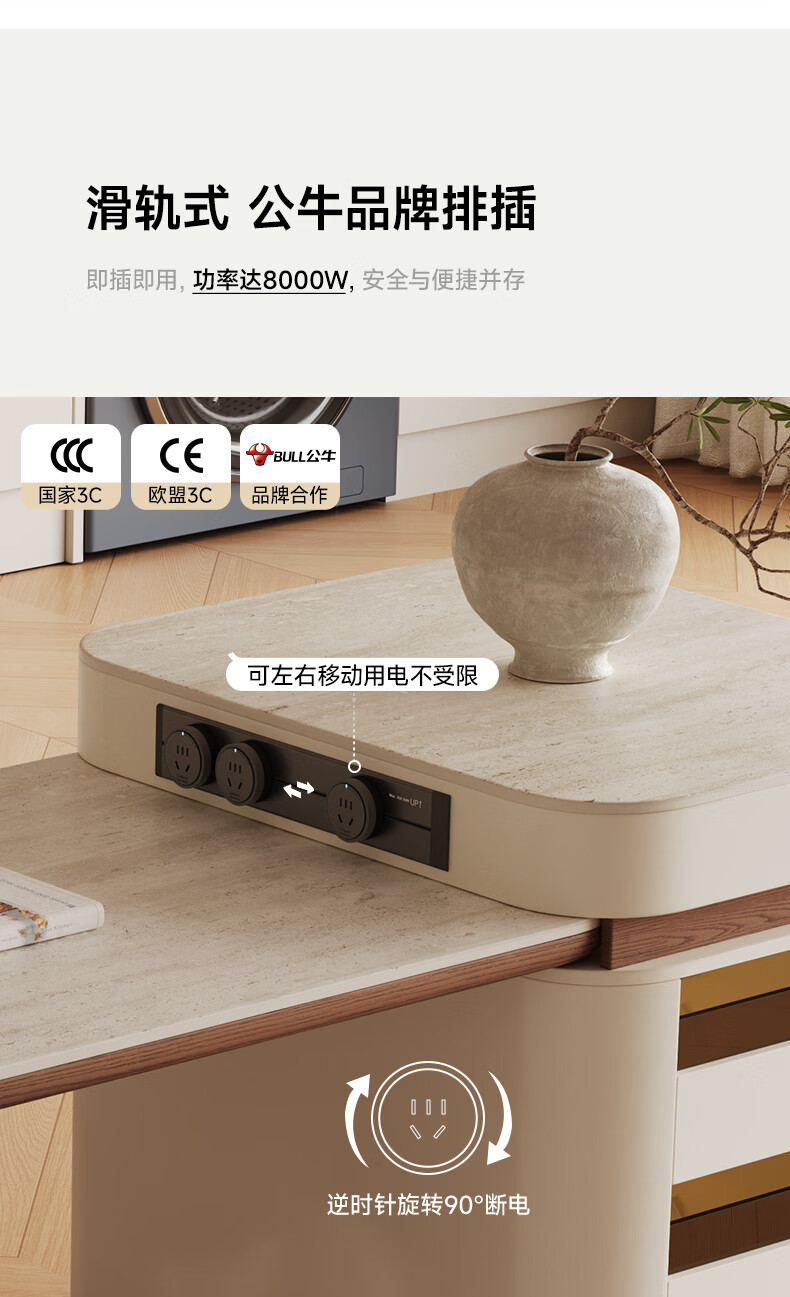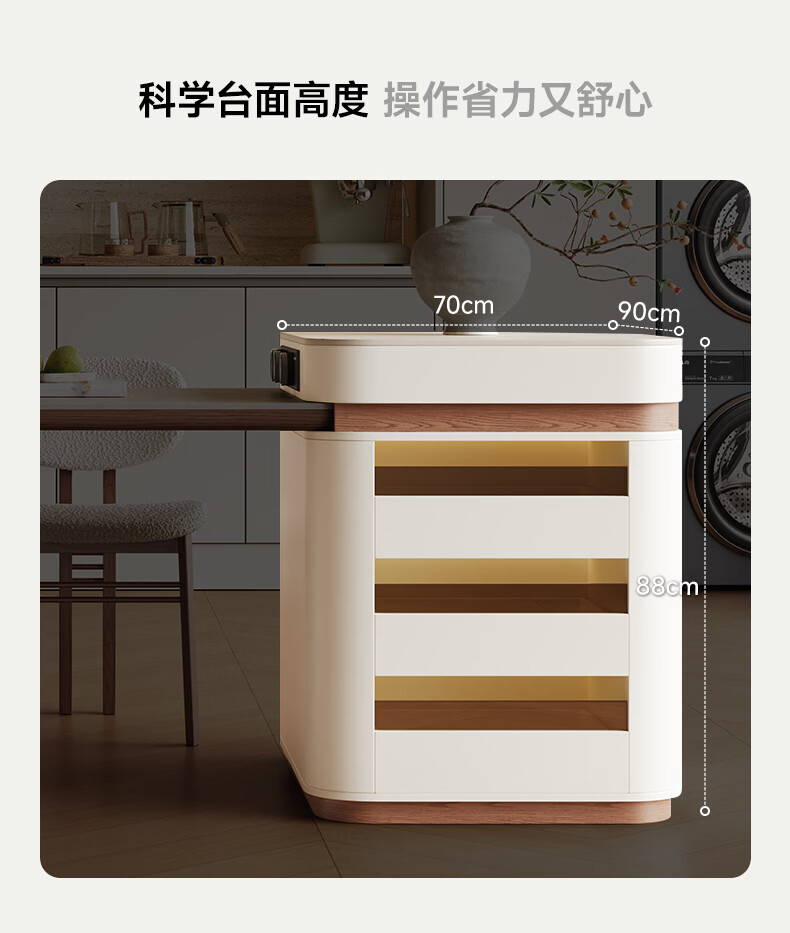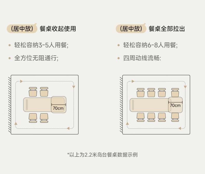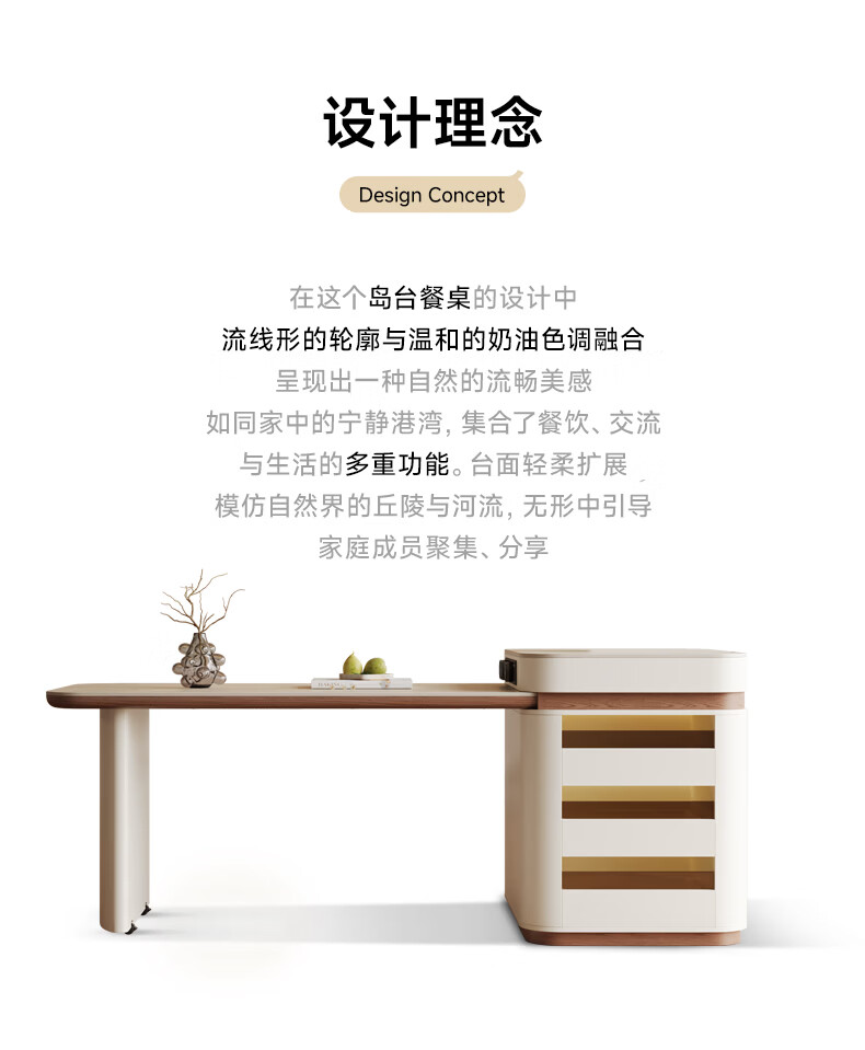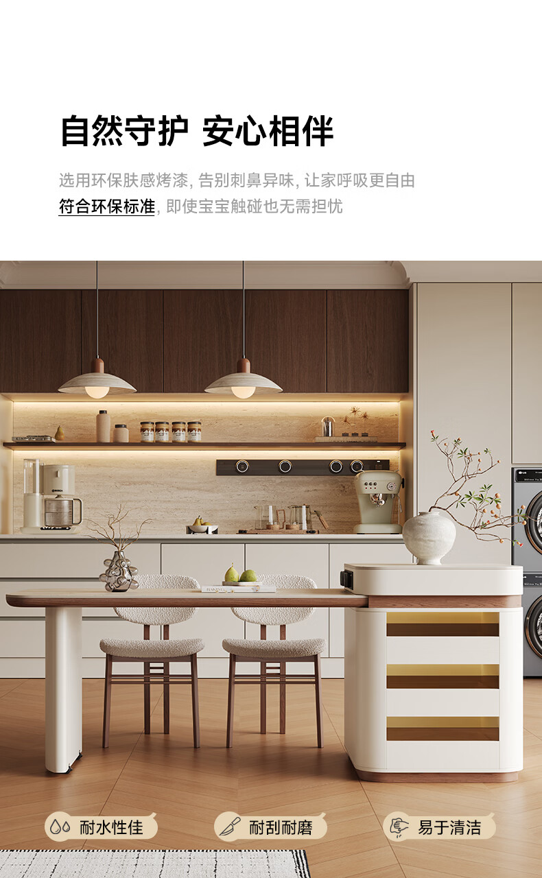 AUGUSTE奥古斯特2026新款中古奶油现代家用小户型伸缩洞石岩板岛台餐桌 设计师餐椅*2