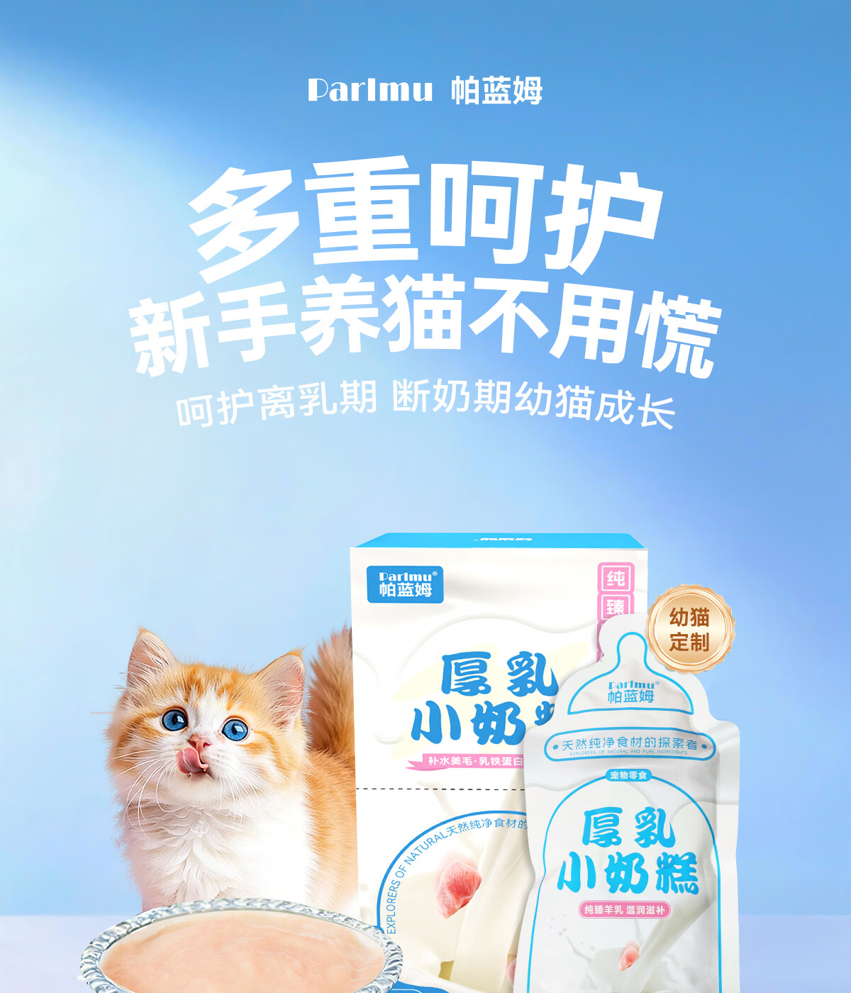 parlmu帕蓝姆猫零食湿粮包厚乳小奶糕宠物零食猫咪补水汤包乳铁蛋白 【乳铁蛋白】厚乳小奶糕40g*10