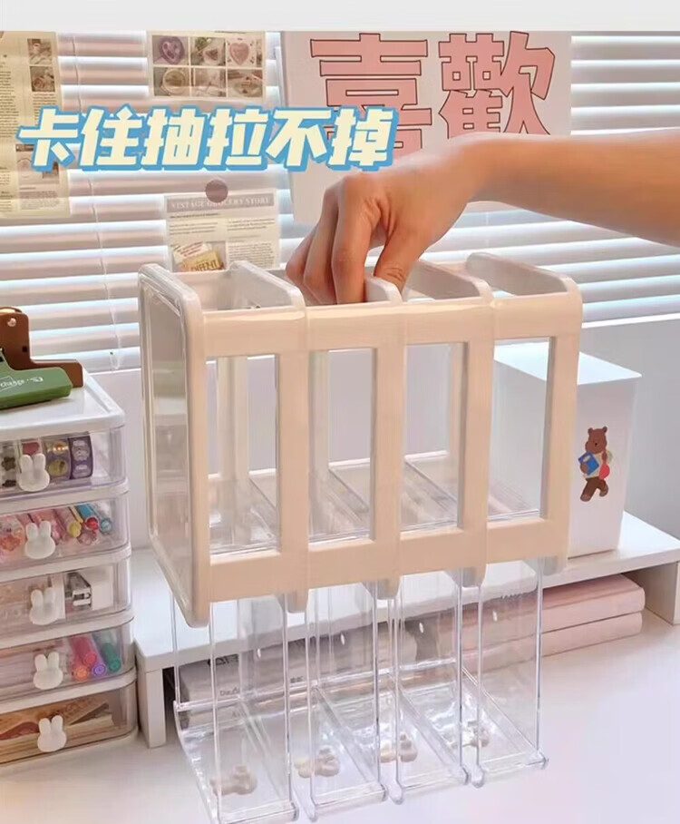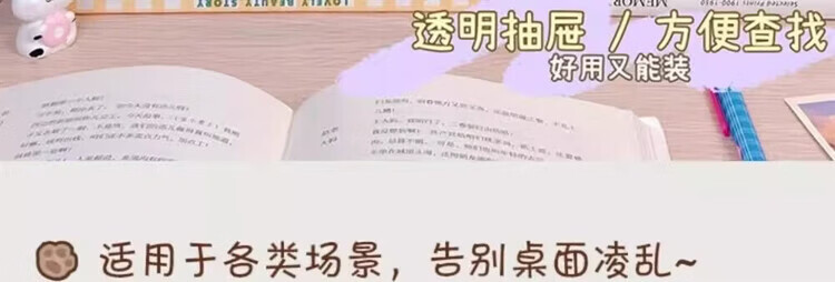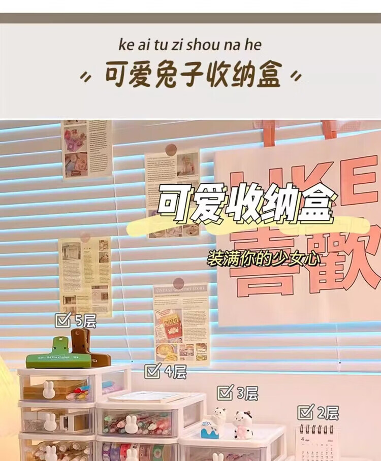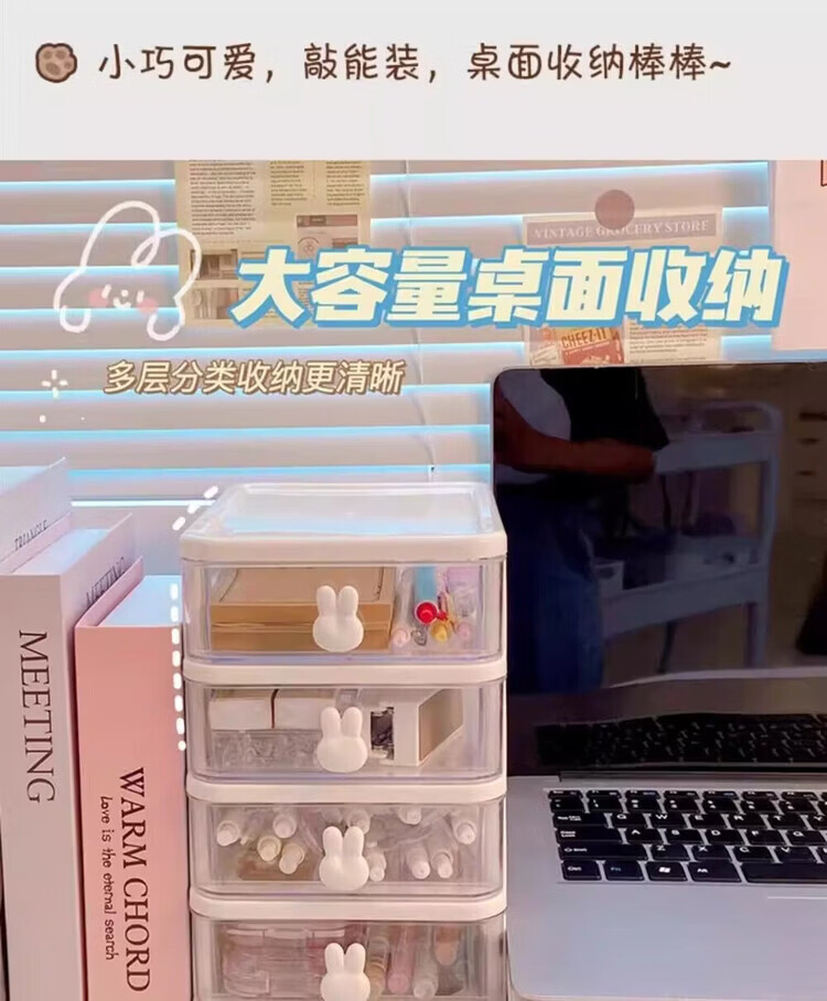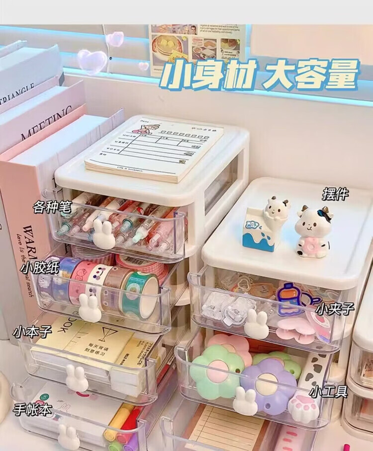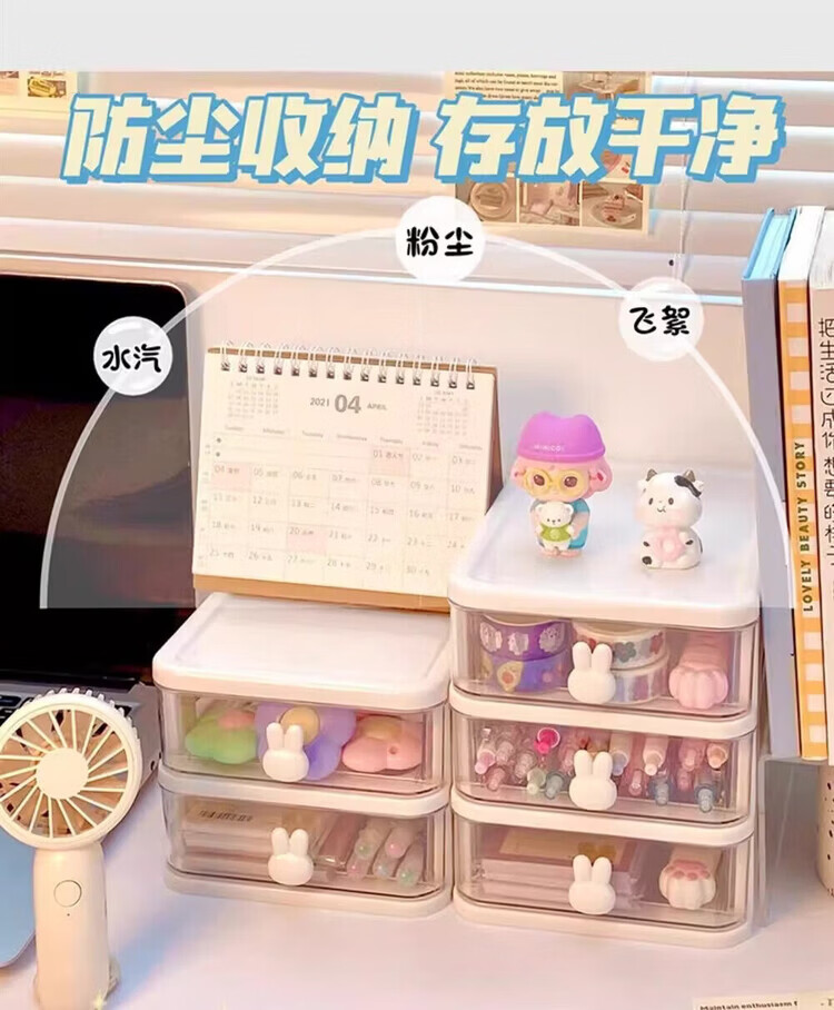 洋臣收纳卡通桌面盒透明小抽屉式书桌塑料迷你储物盒兔子文具整理盒 桌面收纳3层1套【颜色随机发货】