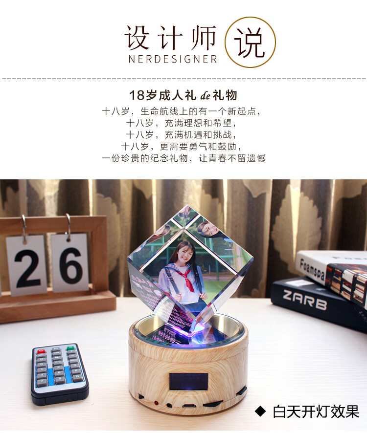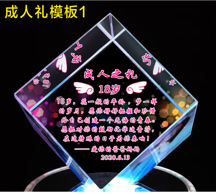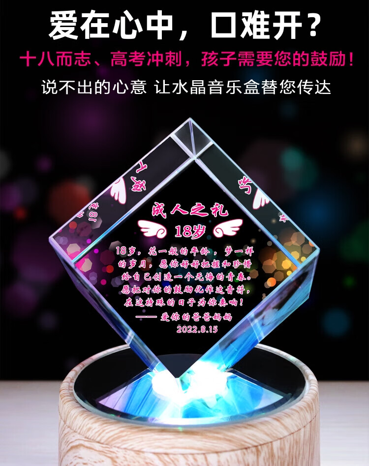 映棠18岁成人礼送女儿儿子十八实用生日礼物定制毕业高考励志水晶摆件 成人之礼+蓝牙音乐底座