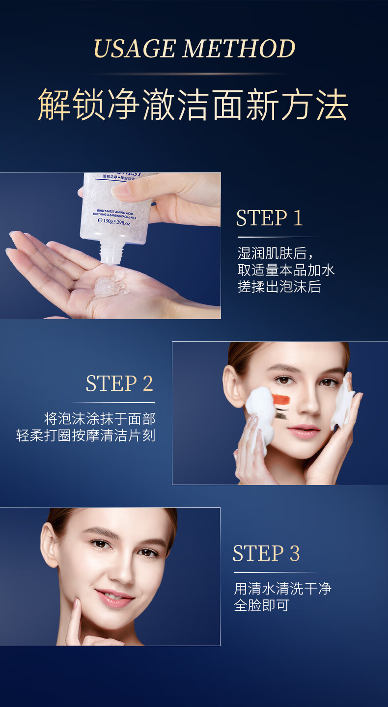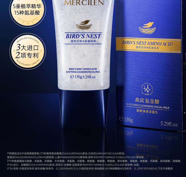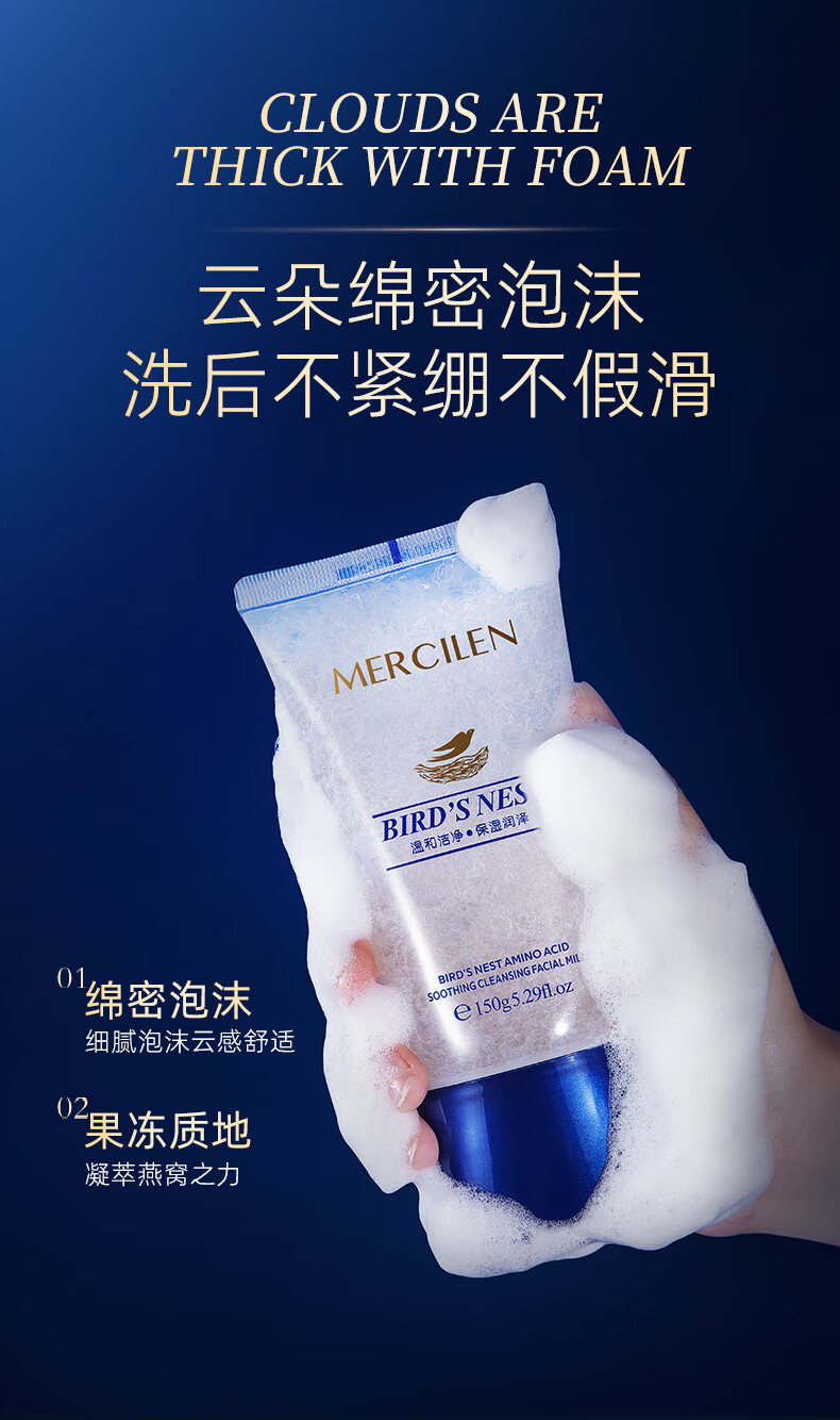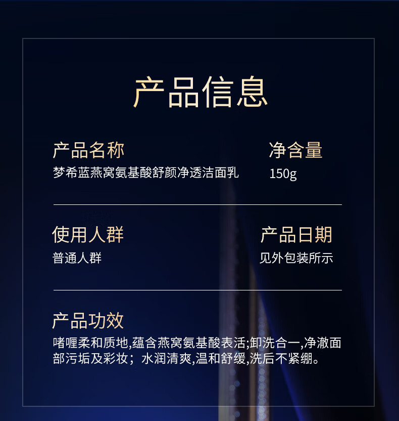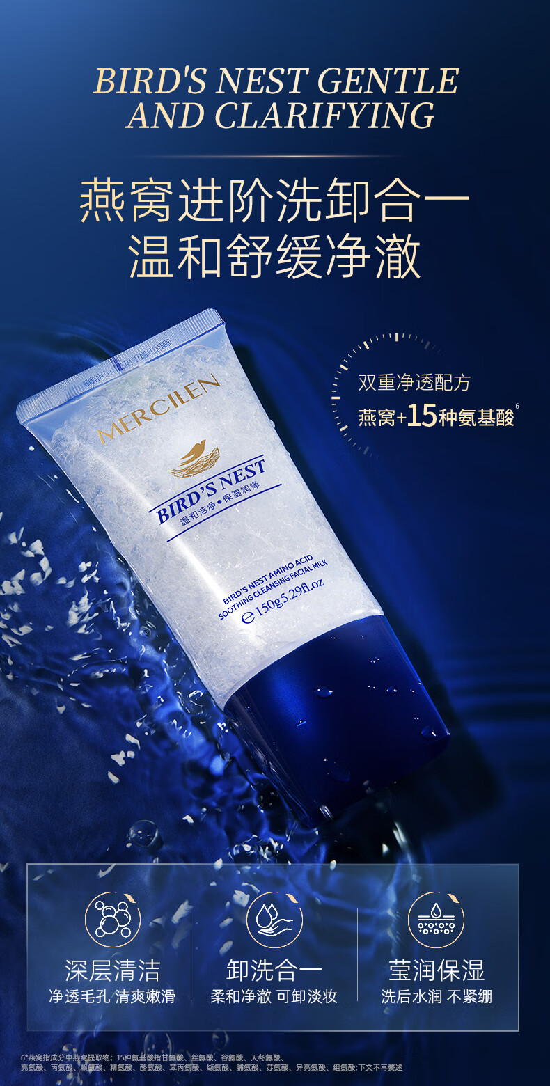 梦希蓝燕窝氨基酸洗面奶深层清洁去油控油温和洁面乳洗卸二合一男士女士 2盒/ 300g 【温和洁面】