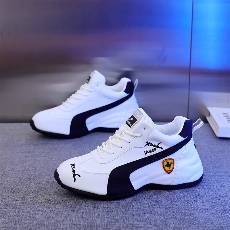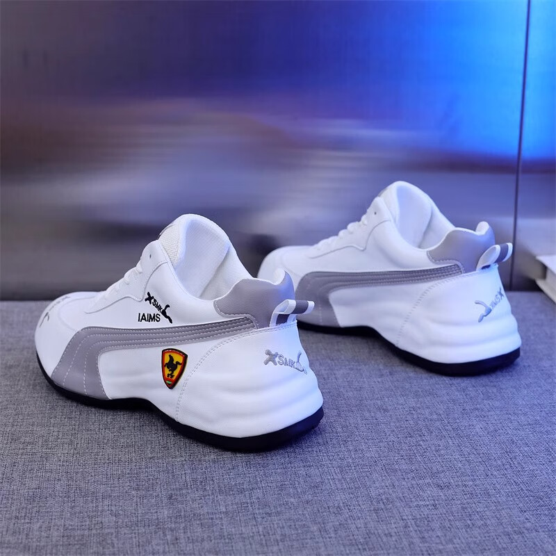 森馬(senma)男士厚底舒适跑步鞋低帮防滑轻便阿甘鞋时尚百搭休闲鞋 白黑 35