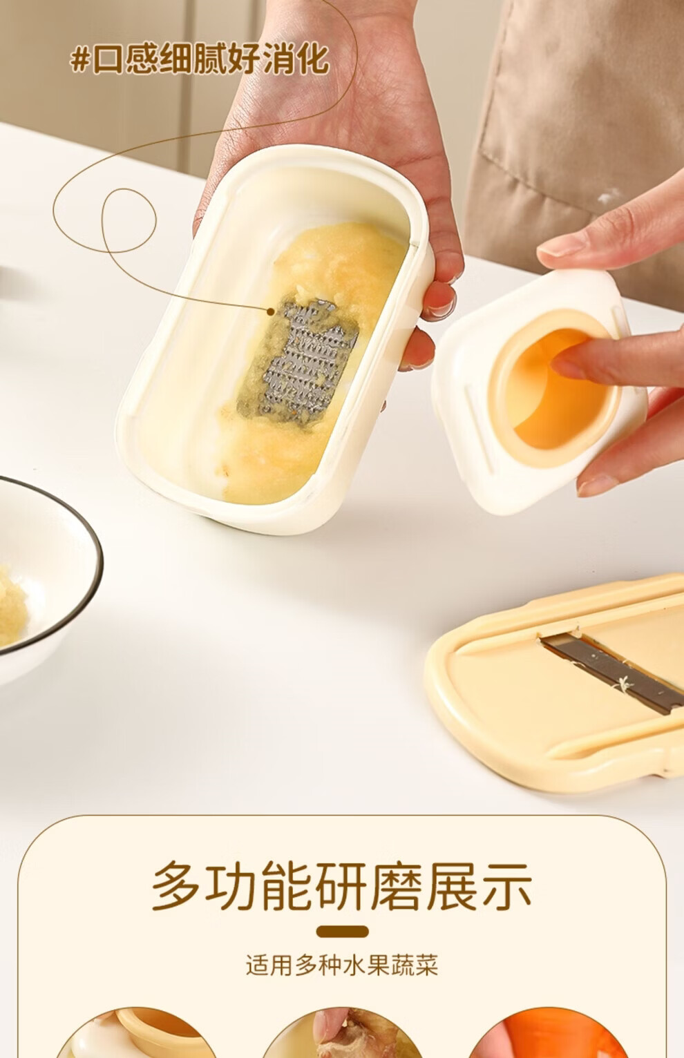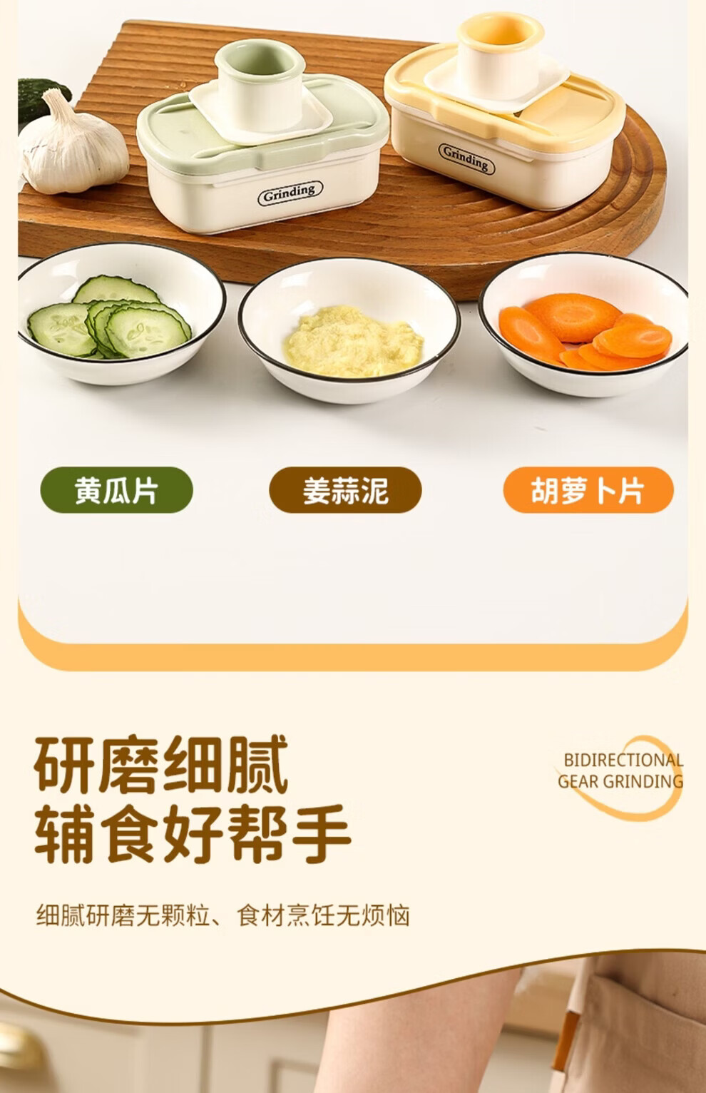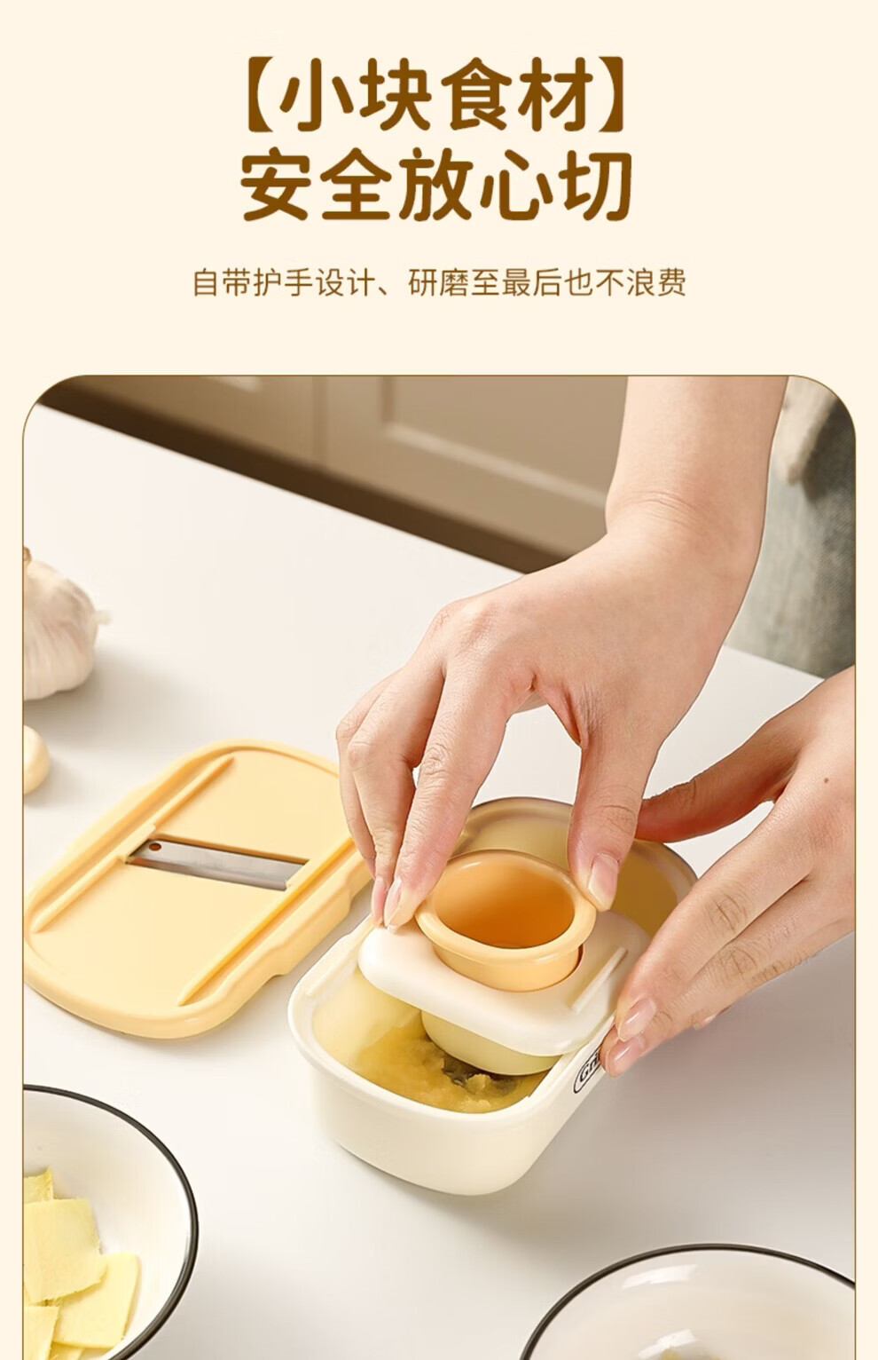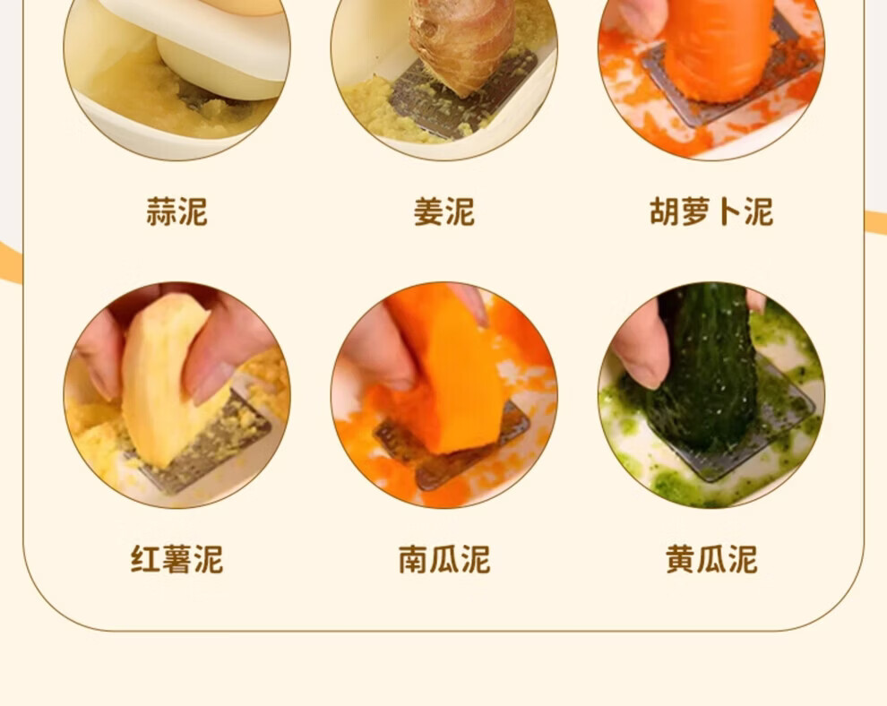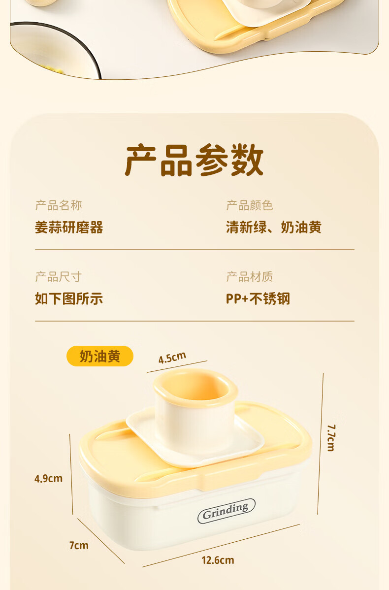 日禾盛唐家用磨姜泥多功能手动磨姜蓉捣蒜切片器厨房宝宝辅食研磨工具便携 黄色