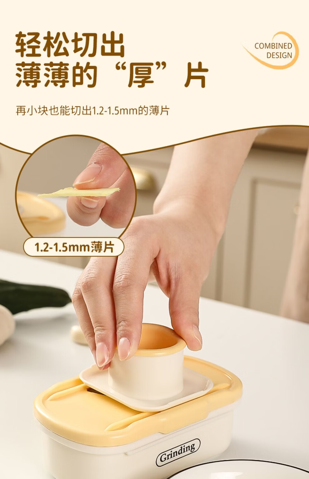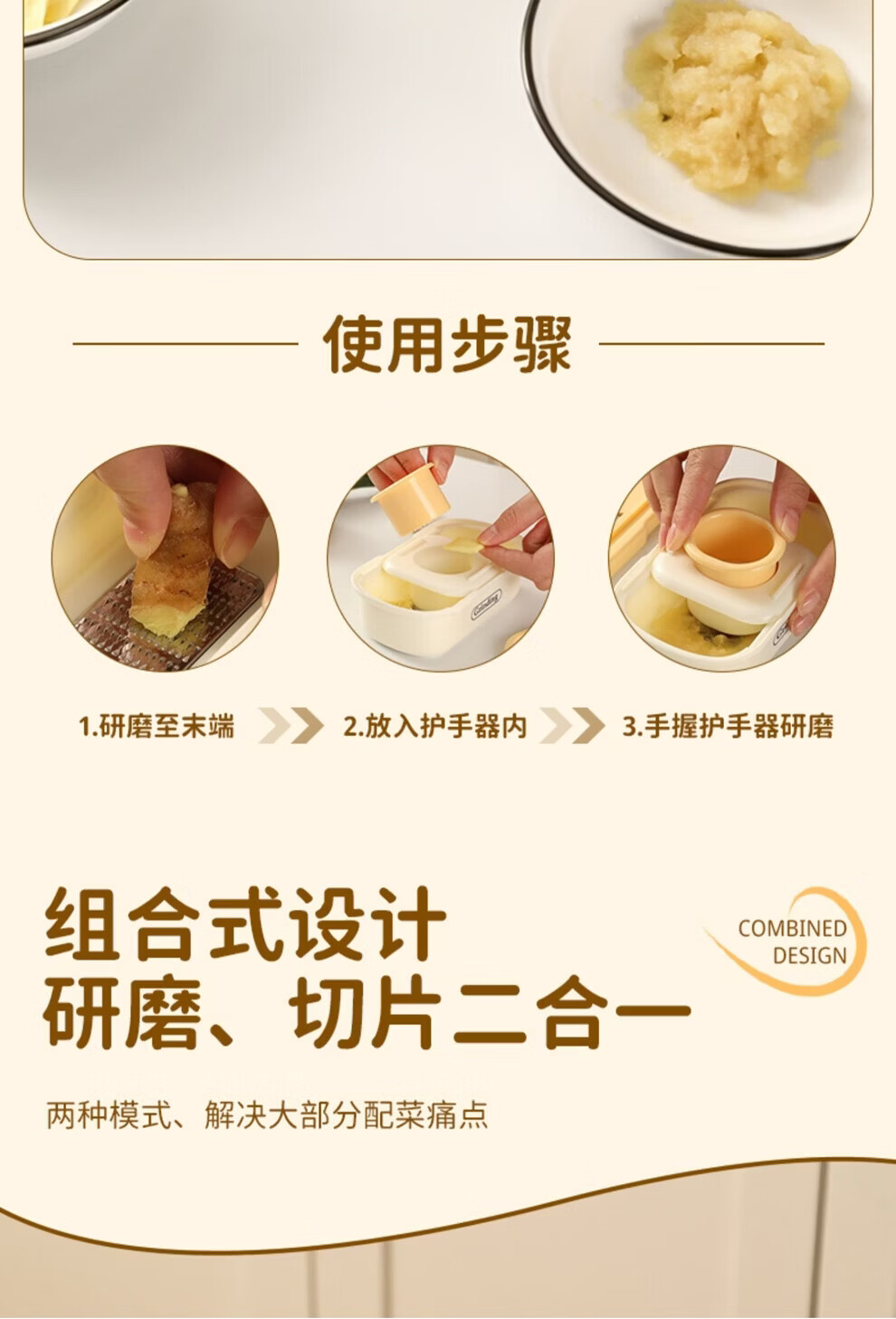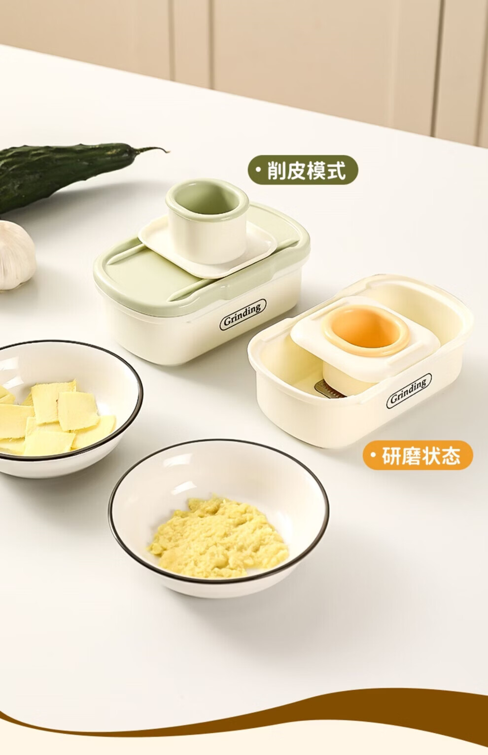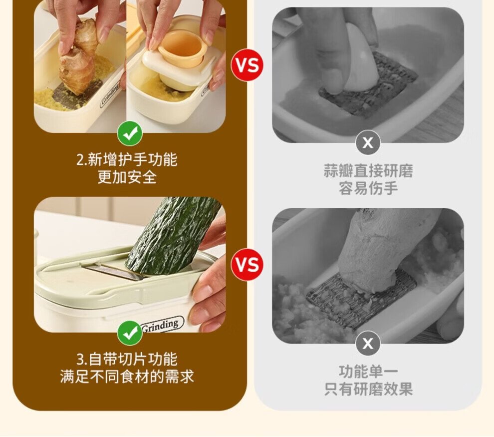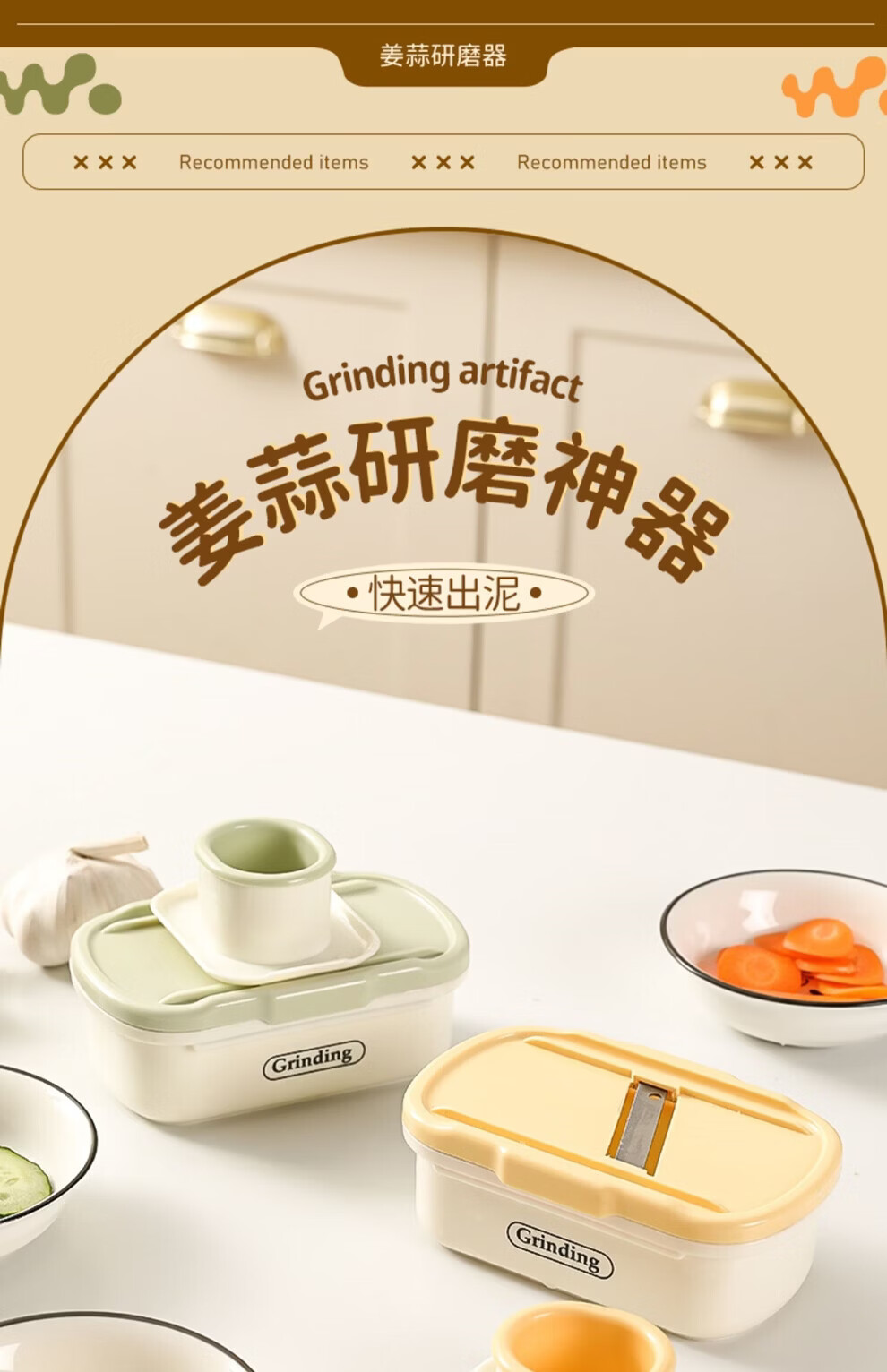 日禾盛唐家用磨姜泥多功能手动磨姜蓉捣蒜切片器厨房宝宝辅食研磨工具便携 黄色