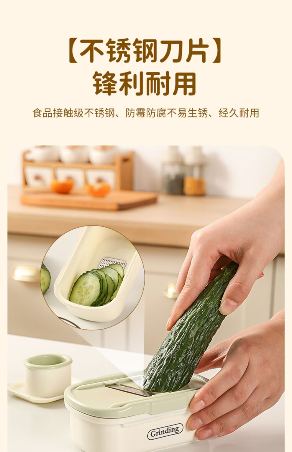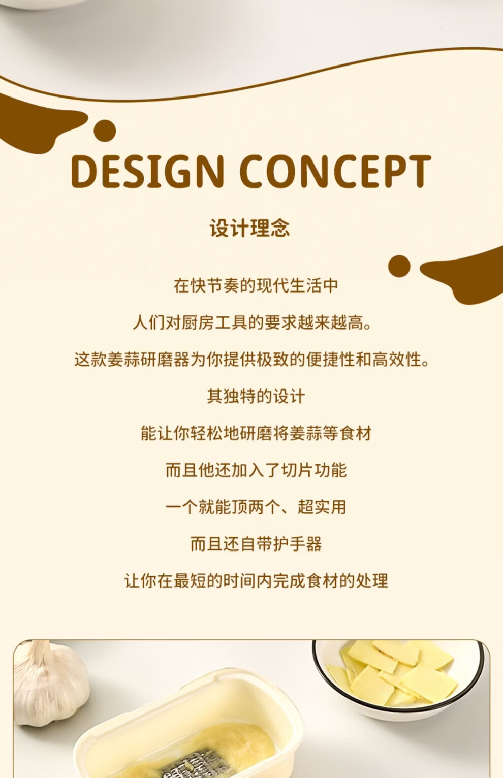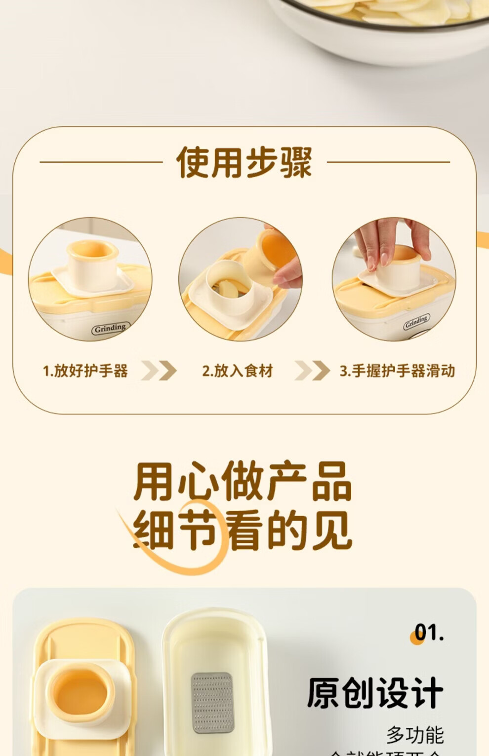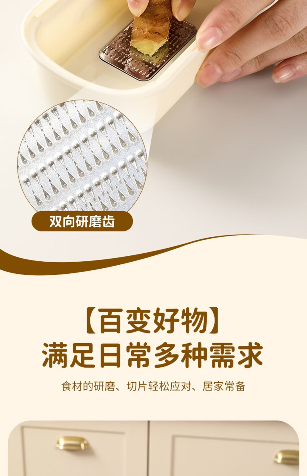 日禾盛唐家用磨姜泥多功能手动磨姜蓉捣蒜切片器厨房宝宝辅食研磨工具便携 黄色