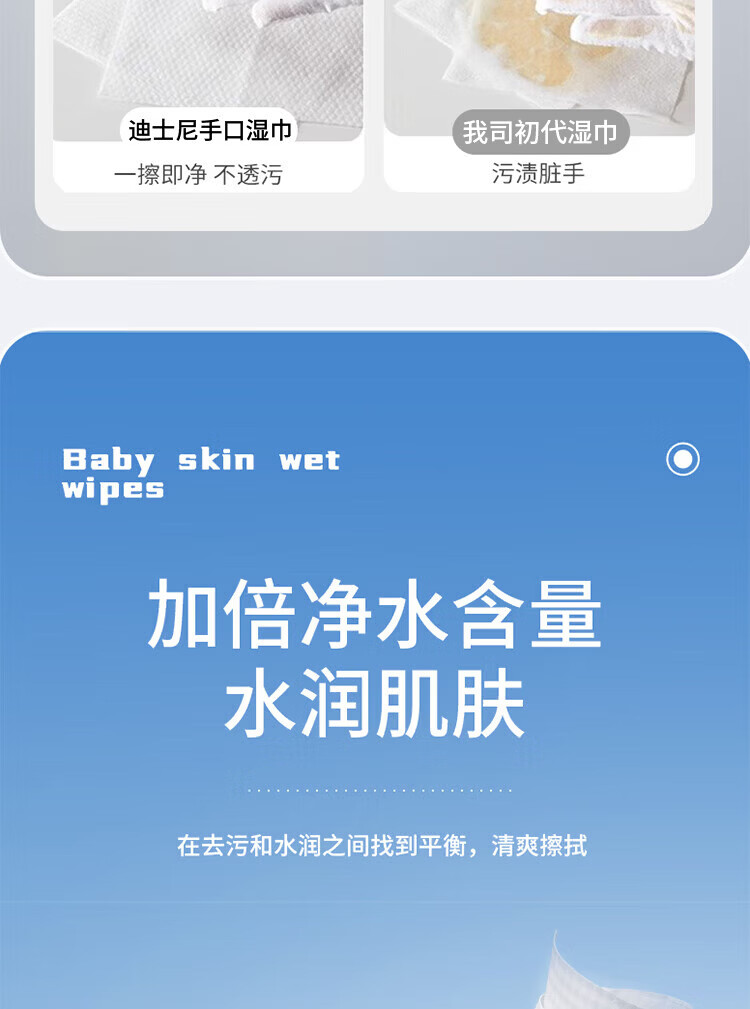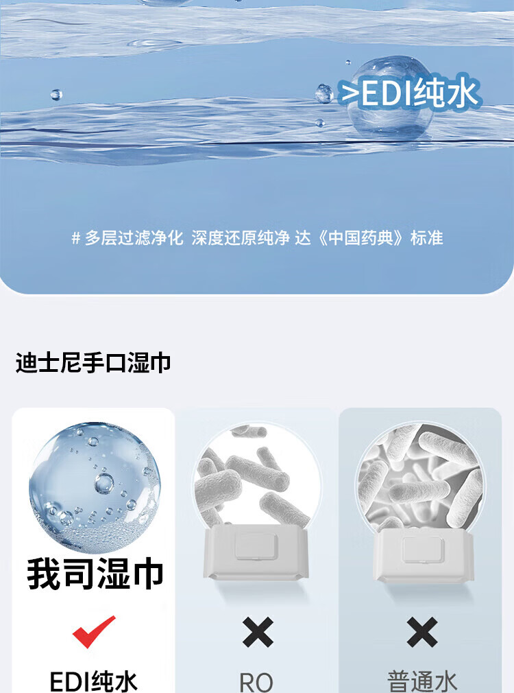 爱怡优×迪士尼联名 湿巾 加大加厚 EDI纯水儿童手口湿纸巾婴幼儿湿巾纸 【200*200】80抽6包