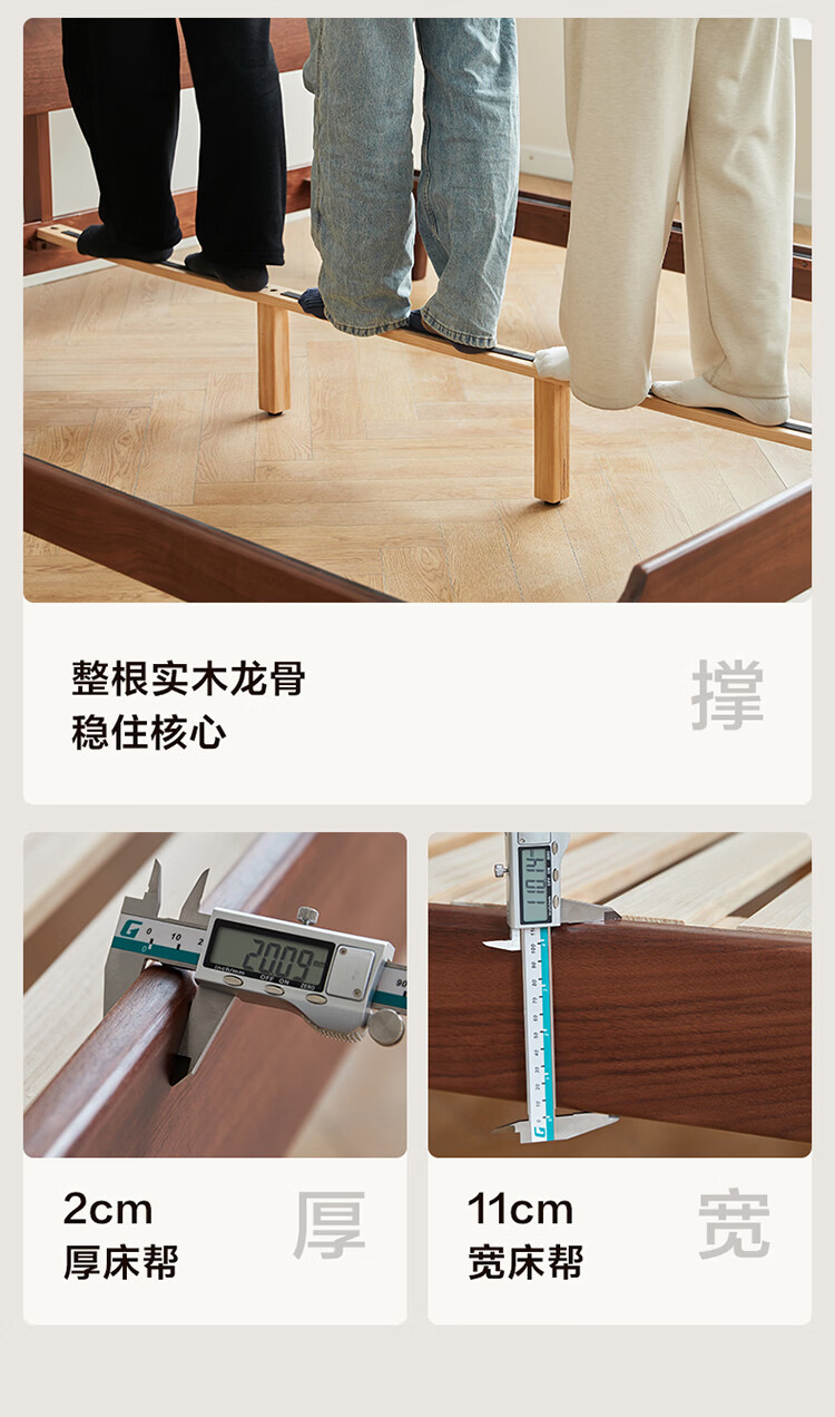 全友家居奶油原木风高脚床小户型家用卧室齐边双人大床床加床垫一整套 【奶油白+原木色】 1.5米x2米 单床