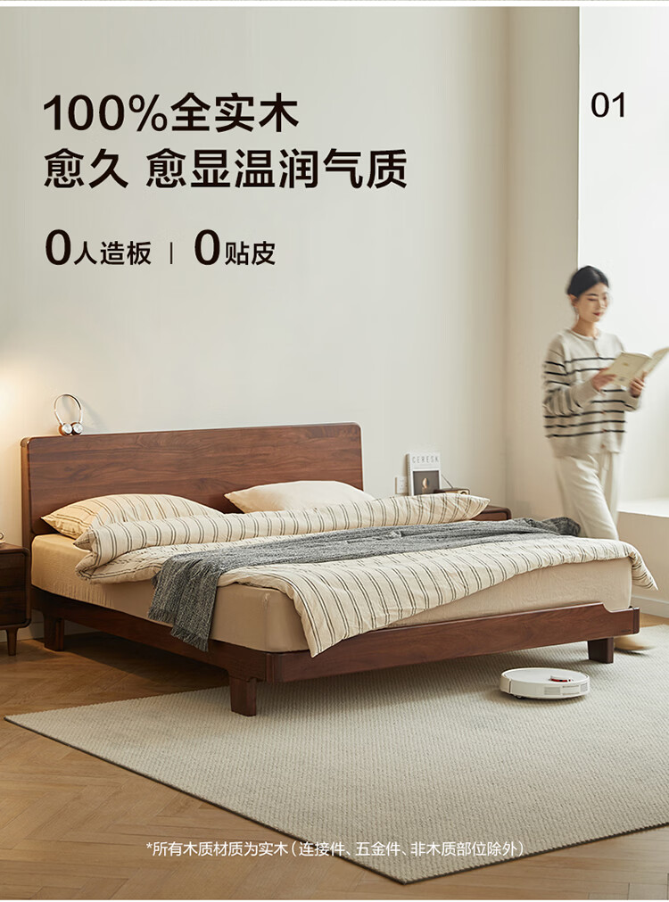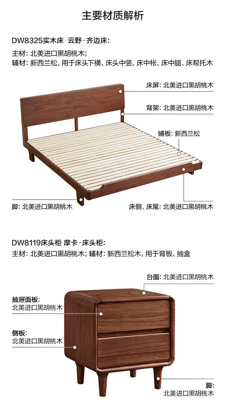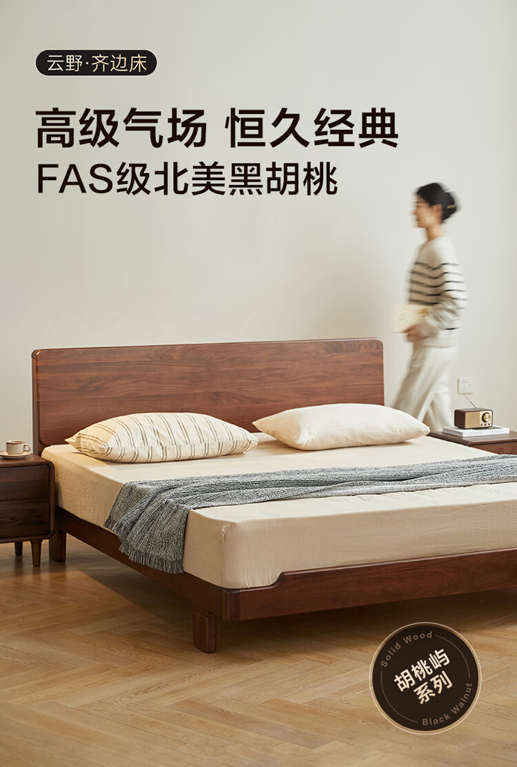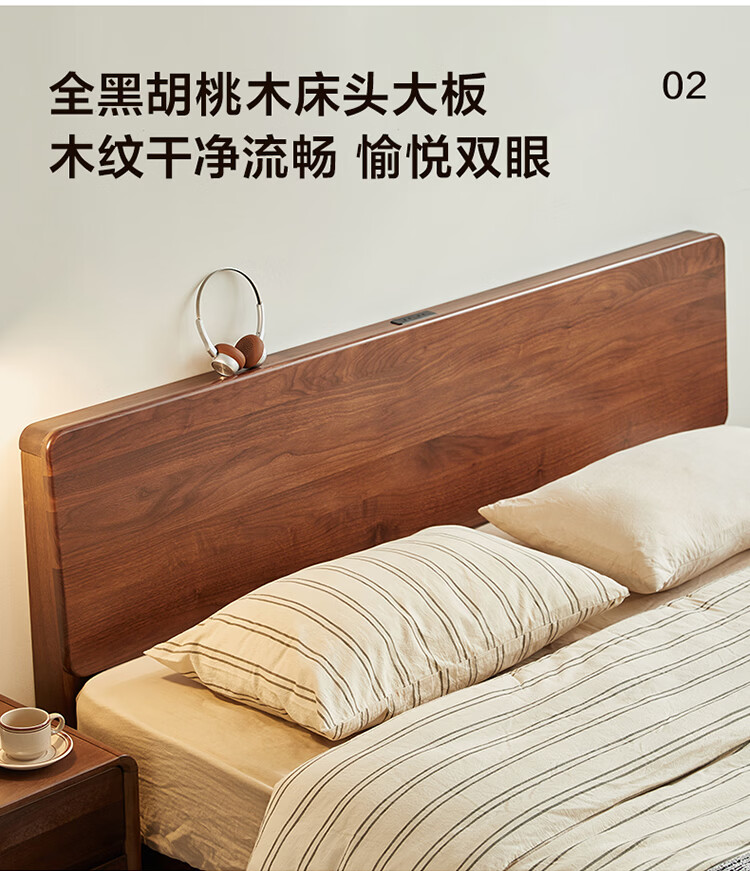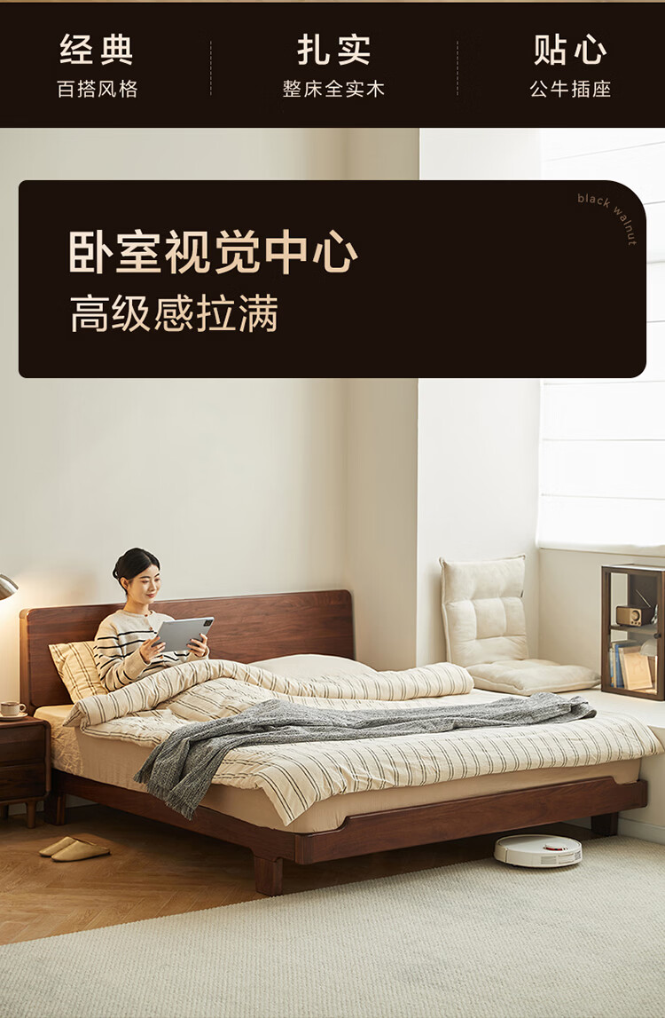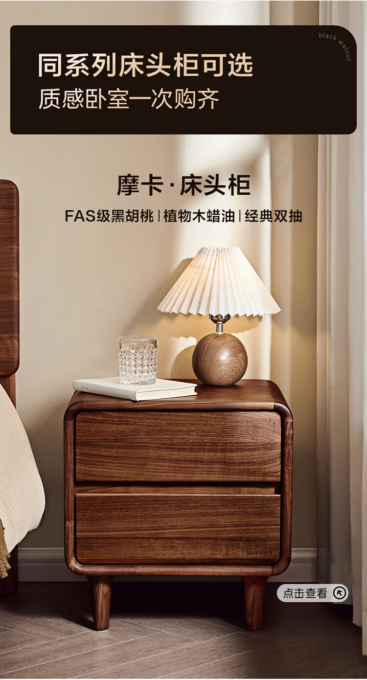 全友家居原木风实木床北美黑胡桃木家用主卧室床床垫组合套装齐边床 【黑胡桃木】床头柜 1.8米x2米 床头柜
