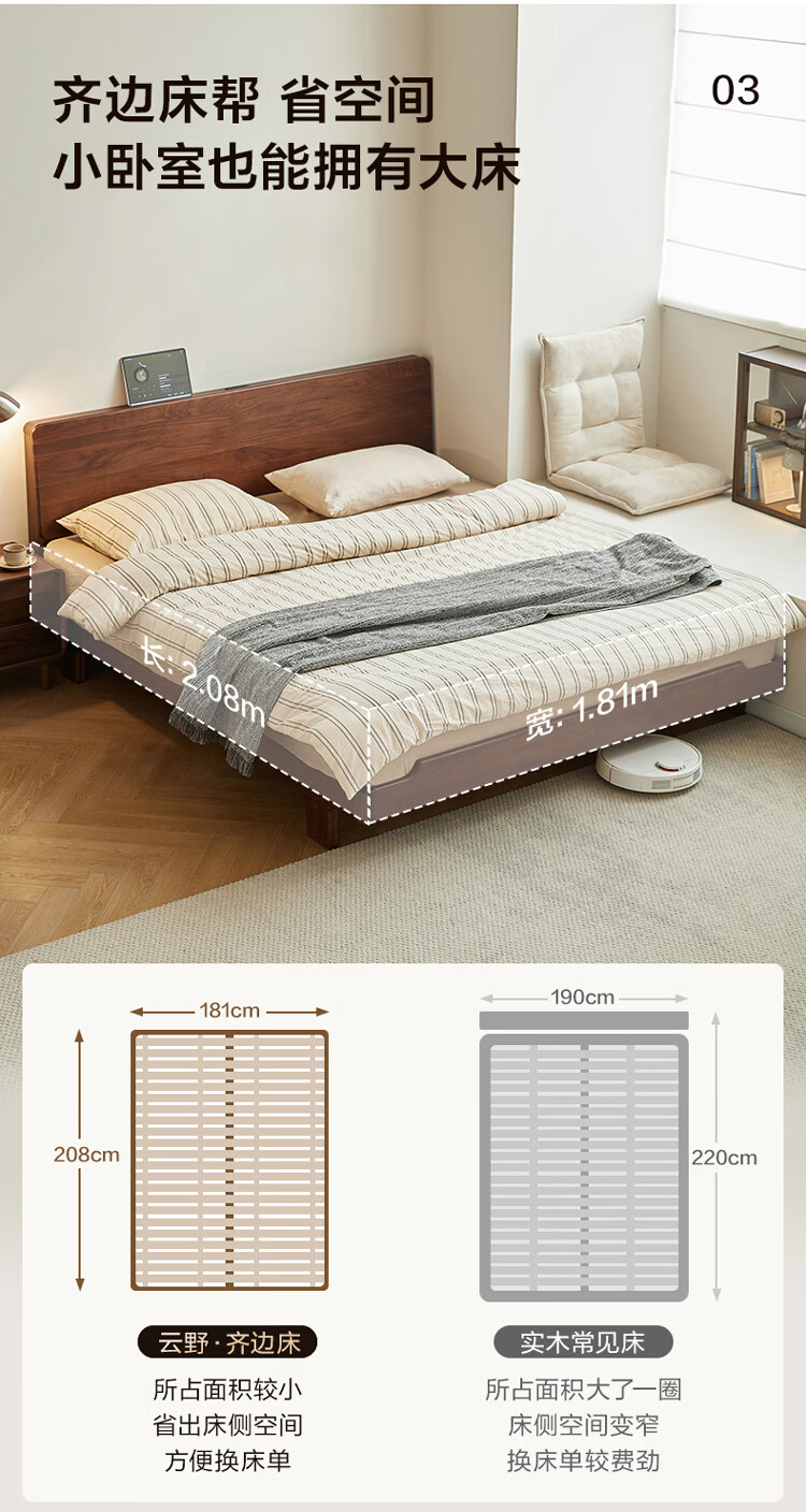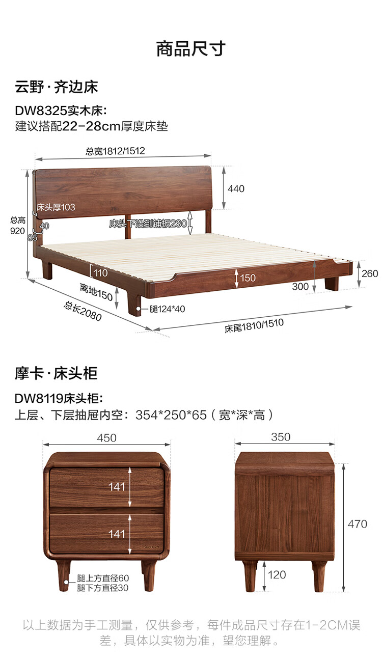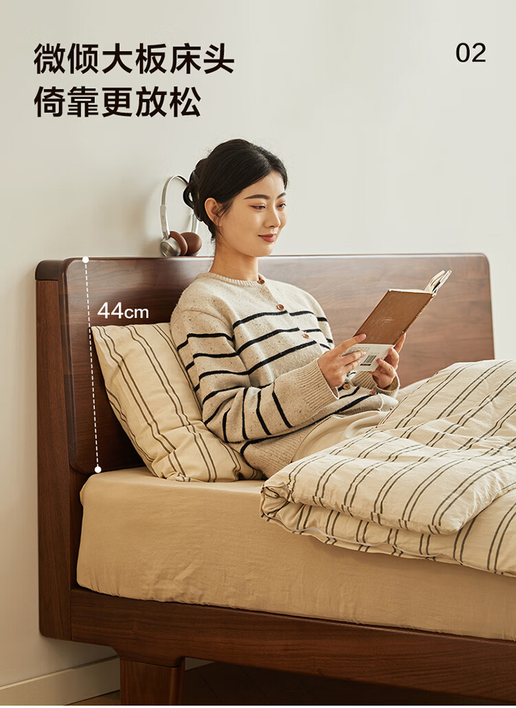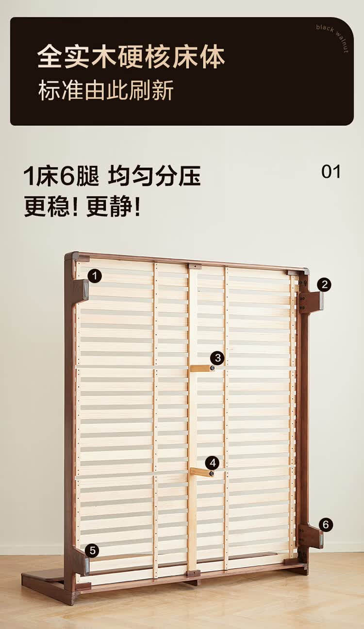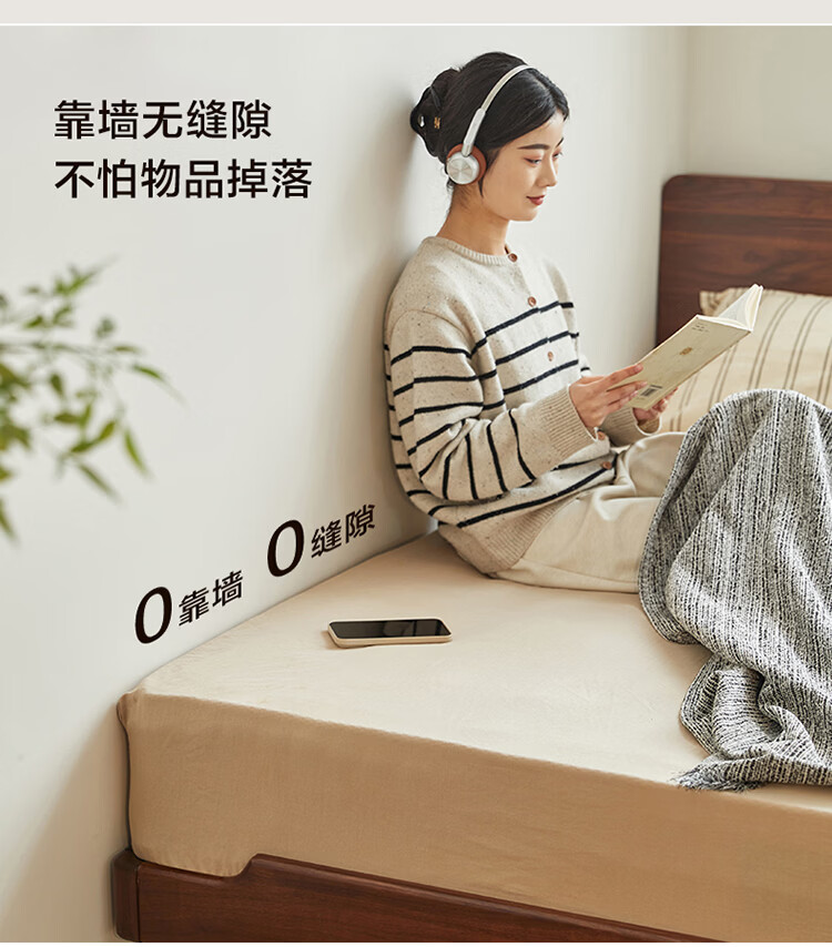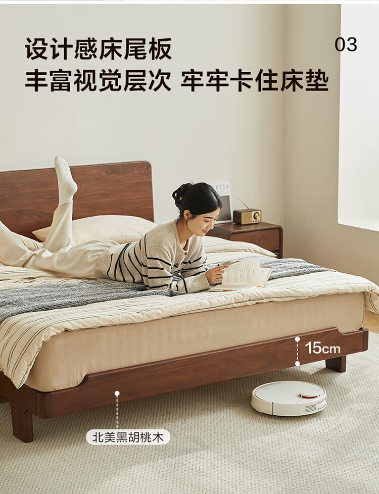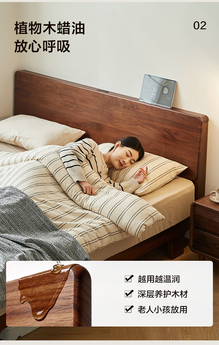 全友家居原木风实木床北美黑胡桃木家用主卧室床床垫组合套装齐边床 【黑胡桃木】床头柜 1.8米x2米 床头柜
