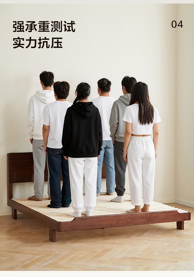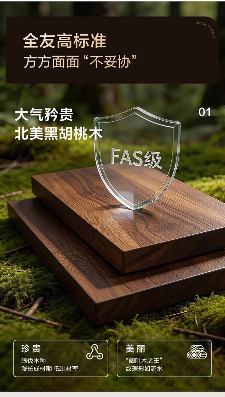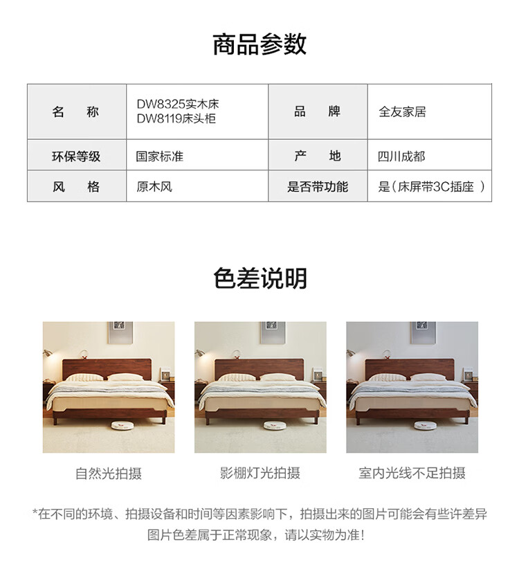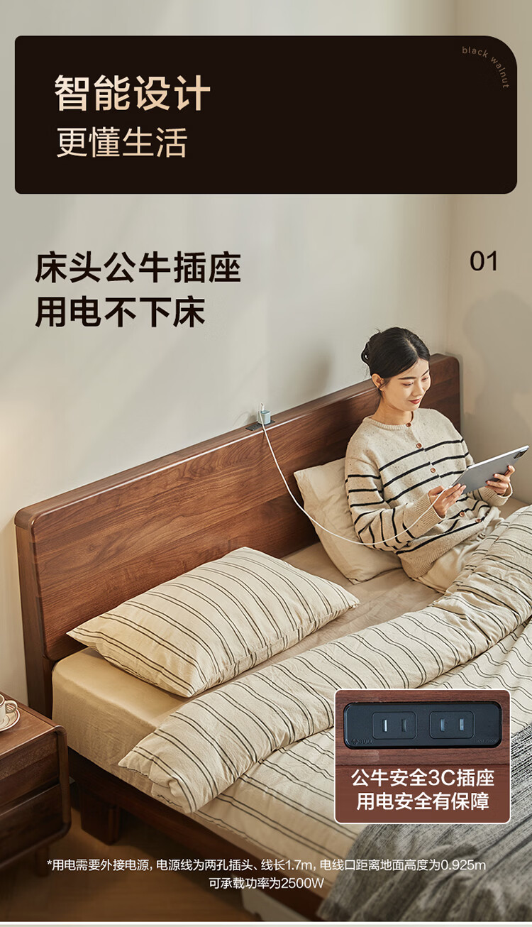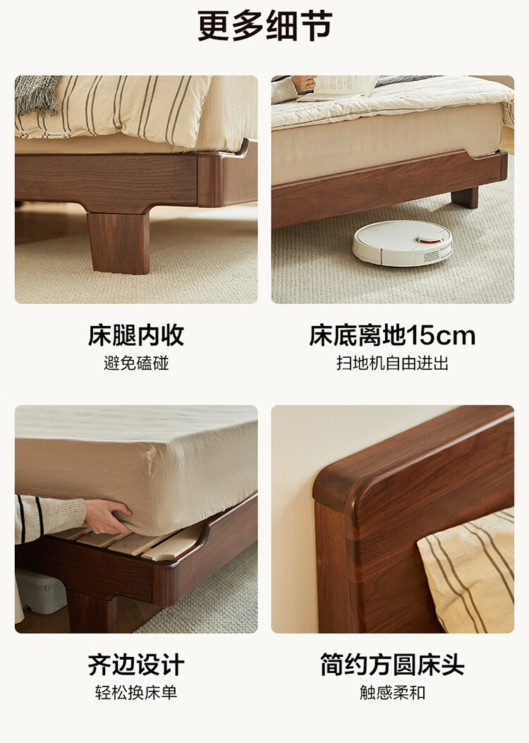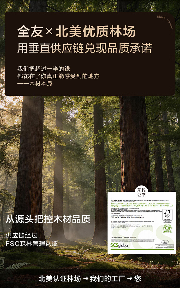 全友家居原木风实木床北美黑胡桃木家用主卧室床床垫组合套装齐边床 【黑胡桃木】床头柜 1.8米x2米 床头柜
