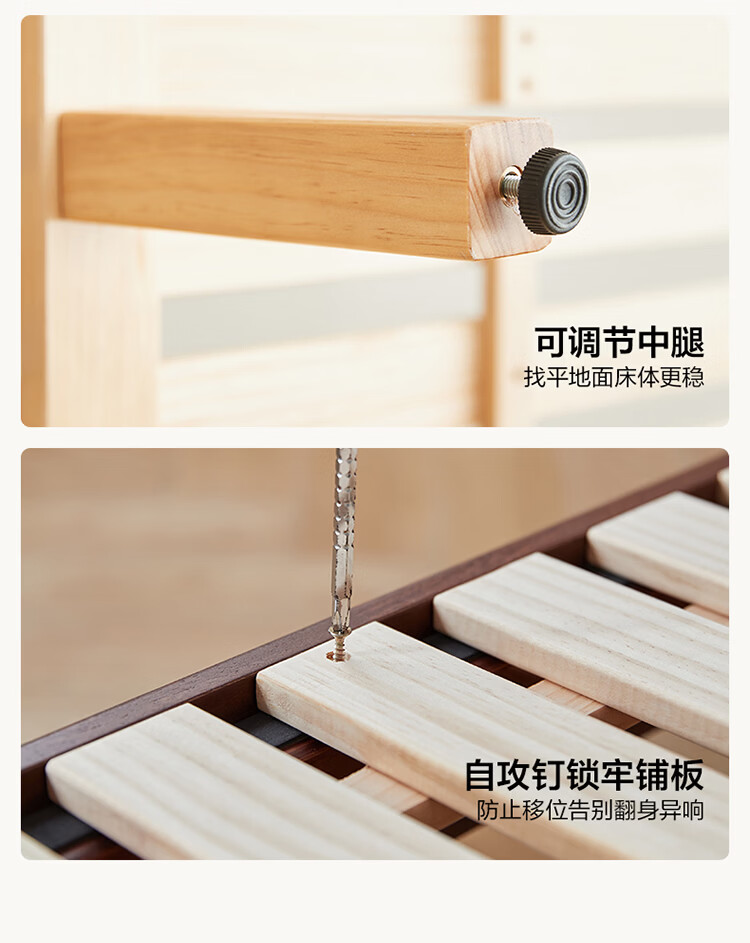 全友家居实木儿童床1.5米男女孩单人床原木风学生地台小床KZ 山毛榉|单床 1.2×2米【全实木+圆润边角+可拆卸腿】