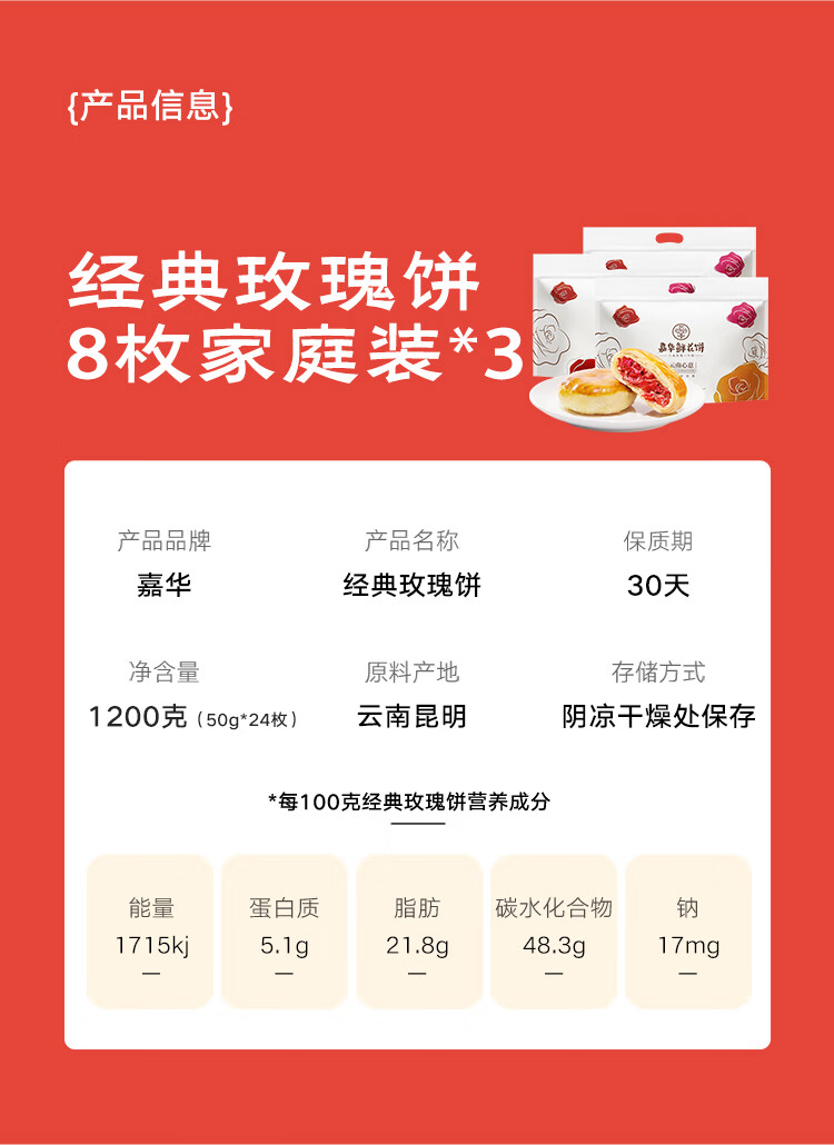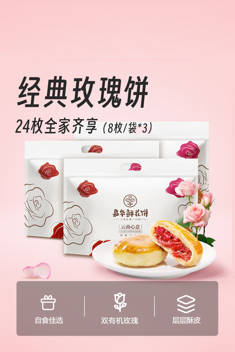 嘉华鲜花饼经典玫瑰饼50g*24枚休闲零食糕点早餐点心【源头直发包邮】