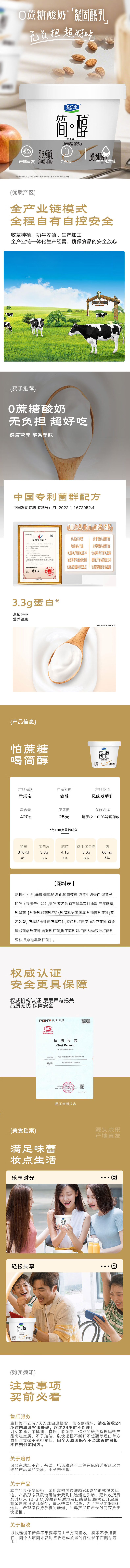 君乐宝简醇 0蔗糖 凝固酪乳420g*3桶赠鲜酪乳100g*3杯 源头直发 包邮
