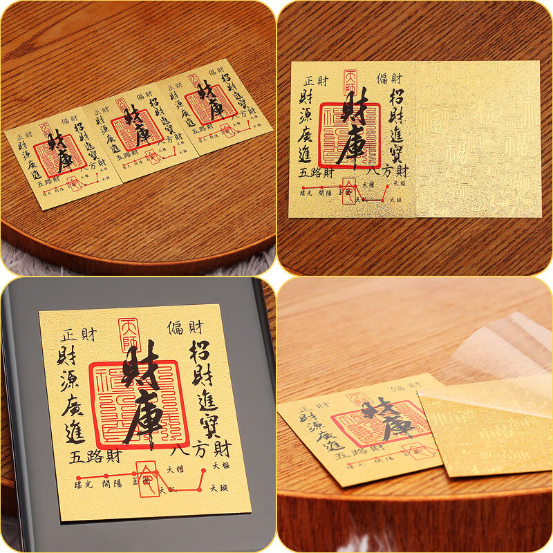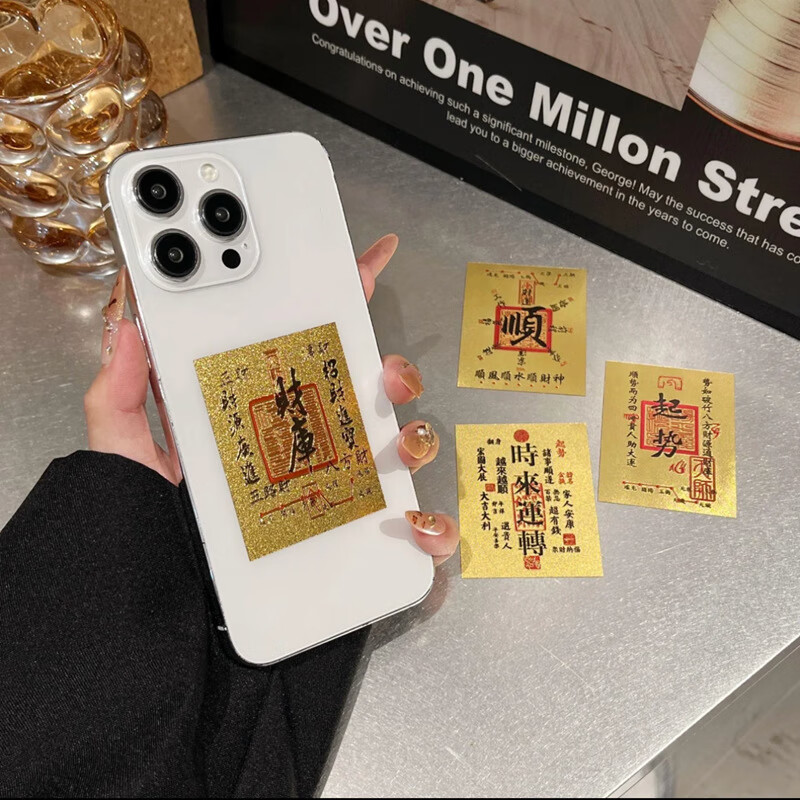 创意饰品新款手机贴纸平安福财库时来运转百福财库贴纸仿金箔鎏金 顺风顺水顺财神(自带背胶)