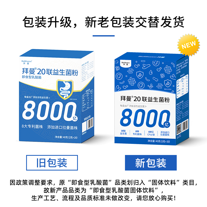 拜曼益生菌8000亿活菌大人小孩肠胃女人老人肠道益生元冻干粉 20袋*3盒