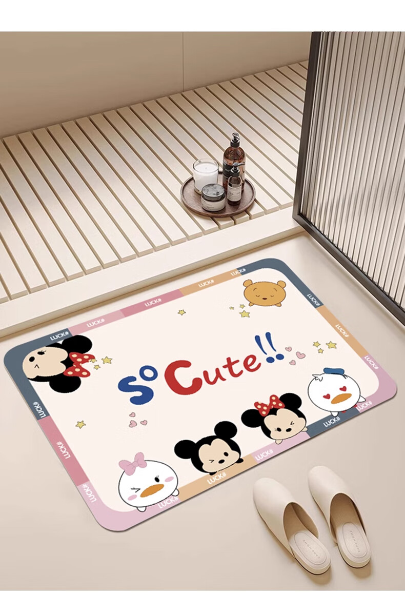 季象家用卫浴地垫浴室厨房防滑垫入户门垫厕所卫生间门口吸水速干脚垫 GZN-童趣卡通浅绿 40x60 cm【吸水黑科技体验装】