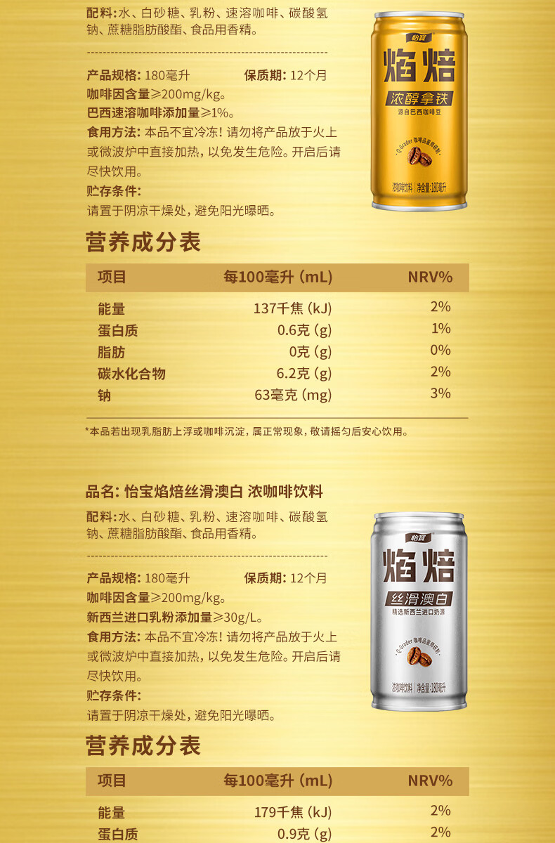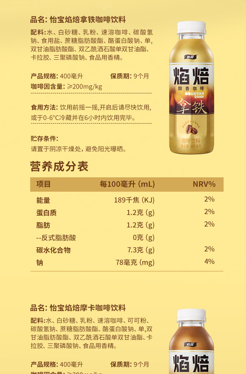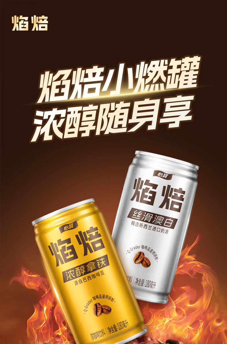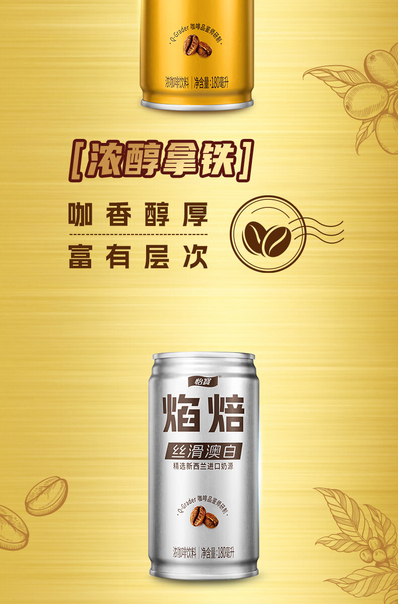 怡宝焰焙浓醇拿铁咖啡饮料摩卡180ml*6罐/24罐小巧罐装400ml瓶装*15瓶 怡宝焰焙拿铁180mL*6罐