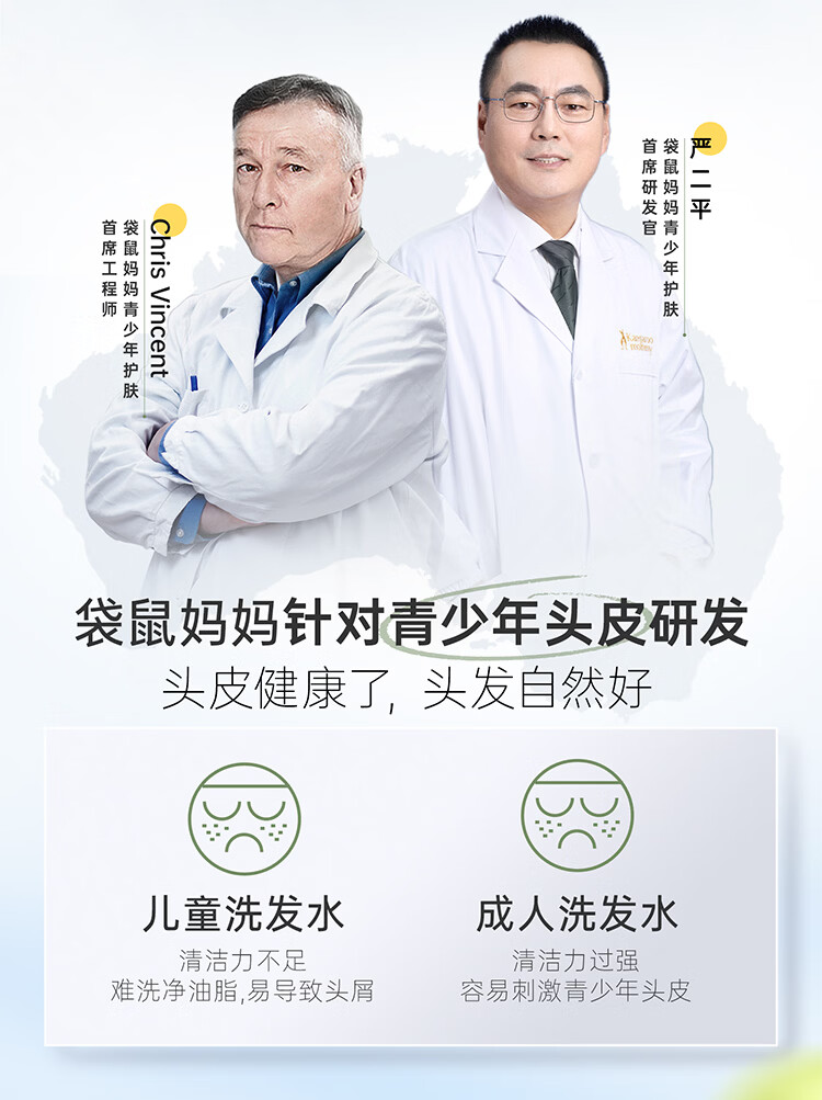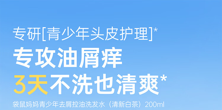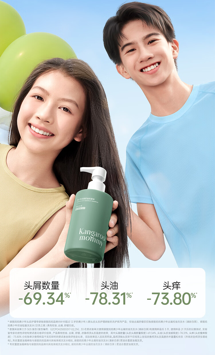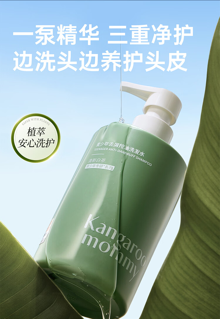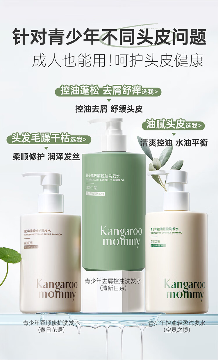 袋鼠妈妈青少年洗发水去屑控油青春期儿童洗发露清洁舒缓头皮净异味200ml