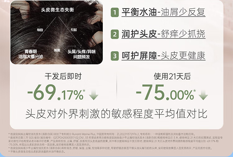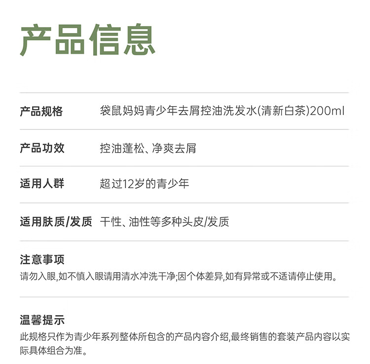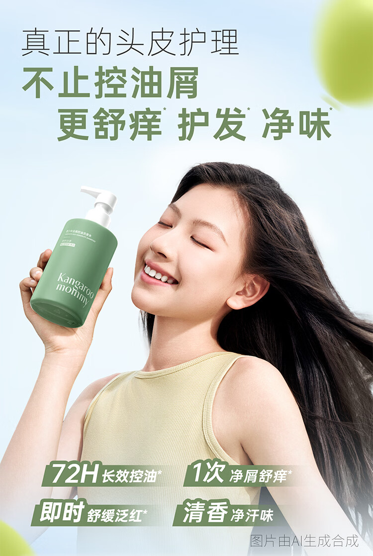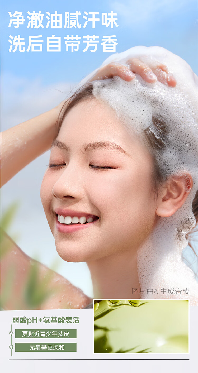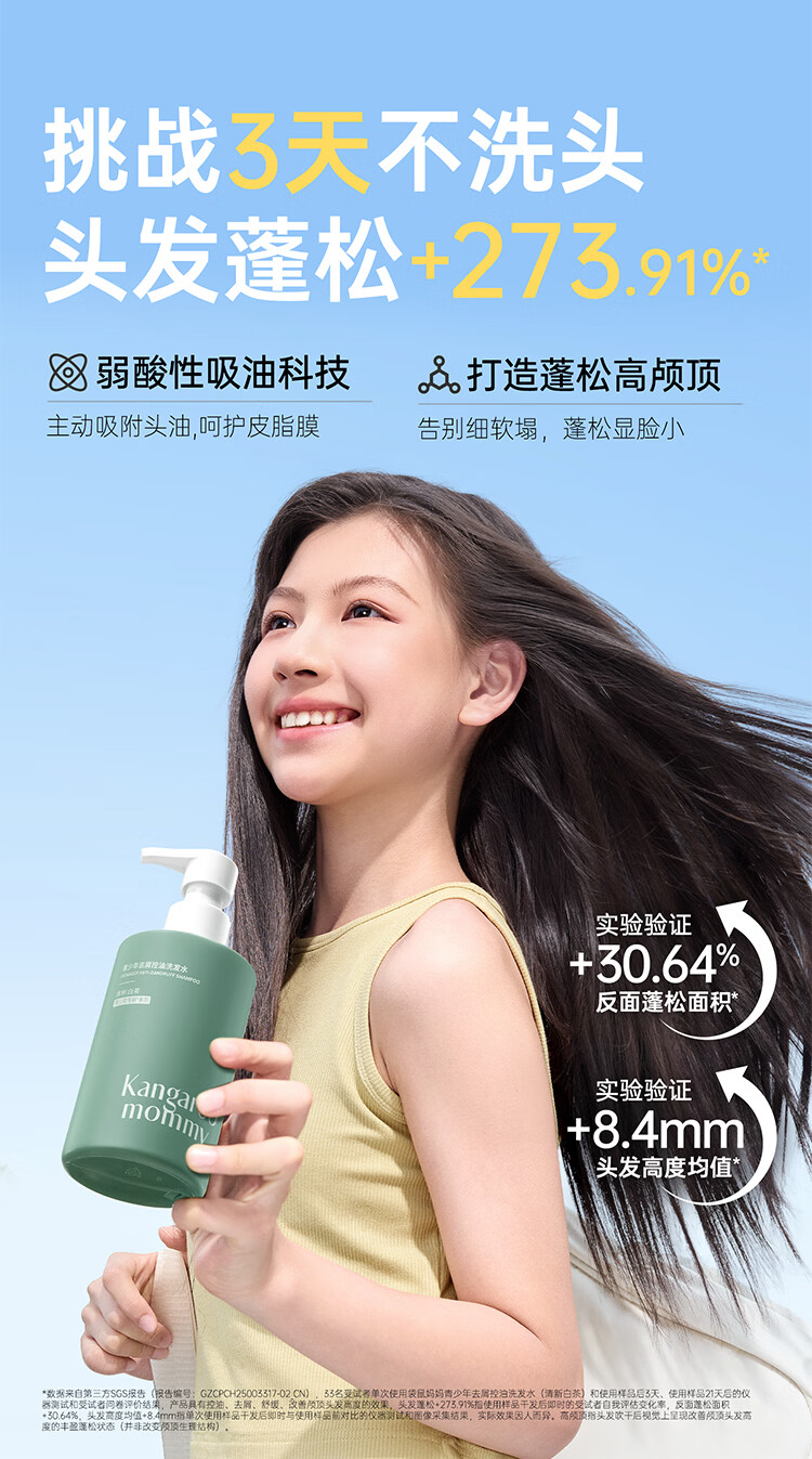 袋鼠妈妈青少年洗发水去屑控油青春期儿童洗发露清洁舒缓头皮净异味200ml