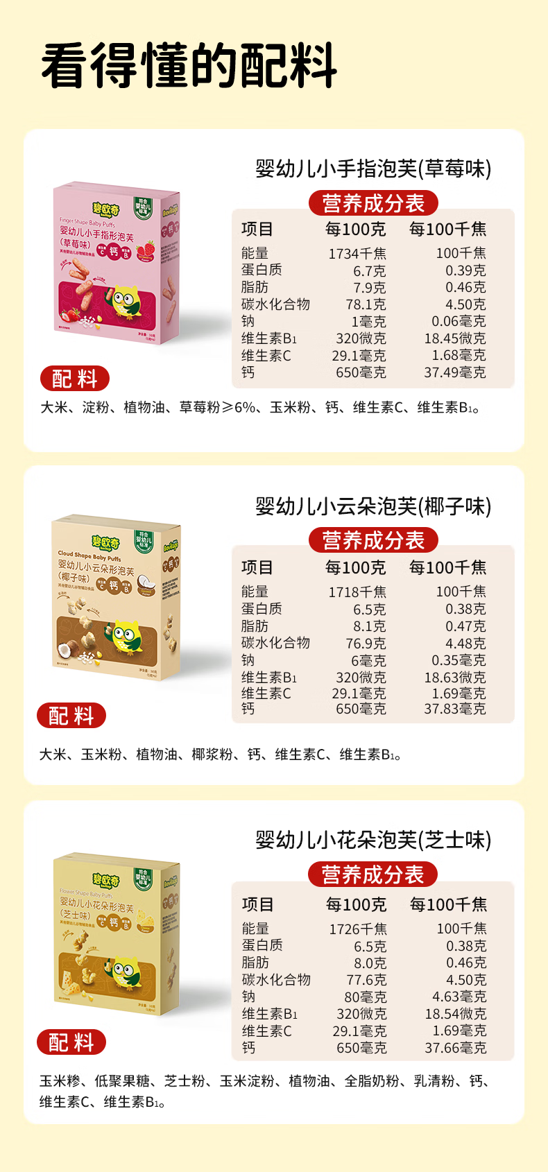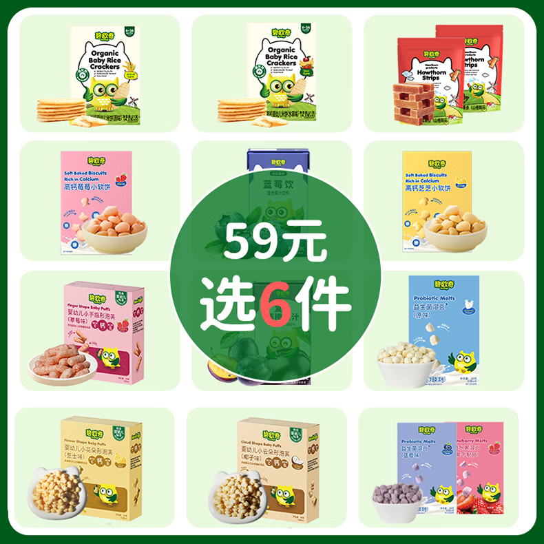 碧欧奇【59元选6件】儿童零食核桃饼干米饼鳕鱼肠泡芙坚果酥溶豆酸奶 【婴标】椰子味云朵泡芙30g