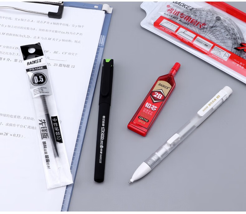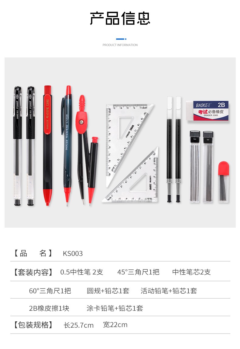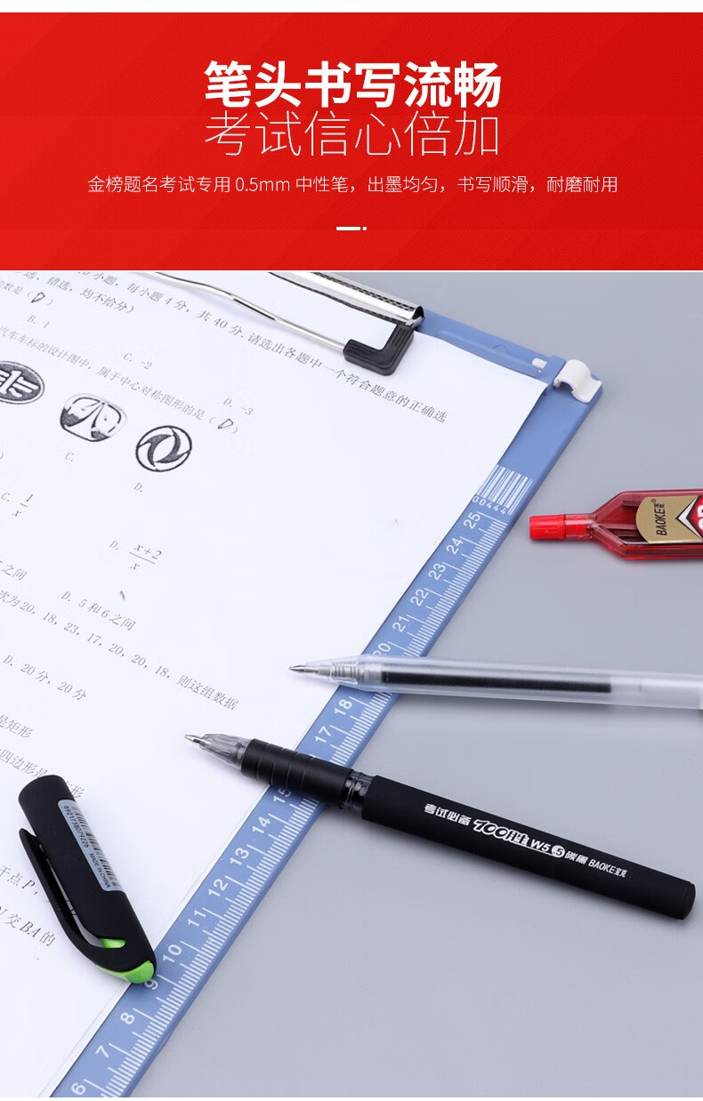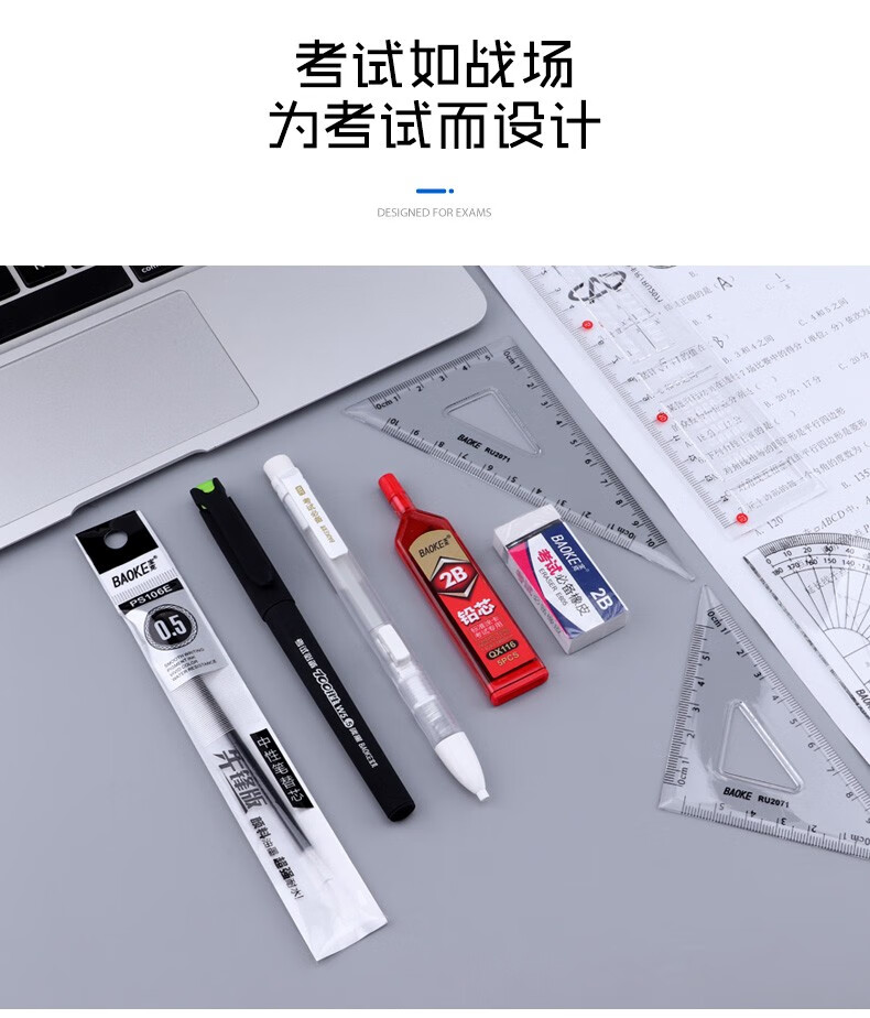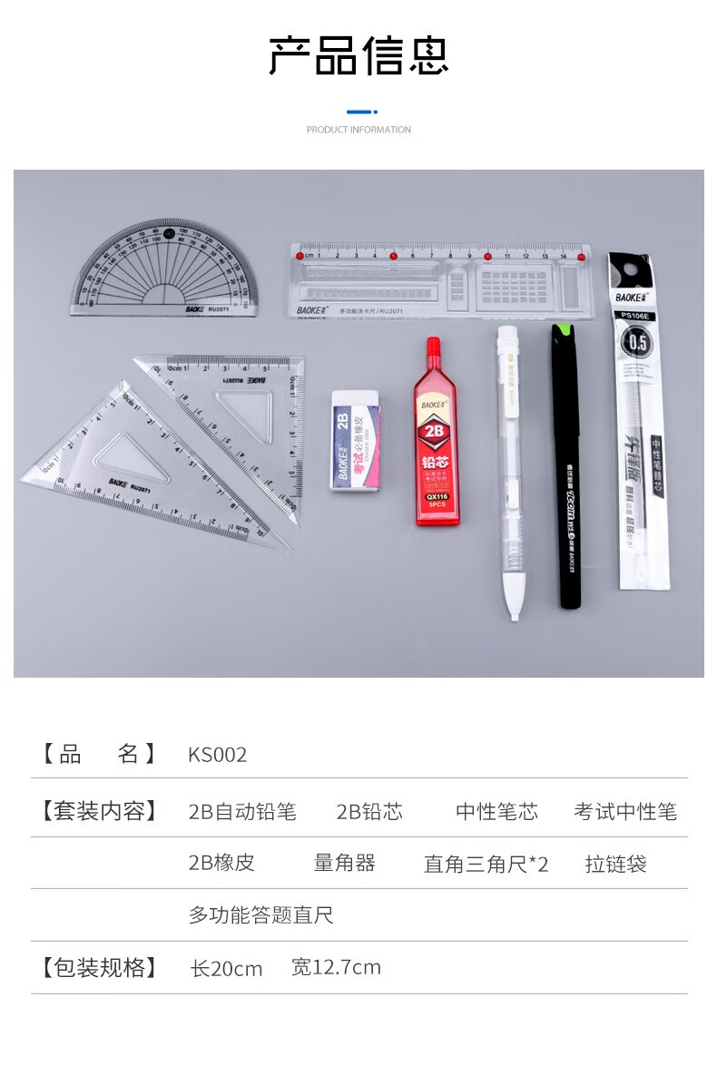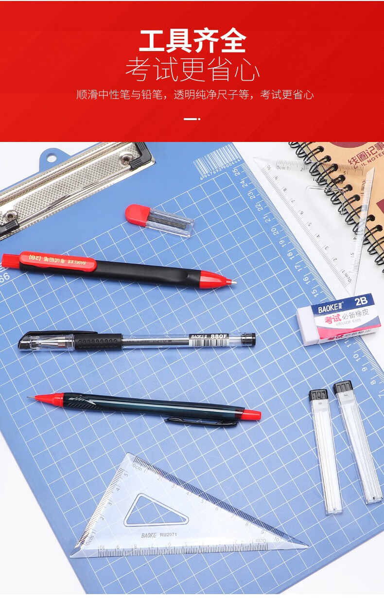 宝克(BAOKE)考试专用套装 金榜题名考试套装 考研中高考文具套装 公务员研究生四六级国考省考 KS001【套尺+笔+涂卡铅笔+笔芯+橡皮+圆规】 包邮