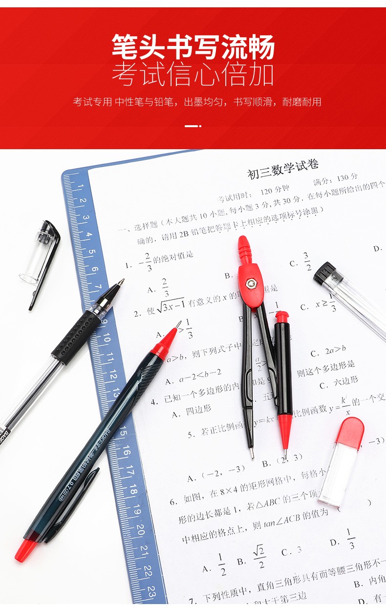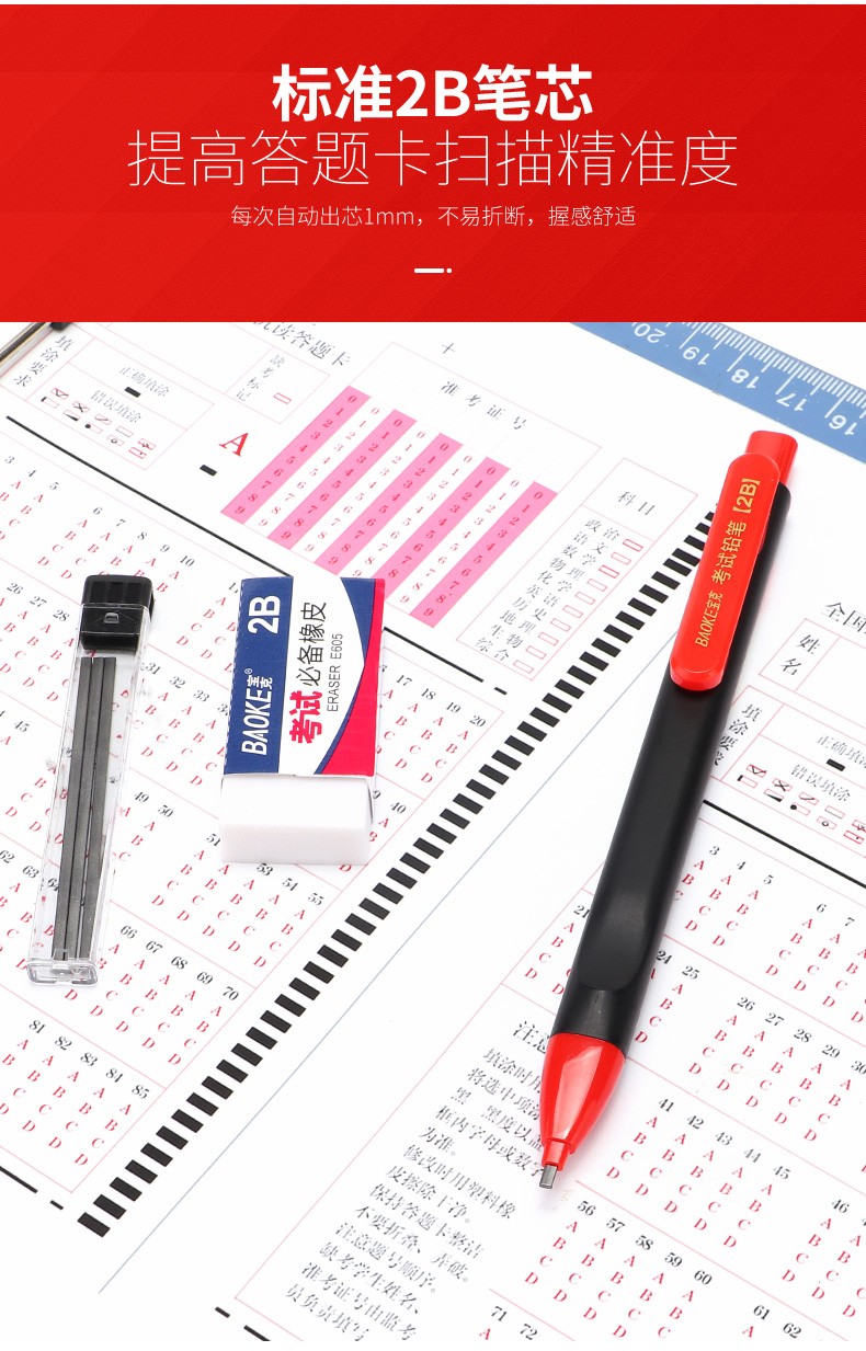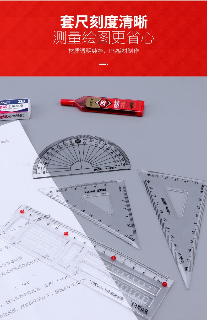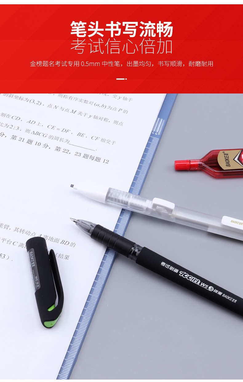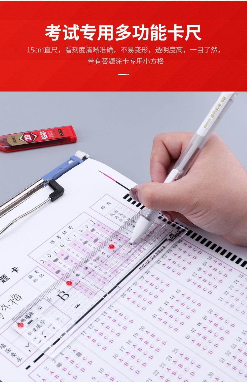 宝克(BAOKE)考试专用套装 金榜题名考试套装 考研中高考文具套装 公务员研究生四六级国考省考 KS001【套尺+笔+涂卡铅笔+笔芯+橡皮+圆规】 包邮