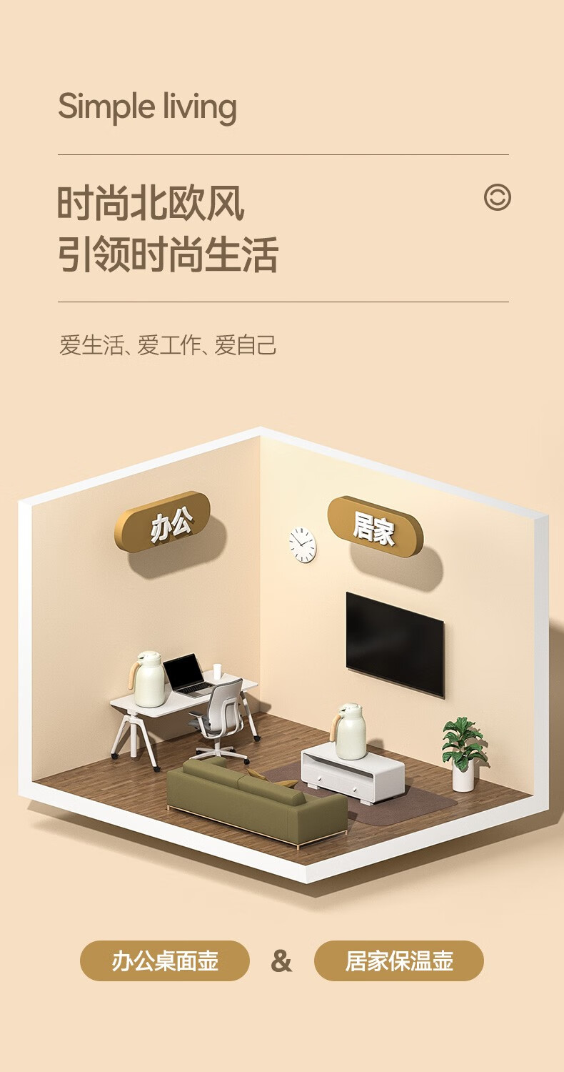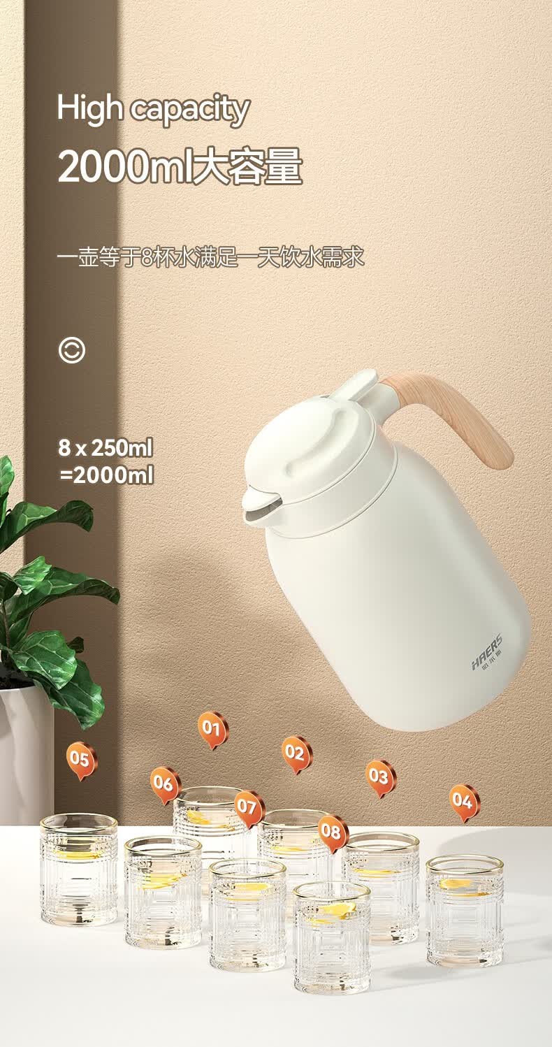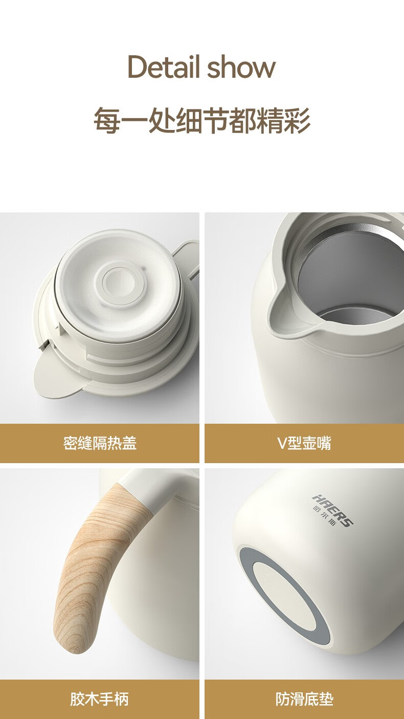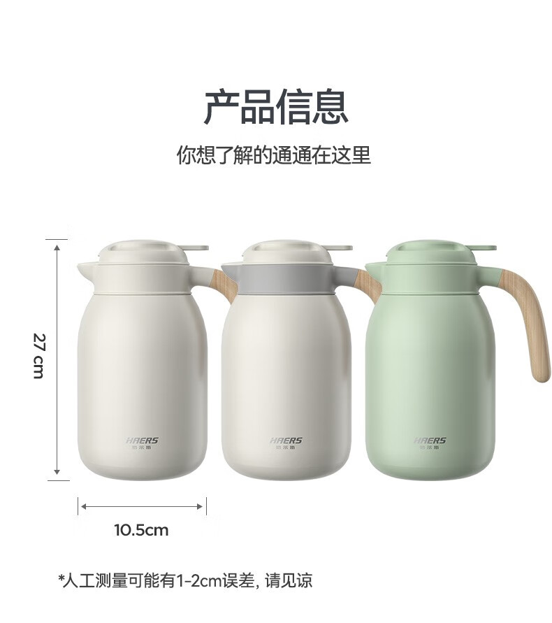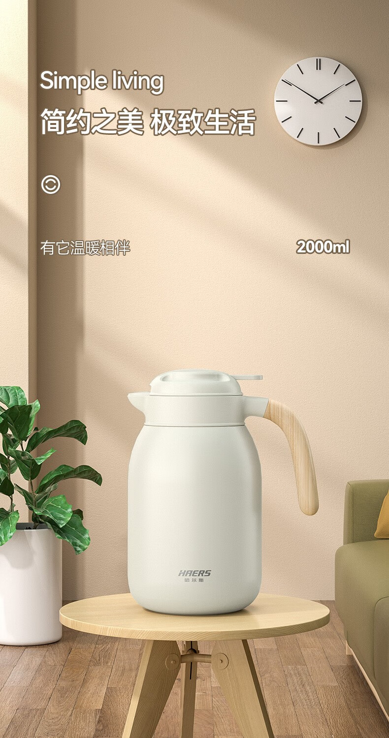哈尔斯大容量不锈钢家用保温壶热水壶办公室茶壶高颜值暖水壶团购送礼 豆绿色2L