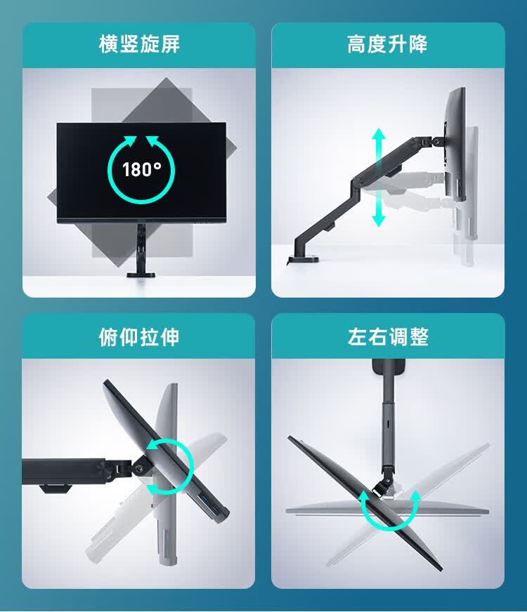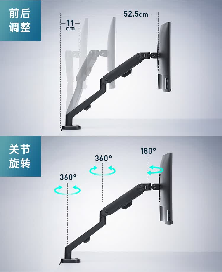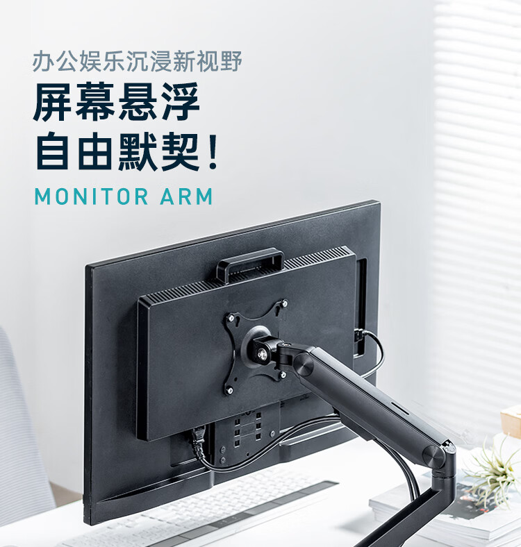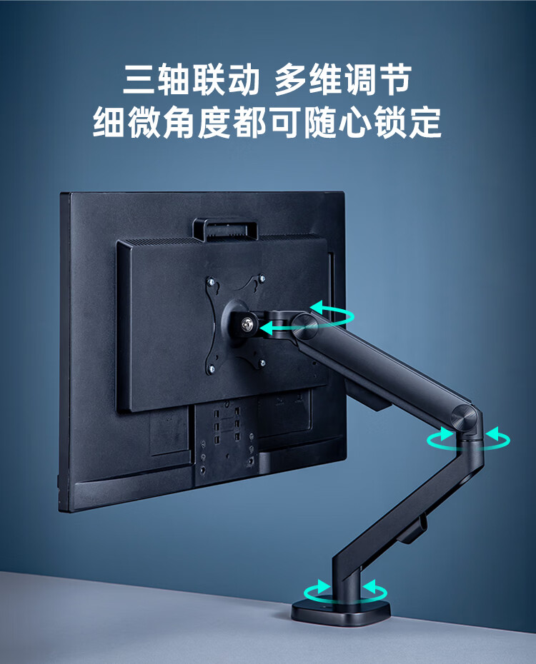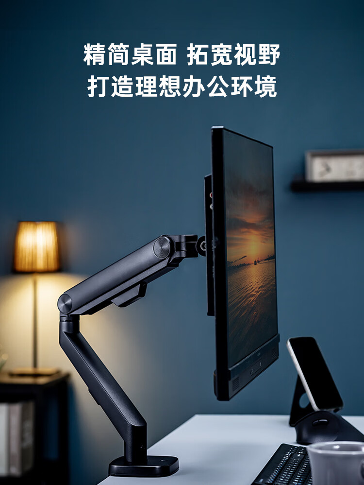 山业显示器支架 电脑升降旋转机械臂增高架 黑色