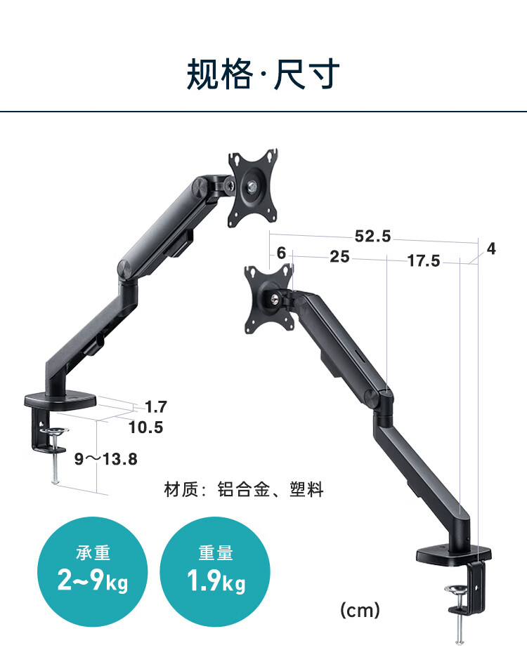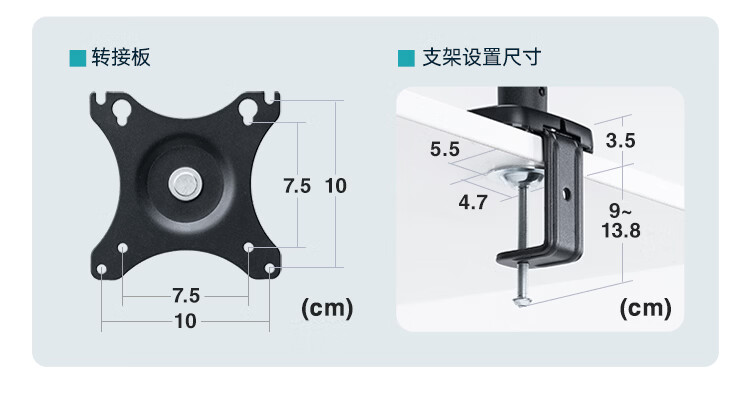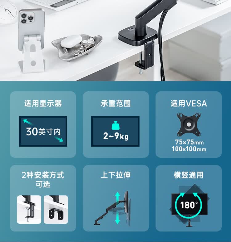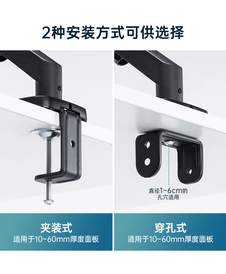 山业液晶显示器支架 高度可调节 免安装夹桌式 增高架 机械臂支架臂 电脑支架【免打孔】 【360°旋转】【32英寸】【10档高度可调】-黑
