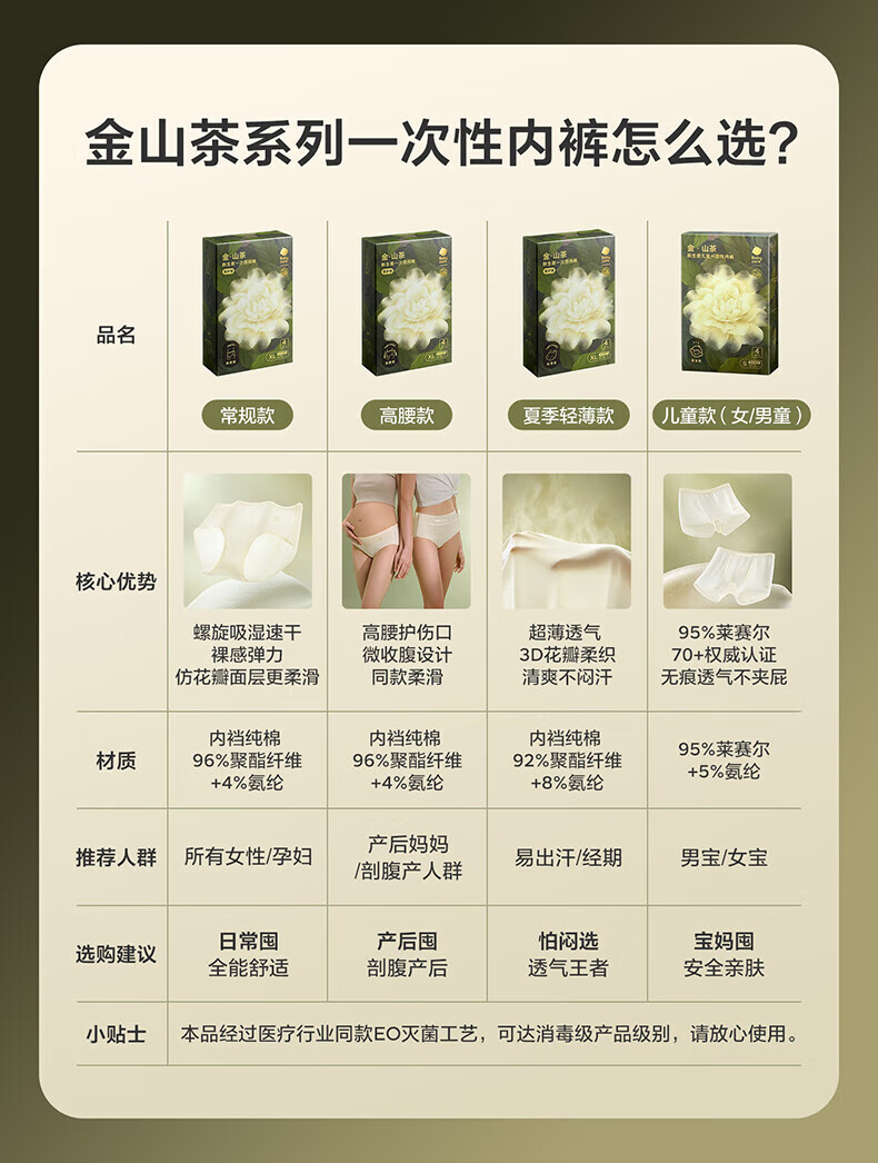 babycare山茶花夏季轻薄款一次性内裤女孕妇产后出差旅行女士免洗 M码 4条