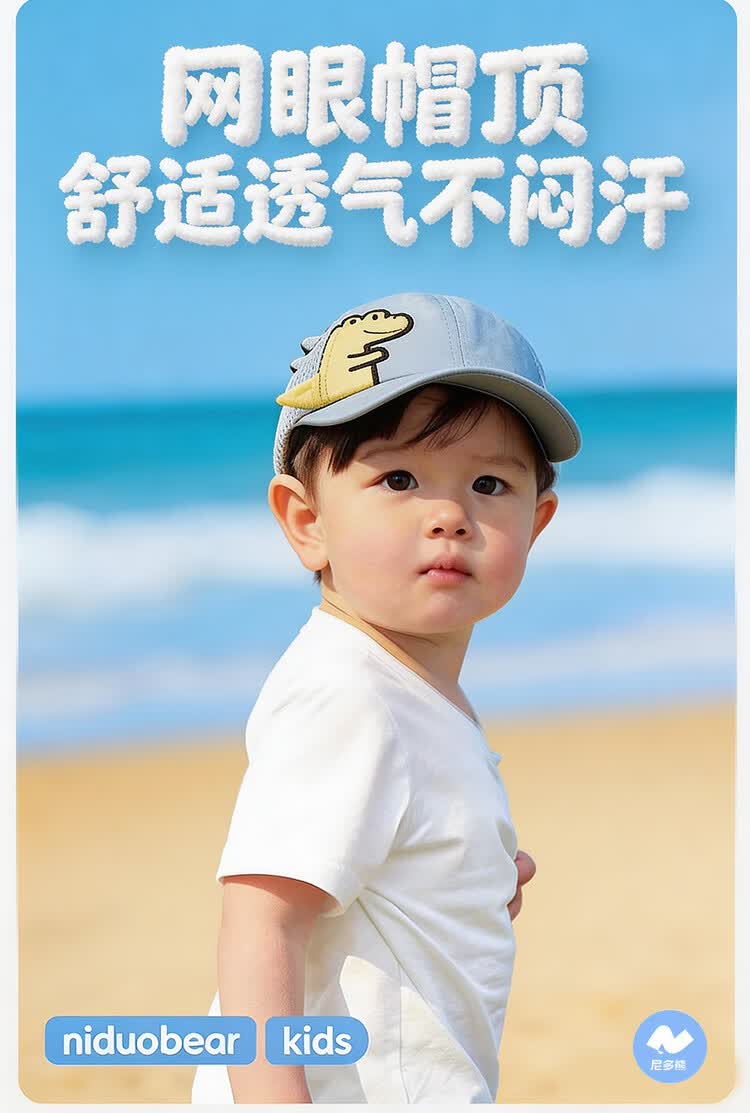 尼多熊儿童帽子宝宝鸭舌帽春夏男宝女宝婴儿棒球帽透气婴幼儿帽子 MS349