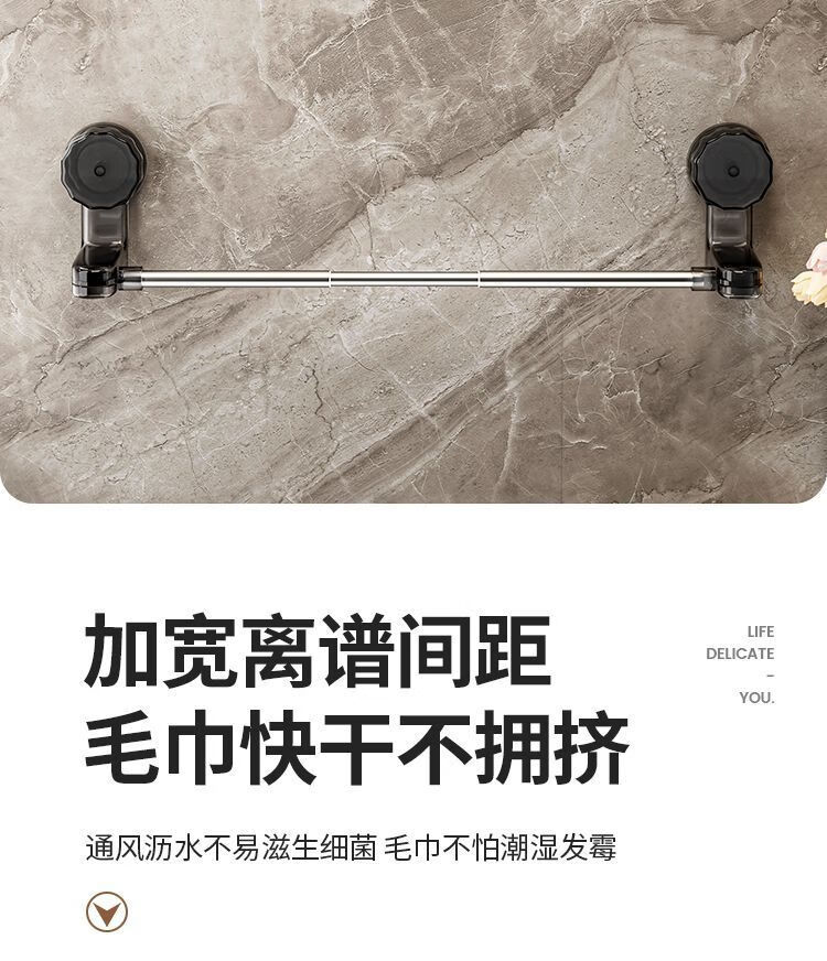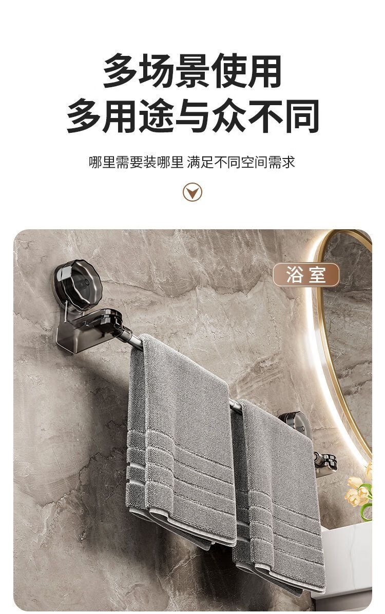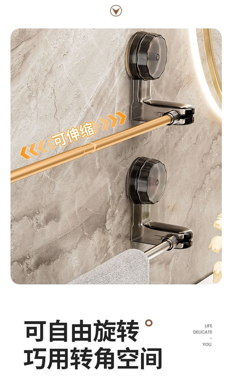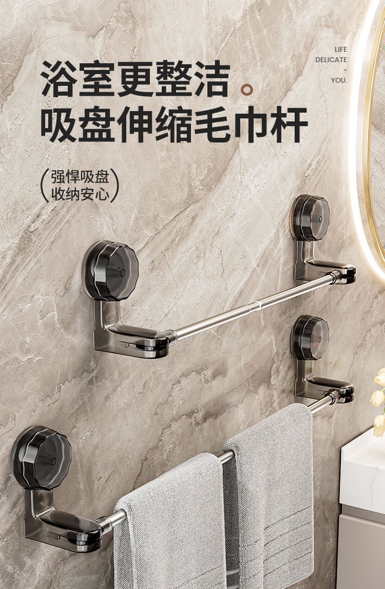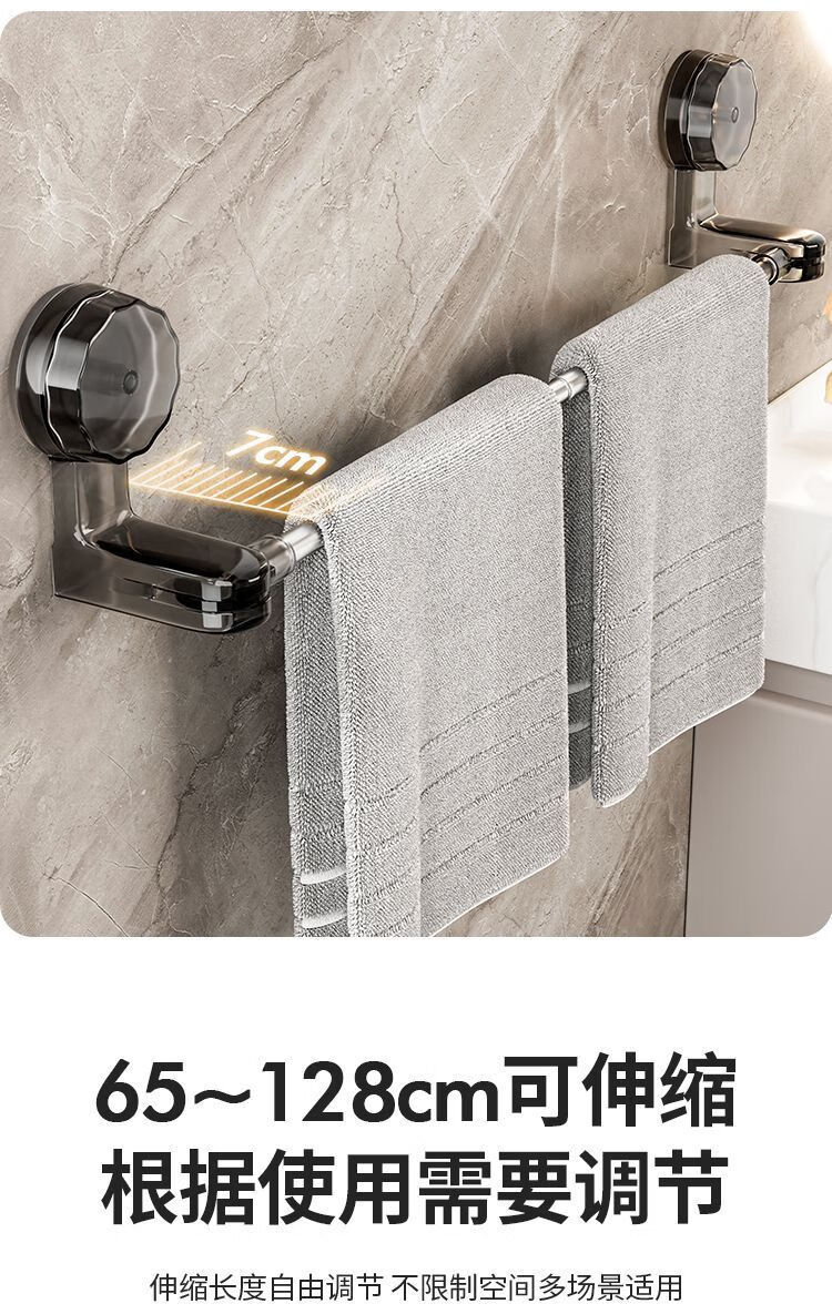 【精选直发】 吸盘毛巾架免打孔卫生间置物架浴室毛巾杆壁挂式厕 伸缩款透明黑 65-130