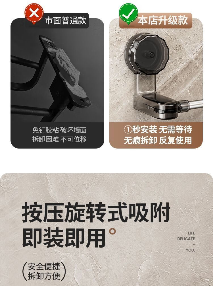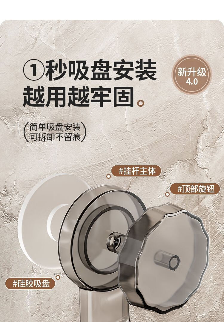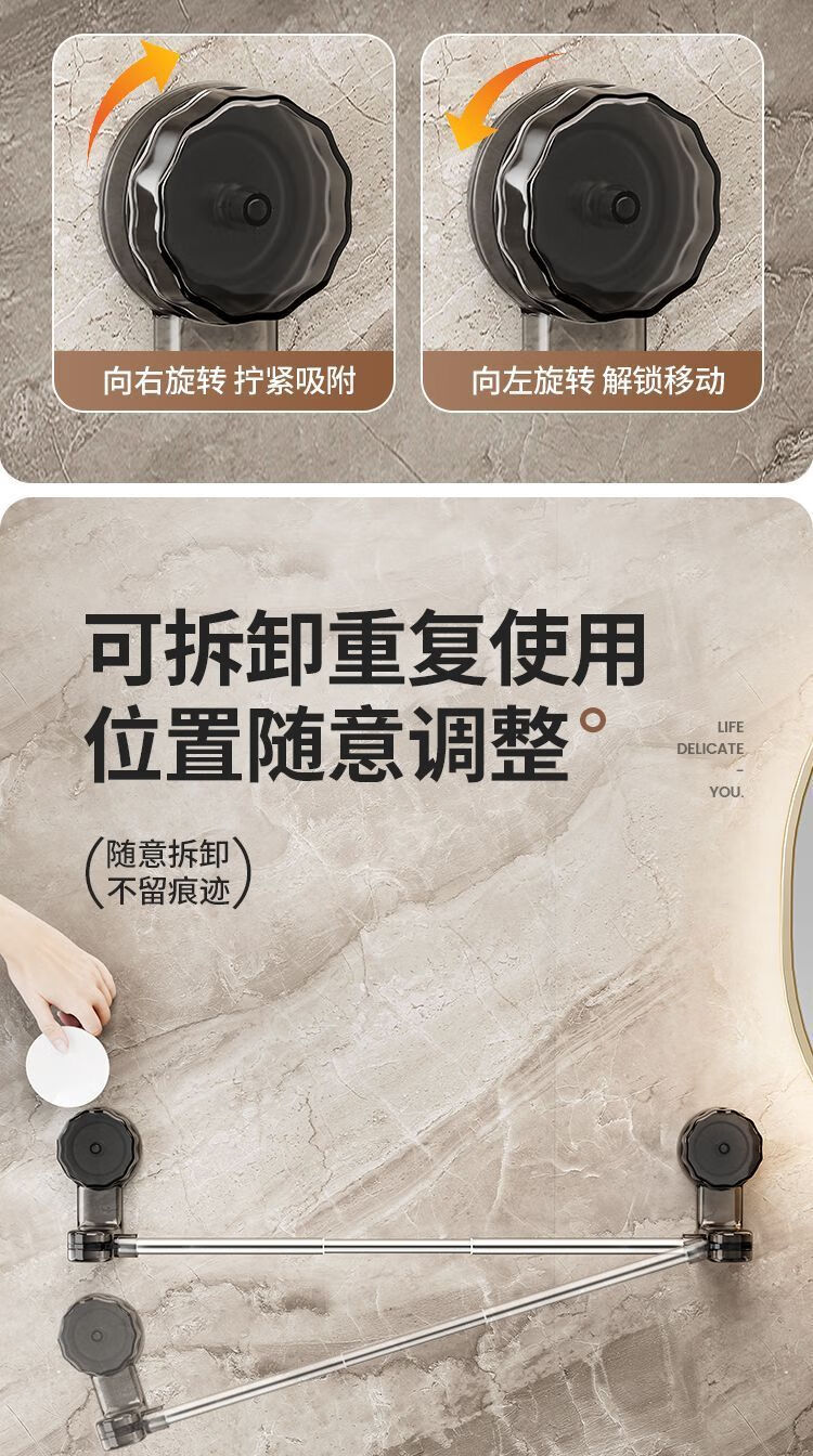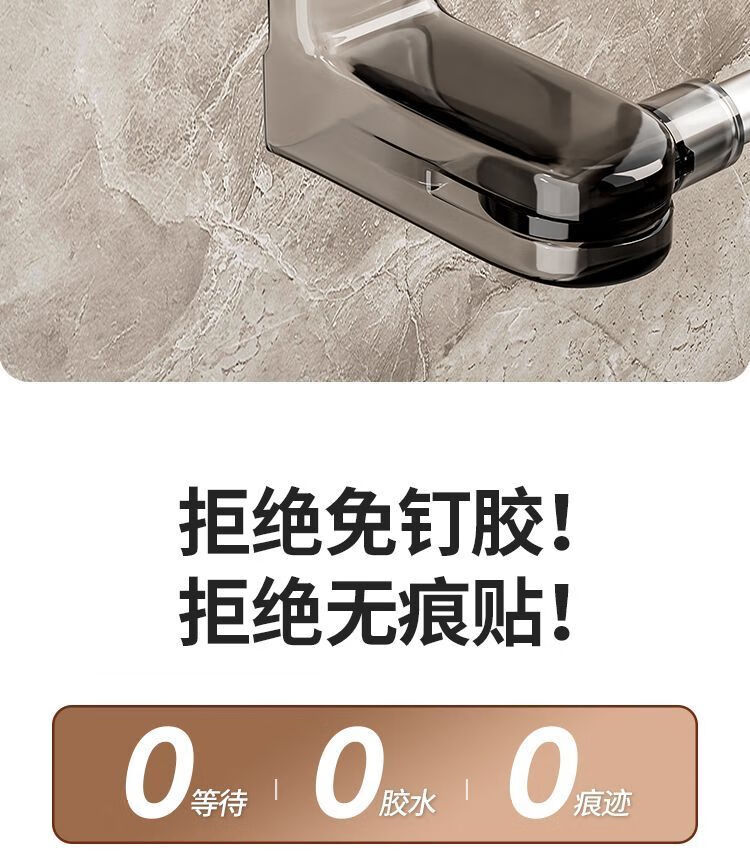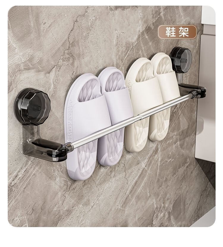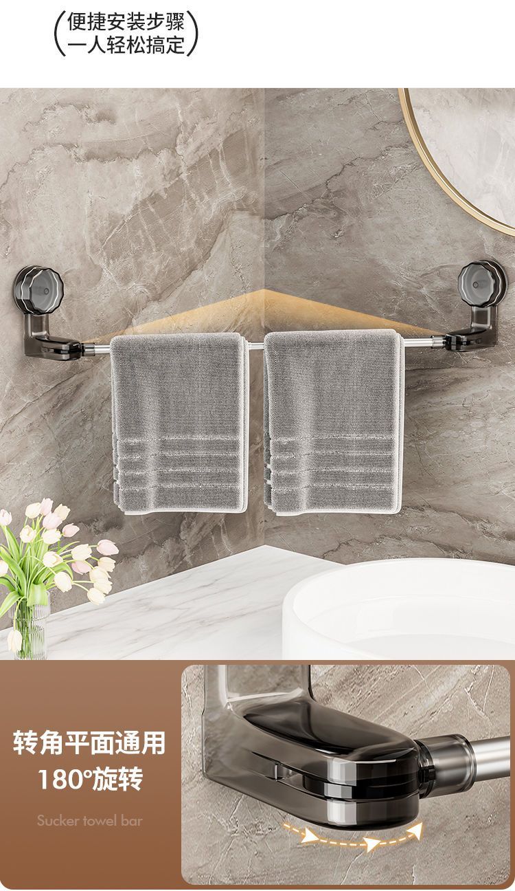 【精选直发】 吸盘毛巾架免打孔卫生间置物架浴室毛巾杆壁挂式厕 伸缩款透明黑 65-130
