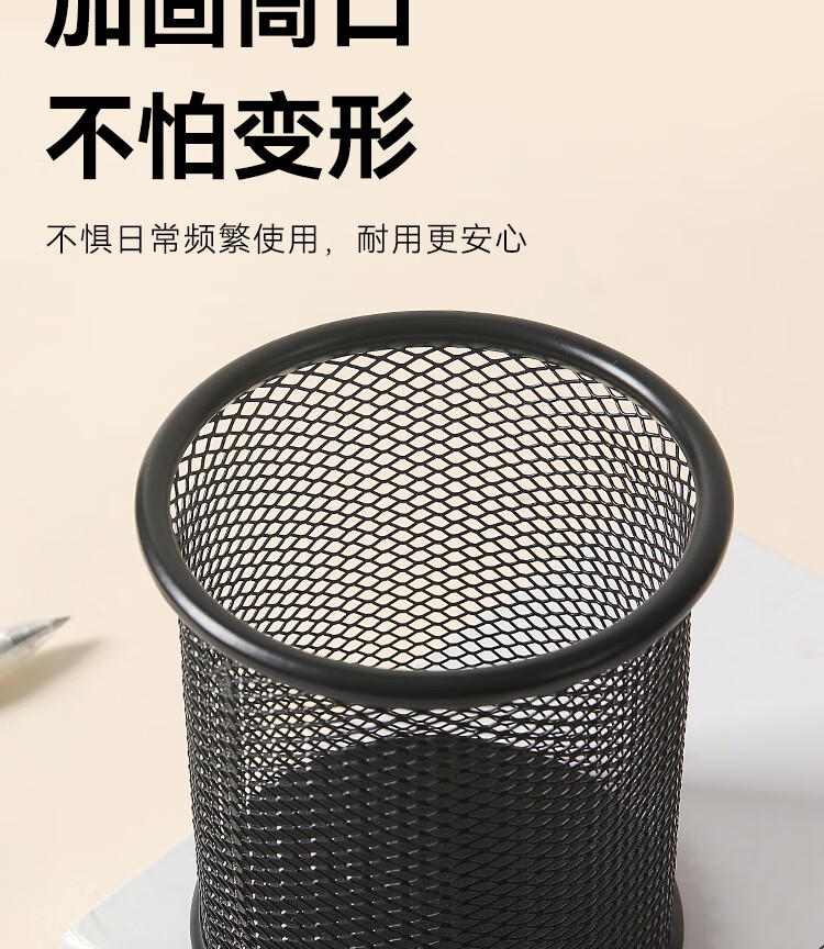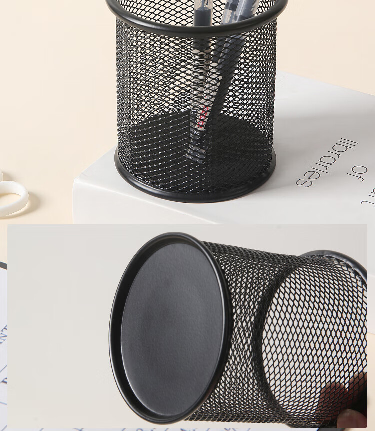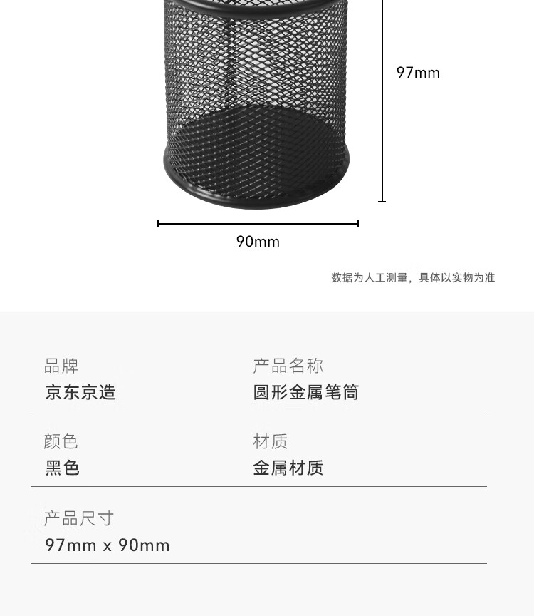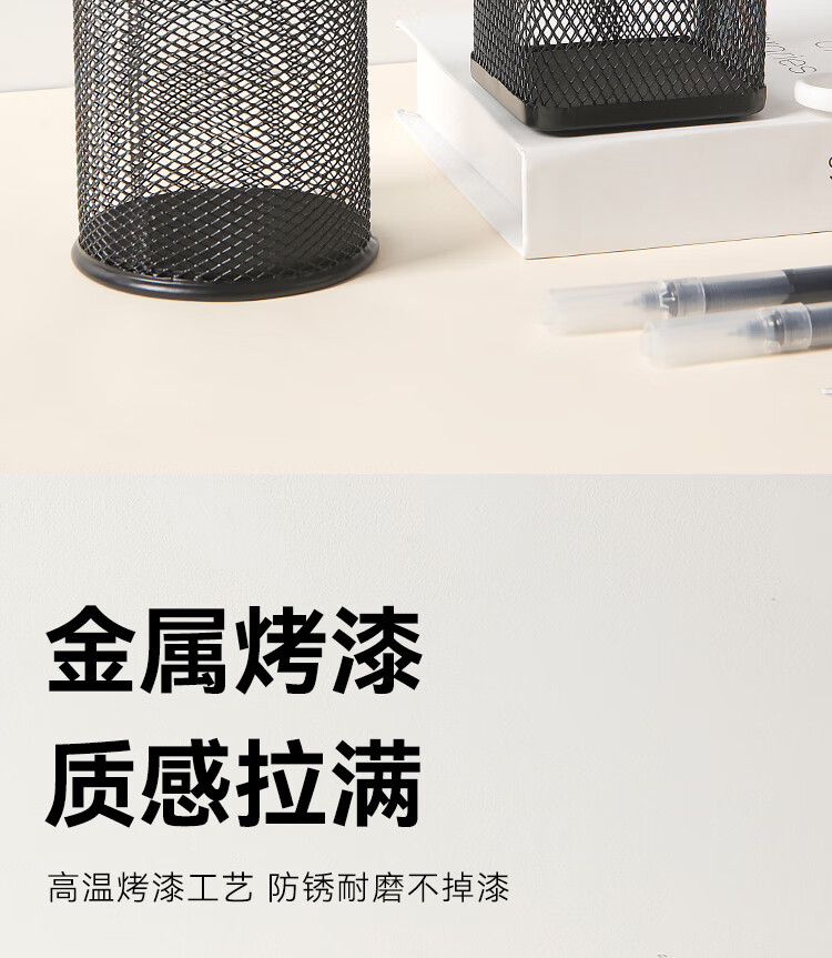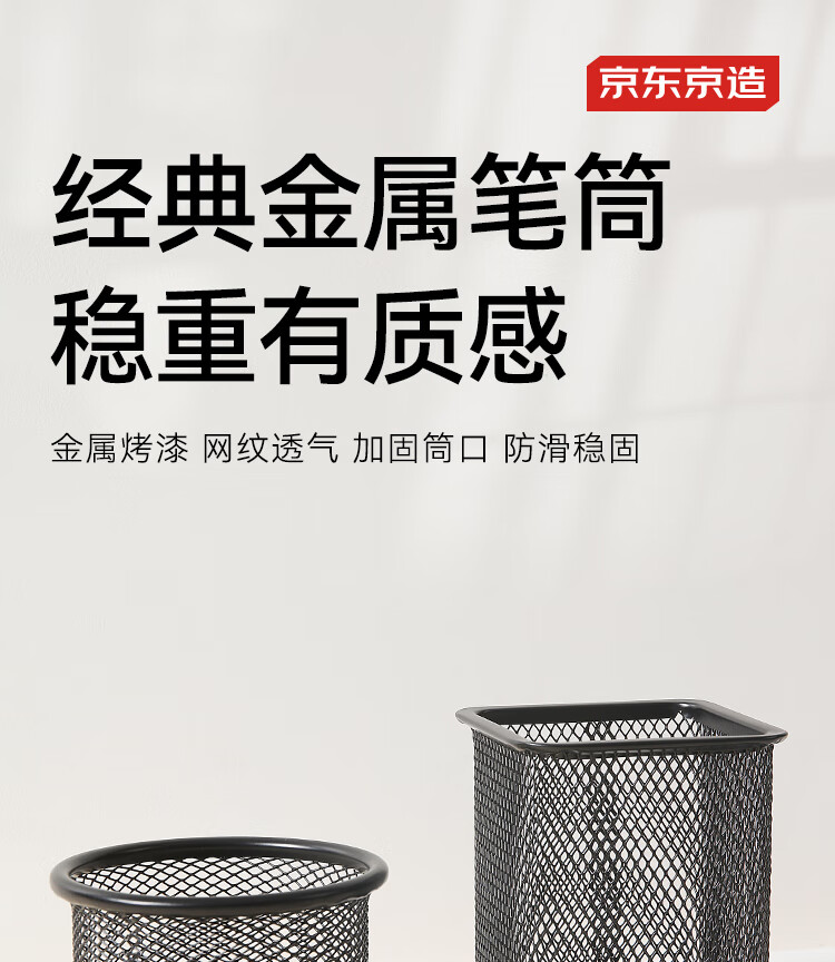京东京造金属网纹圆形笔筒 办公桌面收纳盒简约造型 学习办公用品 黑色