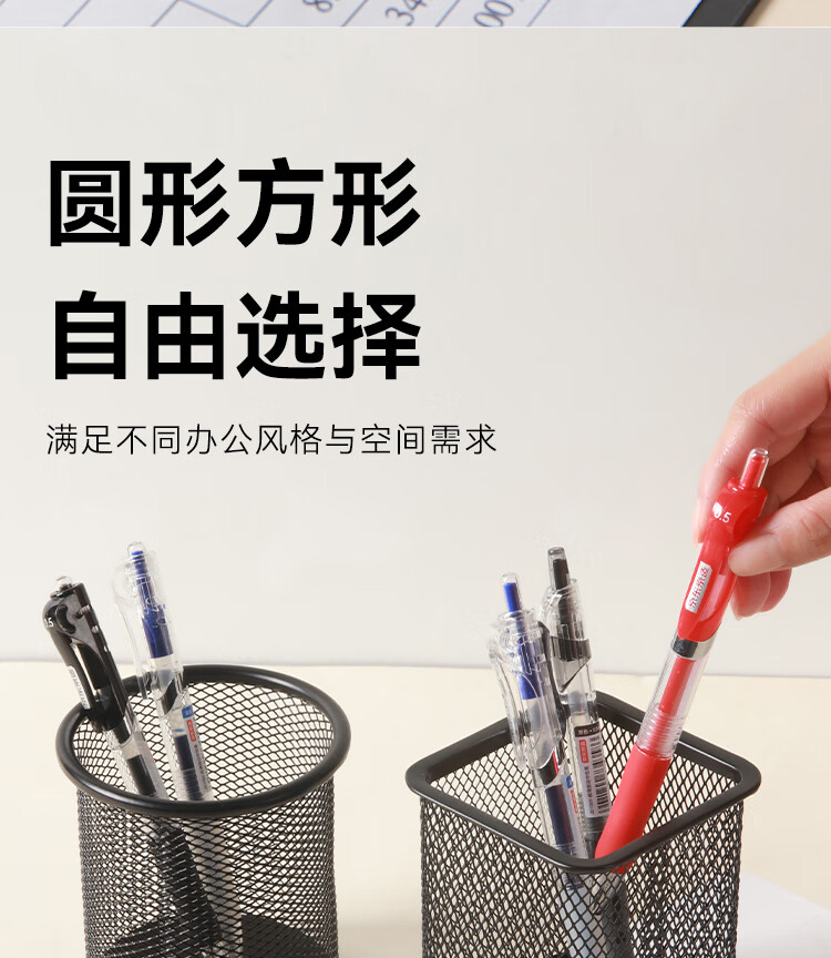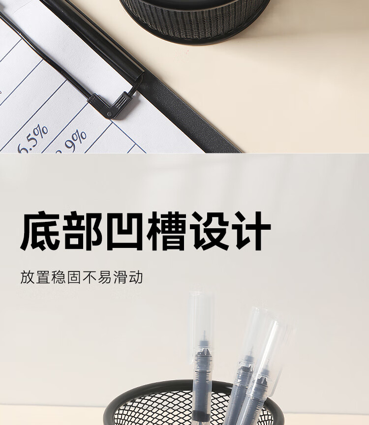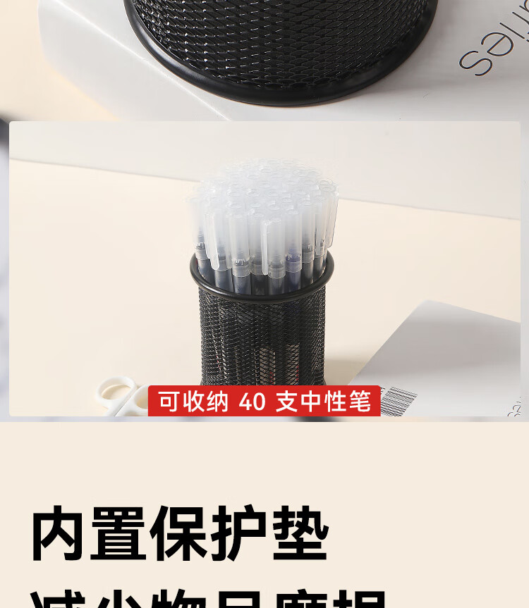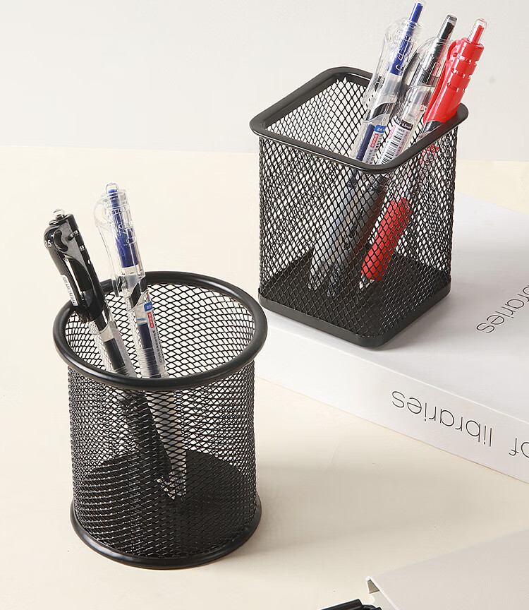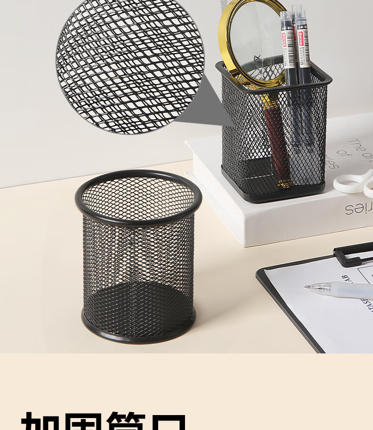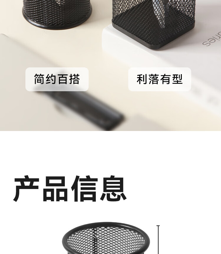 京东京造金属网纹圆形笔筒 办公桌面收纳盒简约造型 学习办公用品 黑色
