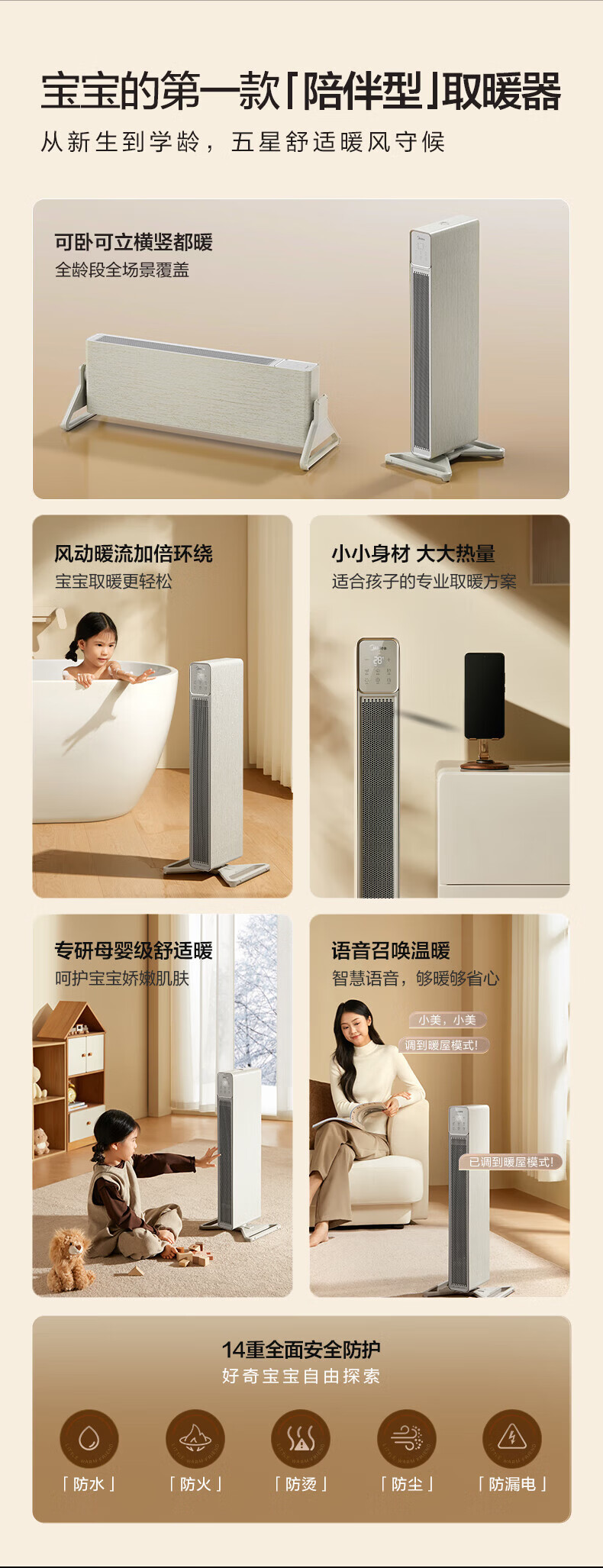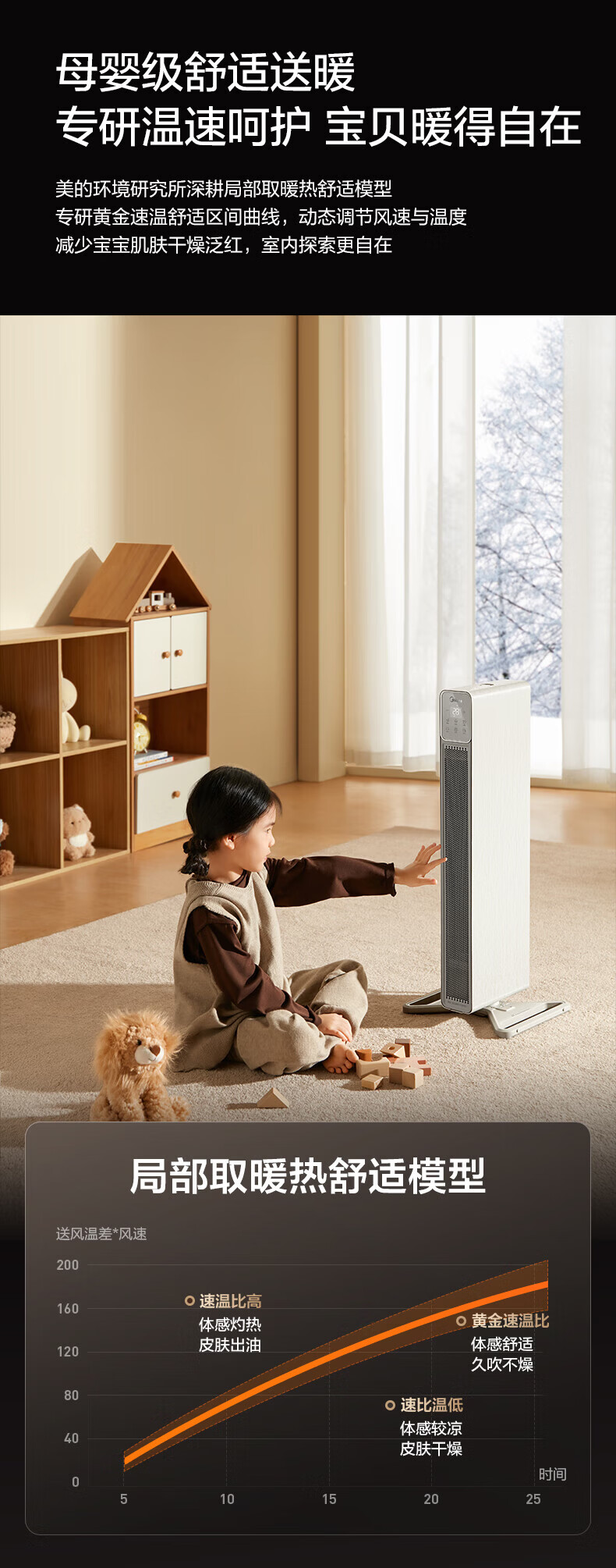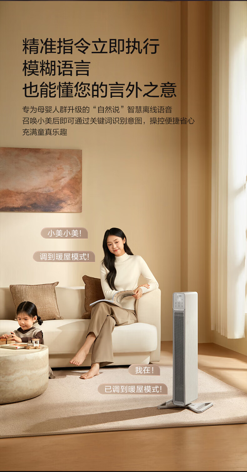 美的(Midea)石墨烯语音踢脚线取暖器家用超薄机身电暖器立卧两用电暖气全屋大面积浴居两用移动地暖 【可立可卧 AI变频节能】石墨烯速热NDS-BZT