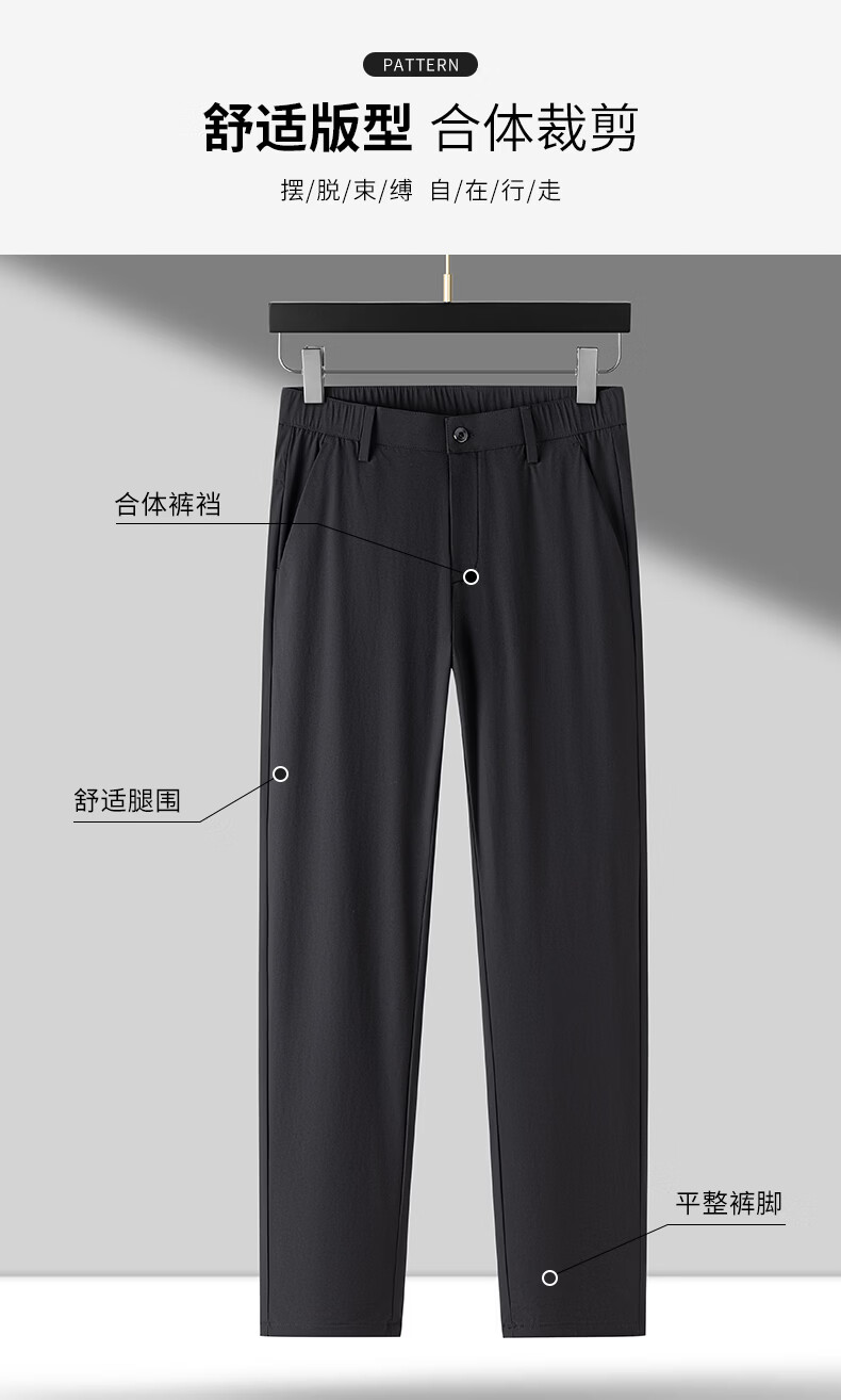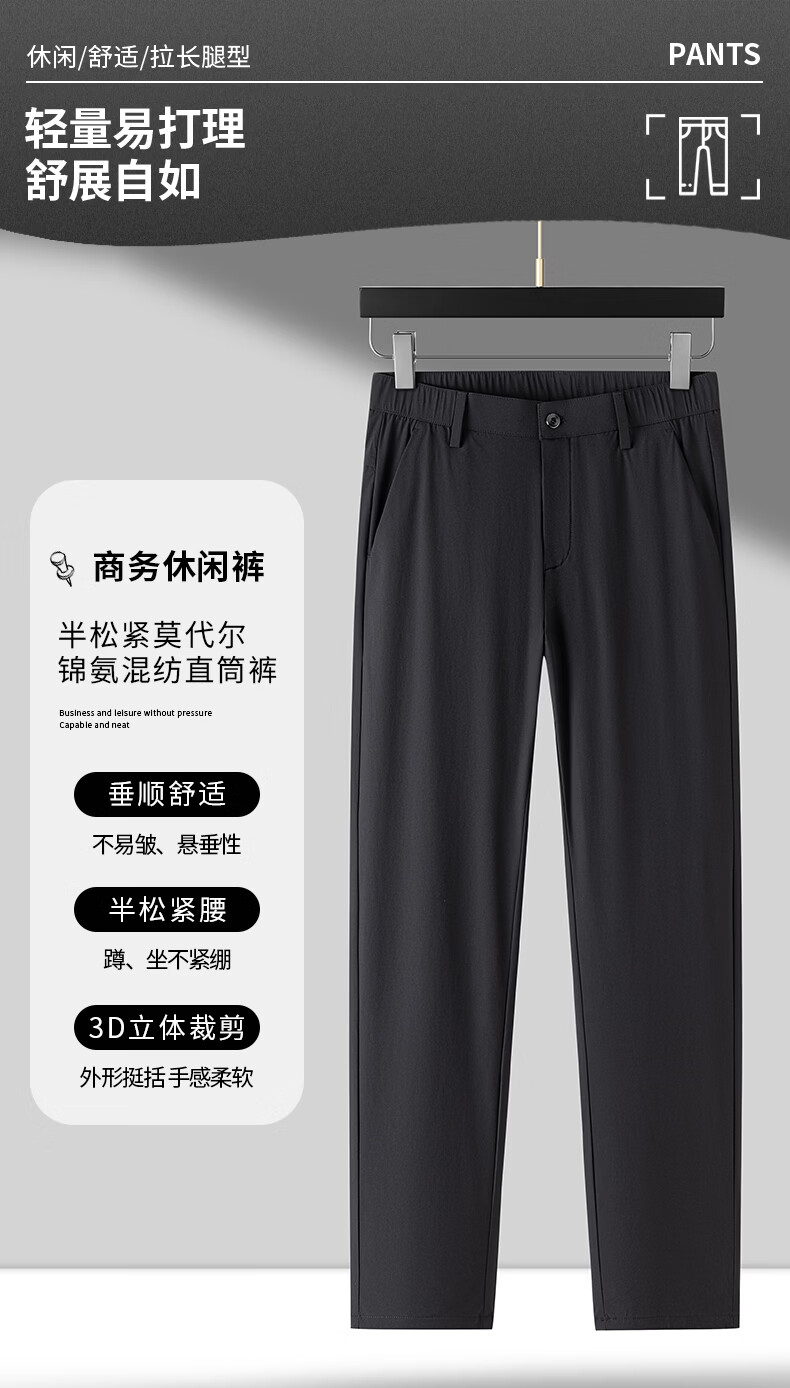 SHANSHAN杉杉【莫代尔锦氨弹力】休闲裤子男2026春季亲肤含棉半松紧直筒 黑色 29 /160