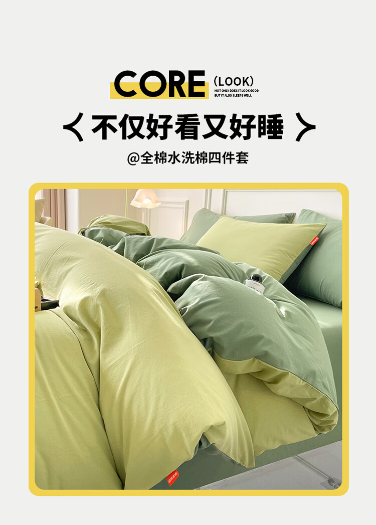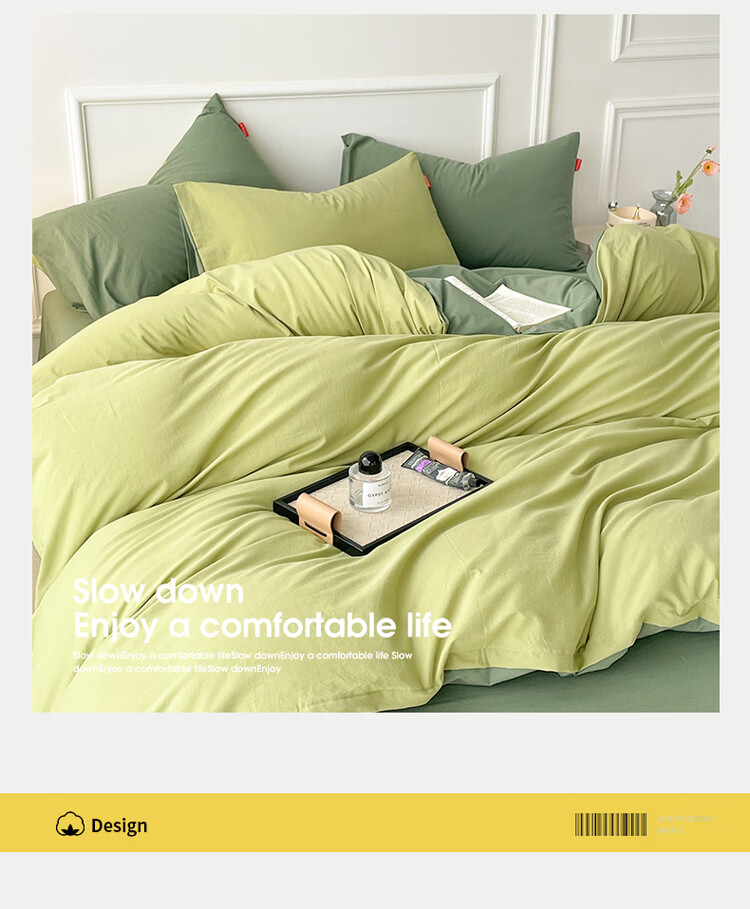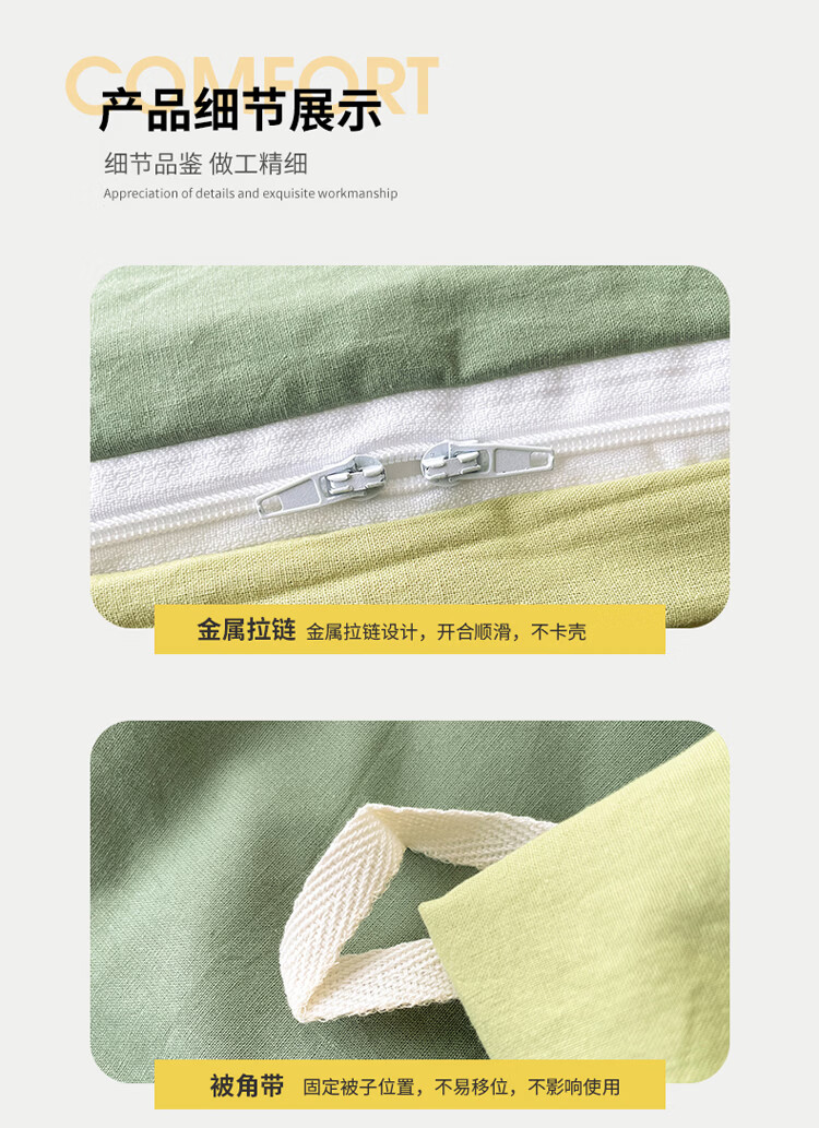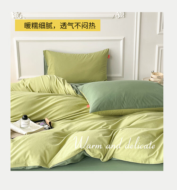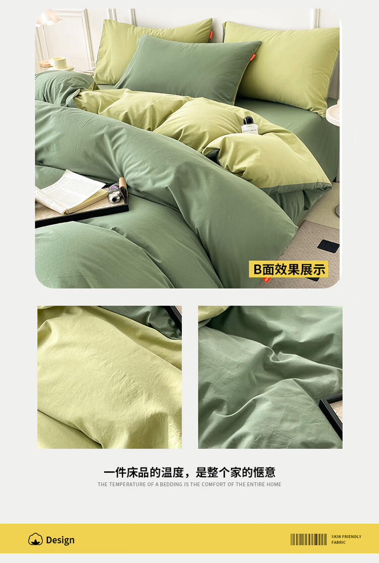 无印良品a类简约全棉被套150x200cm纯棉单人被罩单件床上用品四件套床笠款 果绿-墨绿【100%全棉 亲肤舒适】 150cm*200cm-单被套