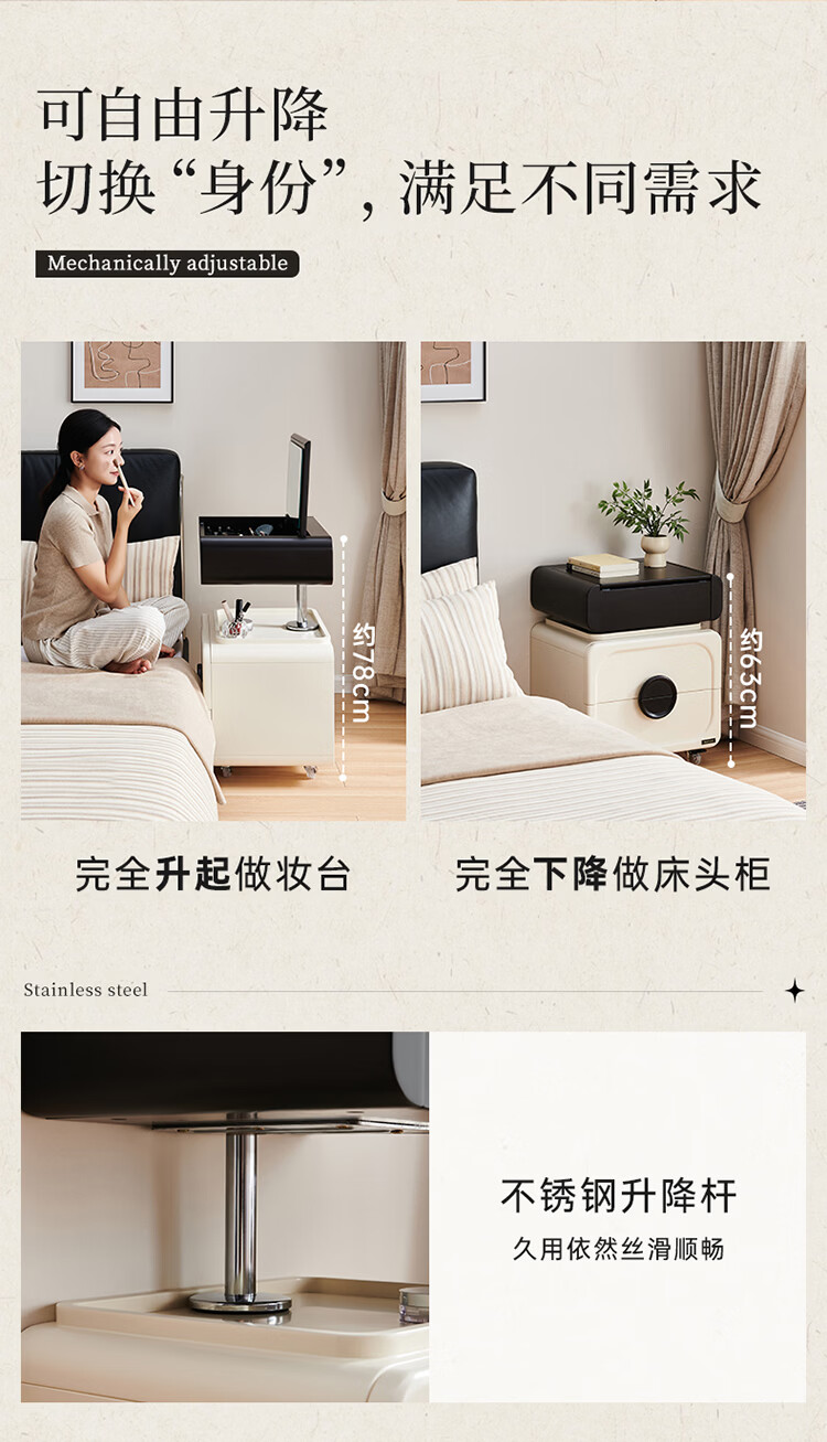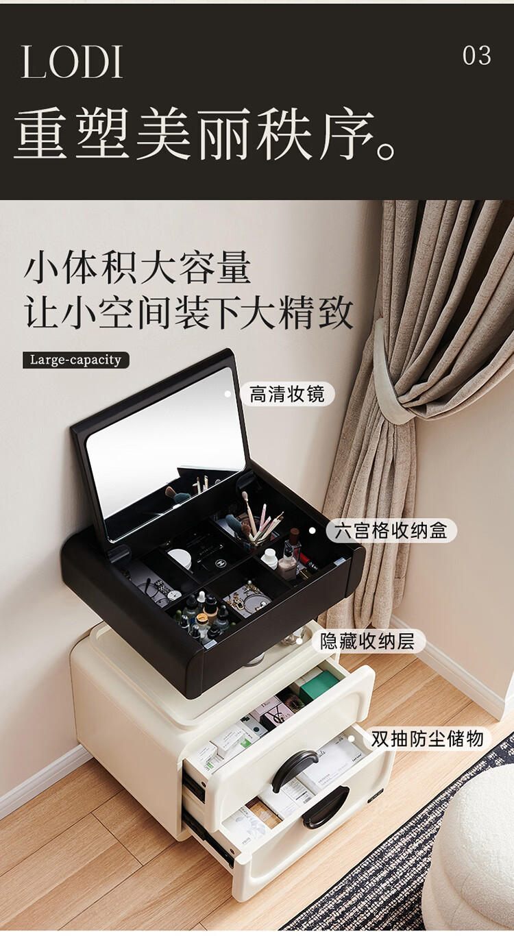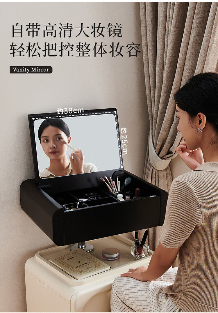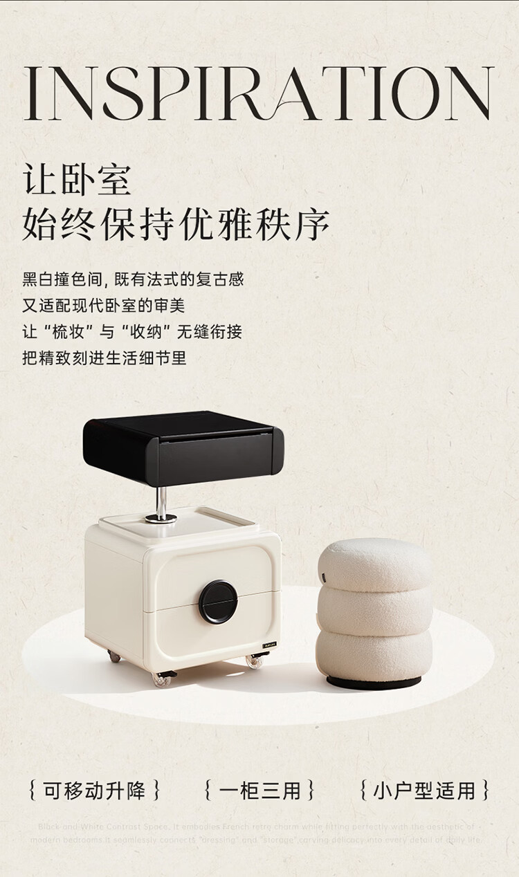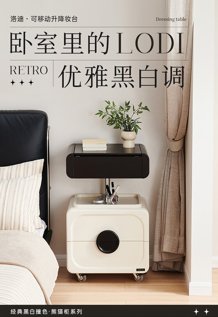 全友可移动升降梳妆台小户型卧室多功能床头柜妆台现代简约收纳储物柜 【黑白撞色】可移动升降妆台