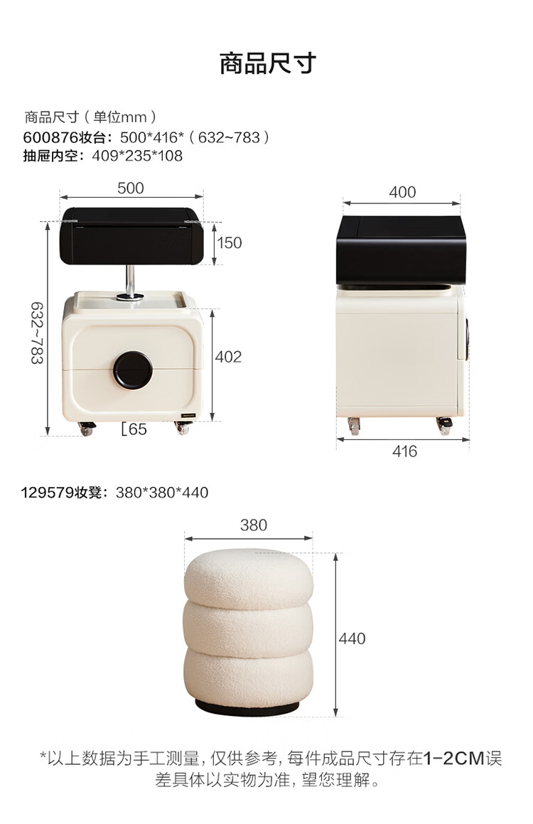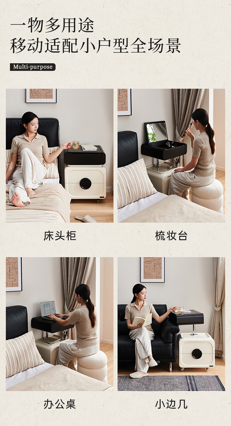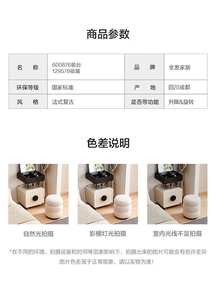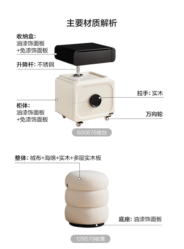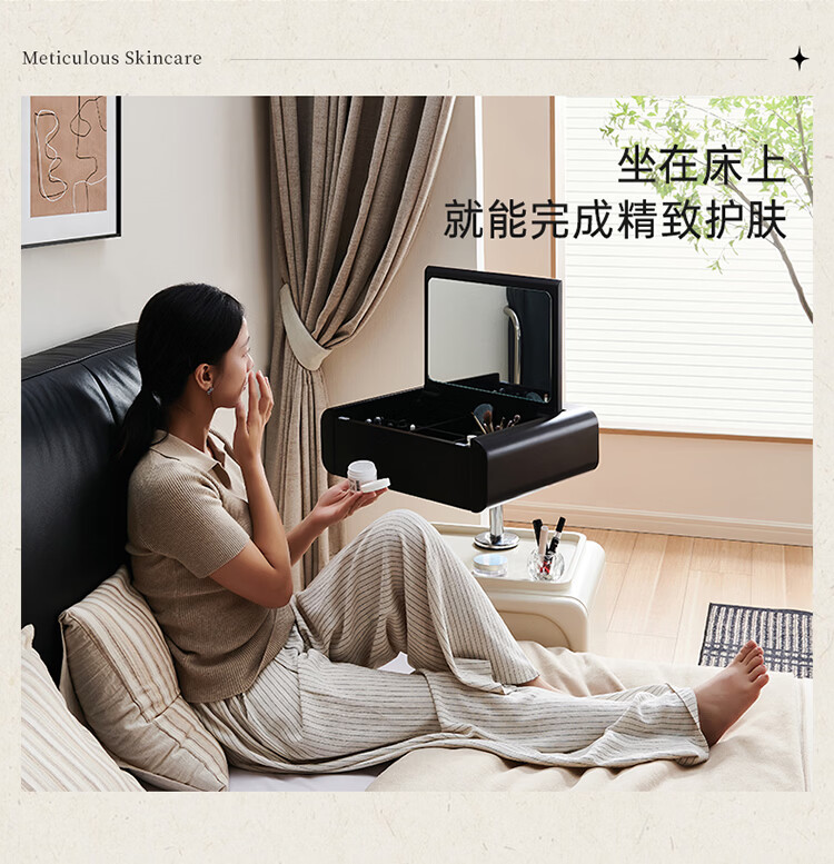 全友可移动升降梳妆台小户型卧室多功能床头柜妆台现代简约收纳储物柜 【黑白撞色】可移动升降妆台