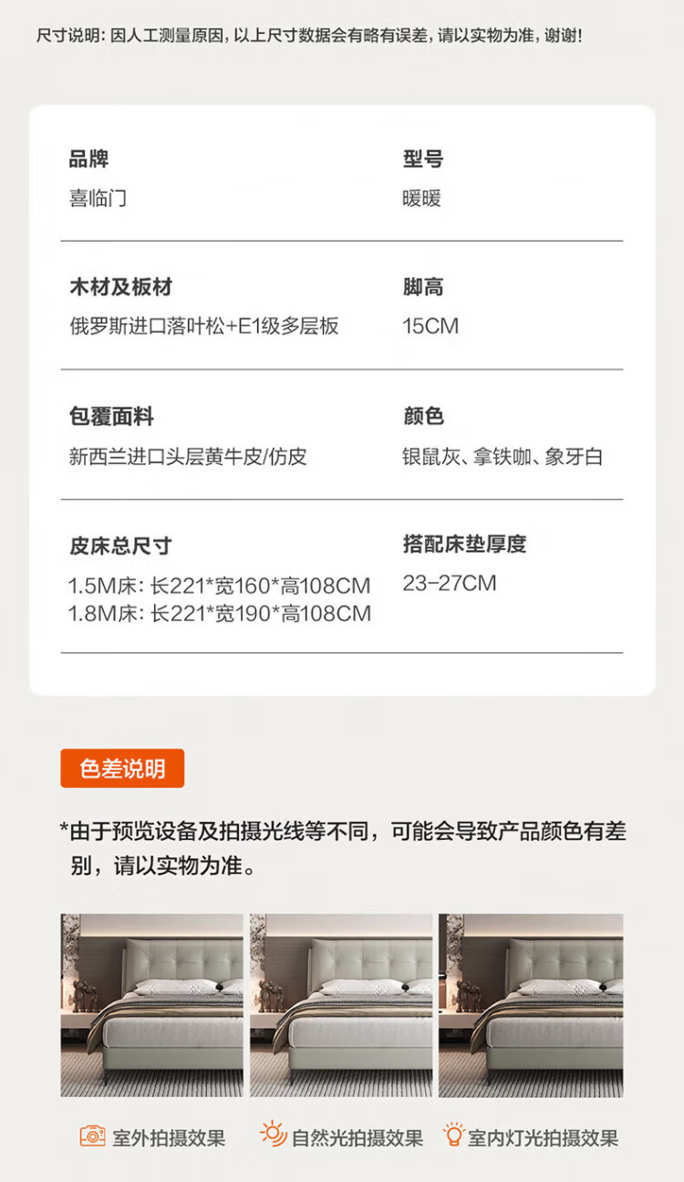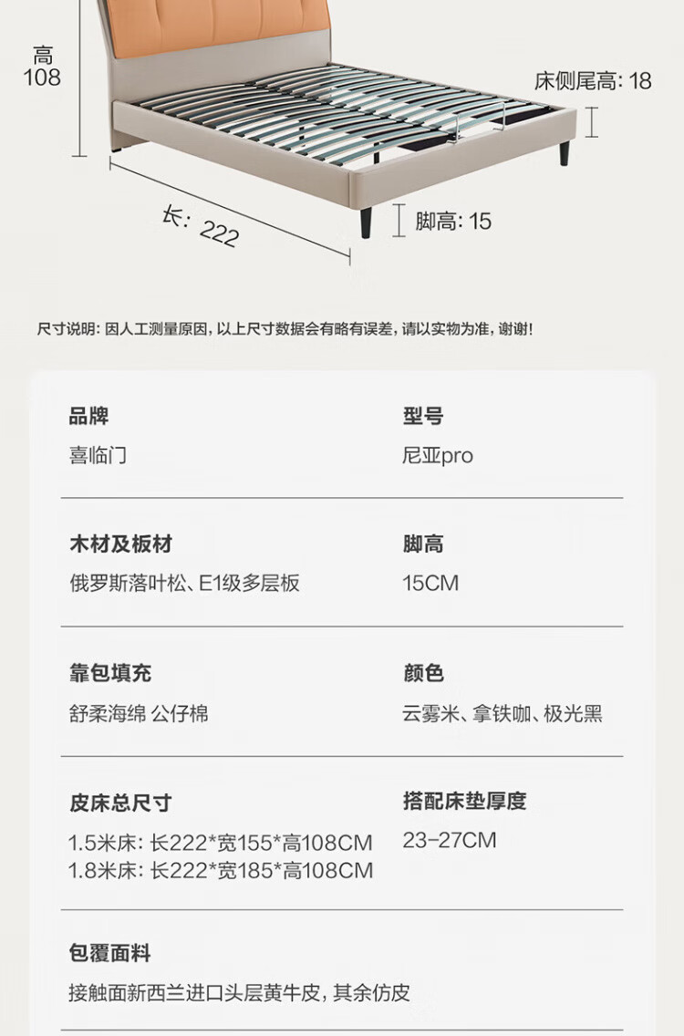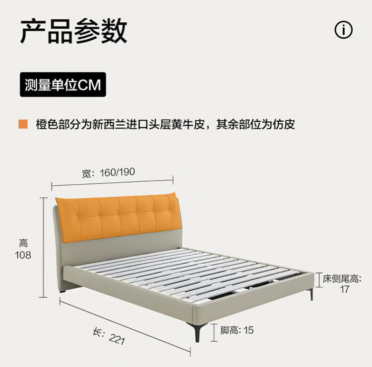 顾家家居(KUKA)轻奢风半青皮床双人床卧室羽毛填充B215【心想事橙】半青皮1.8m