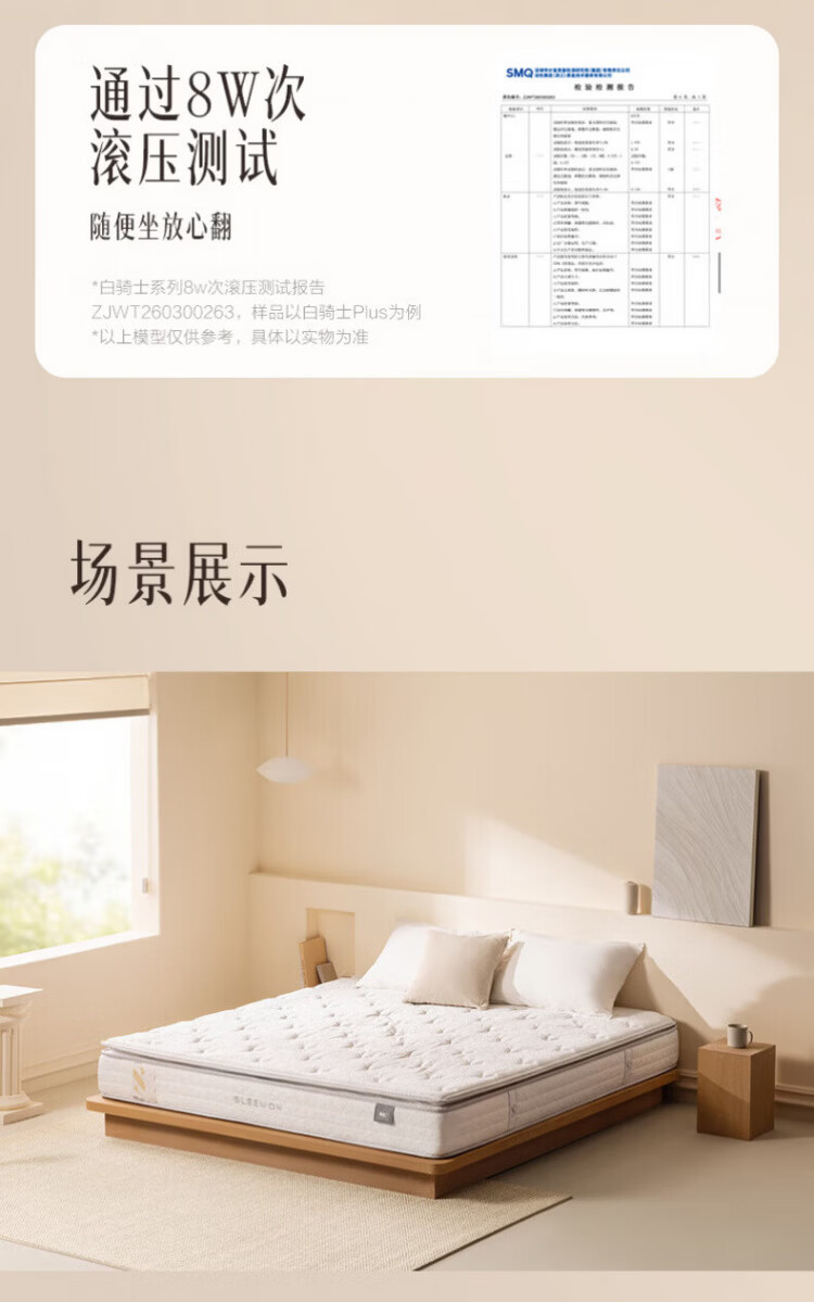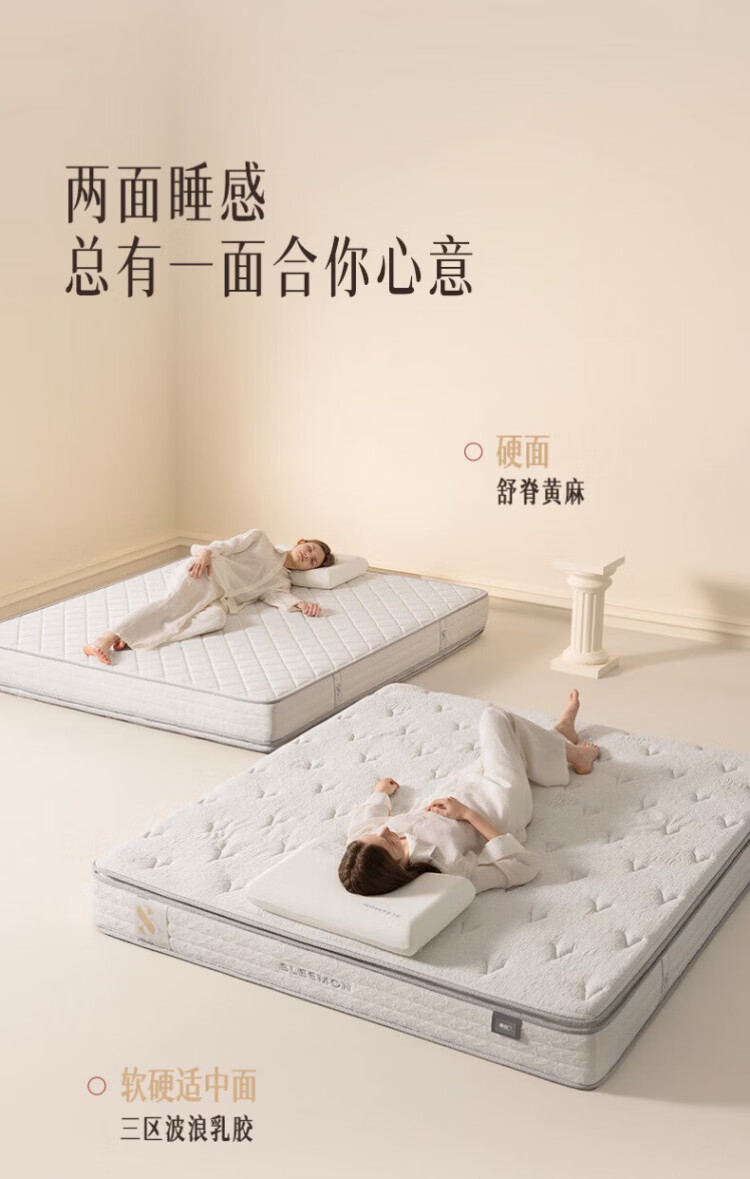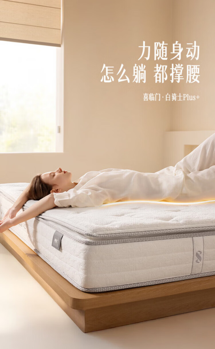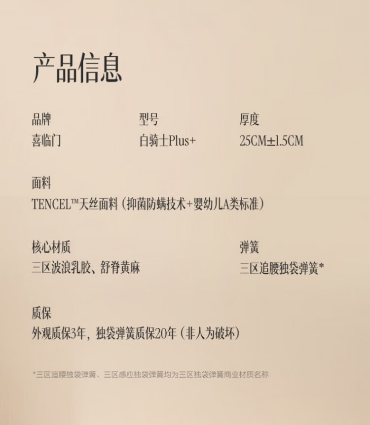 喜临门白骑士plus+床垫A类面料乳胶黄麻偏硬三区弹簧床垫 白骑士plus+【四重升级/延续经典】-厚25cm 1.8*2米