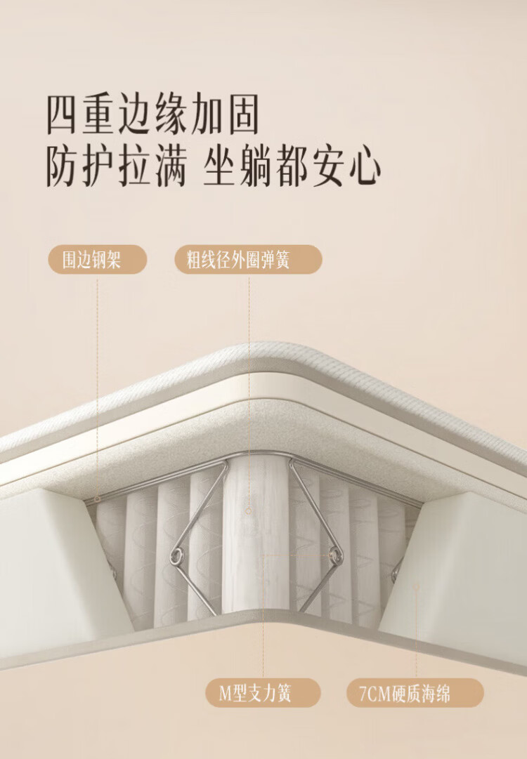 全友家居 独立袋装弹簧乳胶椰棕床垫1.8米x2米席梦思酒店床垫偏硬护脊