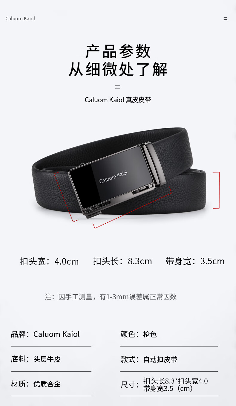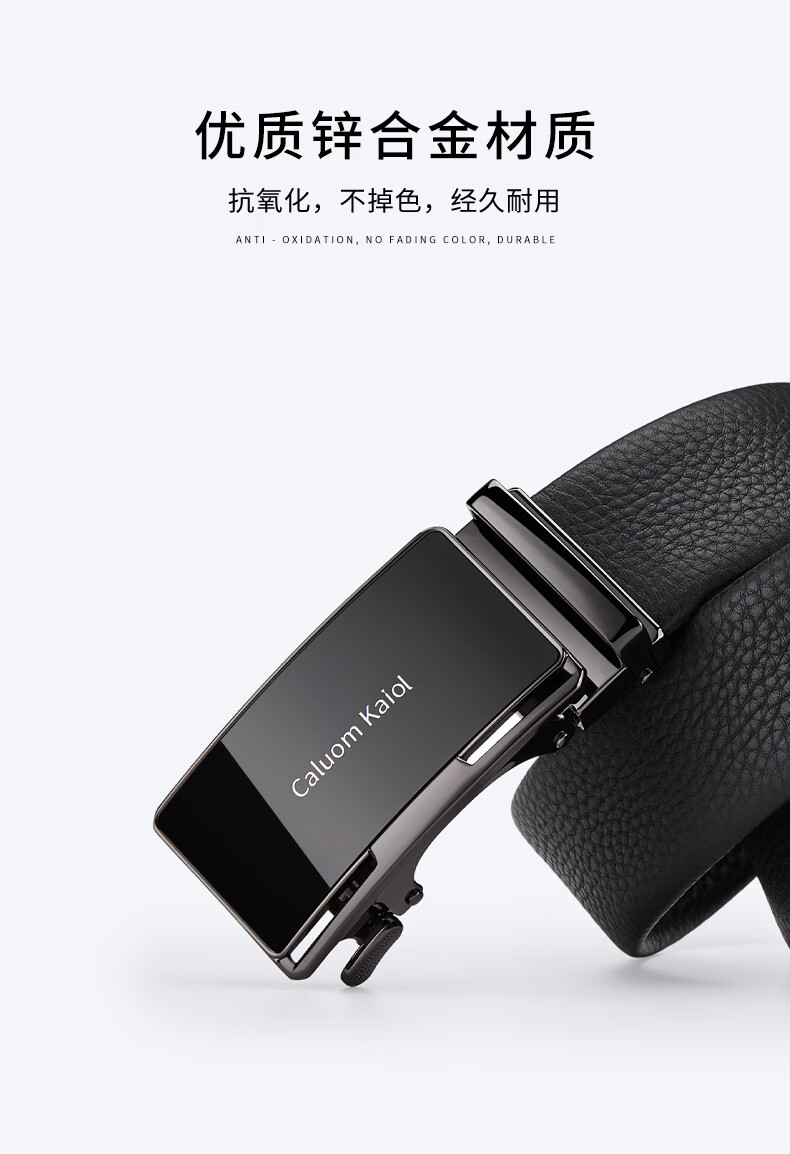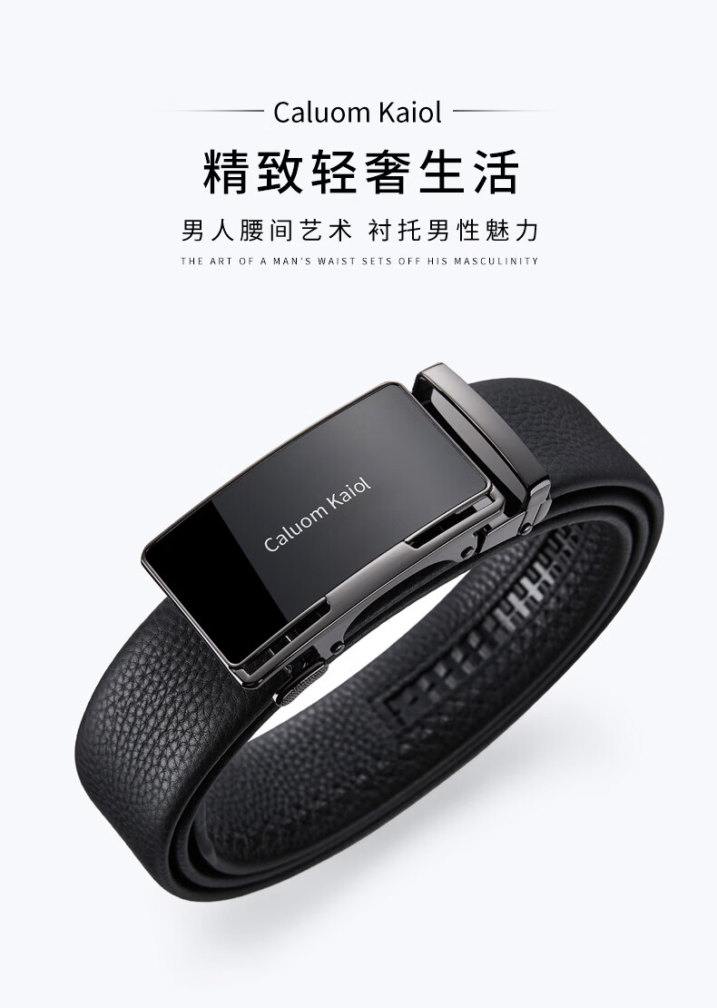 Caluom Kaiol品牌皮带男真皮自动扣男士腰带头层牛皮裤带生日礼物送男友 8035A玫瑰金色/内穿式 110cm -130cm默认随机(可修剪)